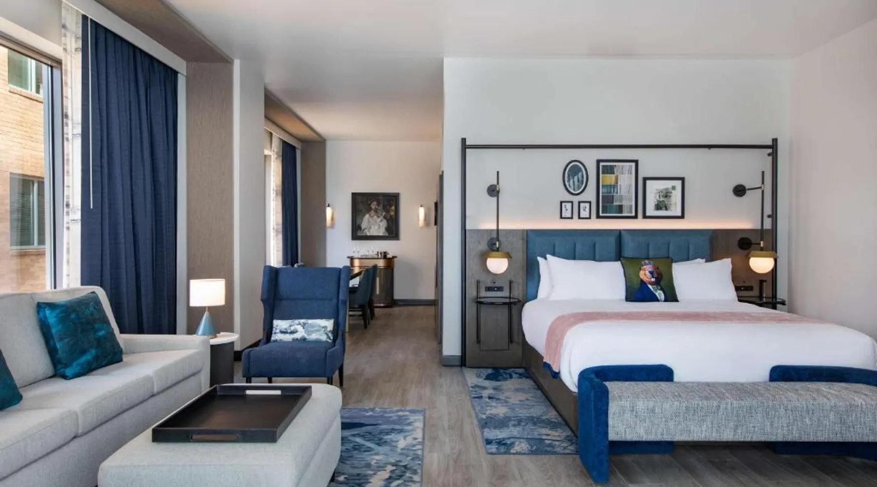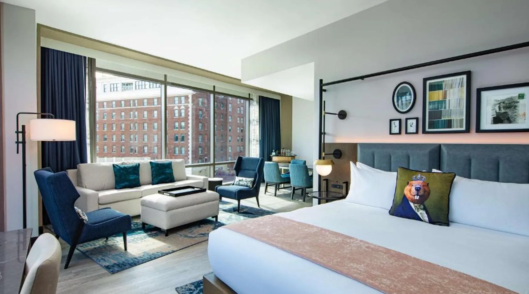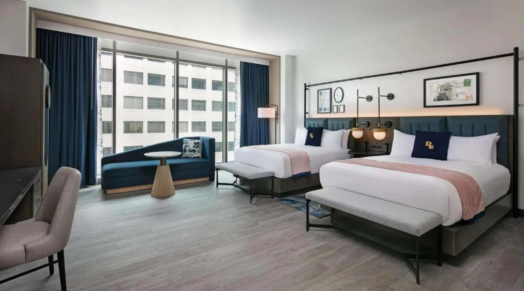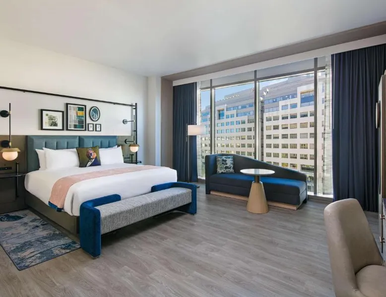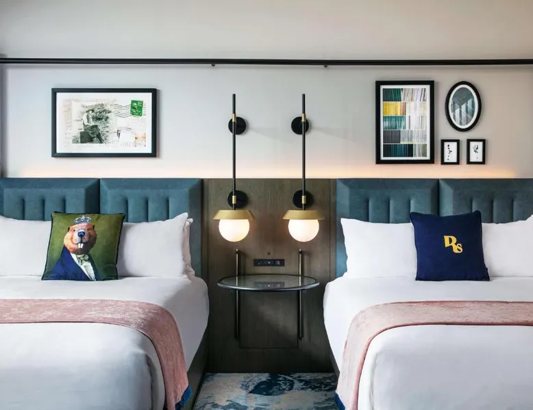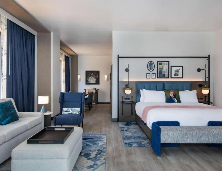Elegant Accommodations: Rooms feature air-conditioning, private bathrooms, and modern amenities such as free WiFi, flat-screen TVs, and work desks. Additional comforts include bathrobes, tea and coffee makers, and hypoallergenic bedding. Dining and Leisure: The modern restaurant serves French cuisine, complemented by a bar offering a variety of beverages. Guests can also enjoy the fitness center, relax in the lounge, and take advantage of the 24-hour front desk and concierge service. Prime Location: Located in Washington, the hotel is a short walk from Union Station and the National Postal Museum. Nearby attractions include the National Japanese American Memorial and the Old Town Trolley Tours. An ice-skating rink is also available in the surroundings. Exceptional Service: Highly rated for its convenient location, attentive staff, and impeccable room cleanliness, the hotel ensures a comfortable and memorable stay. The quadruple room offers a tea and coffee maker. The unit offers 2 beds.