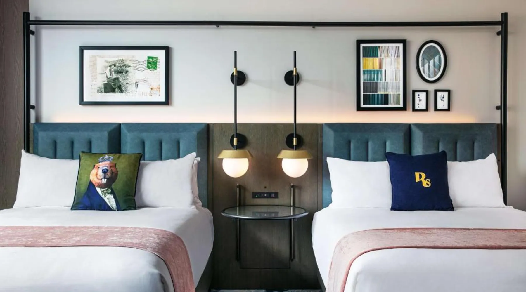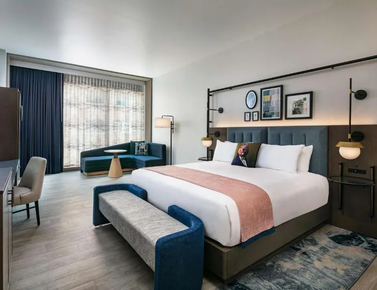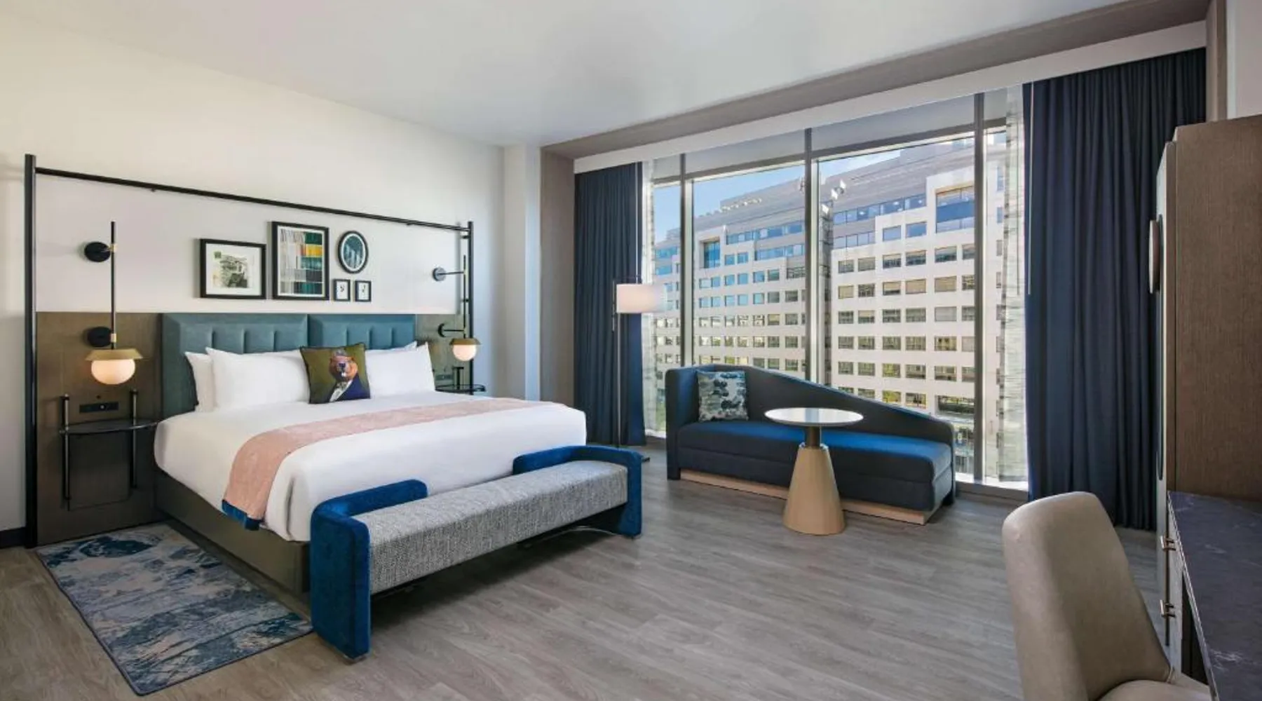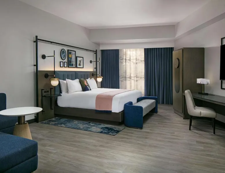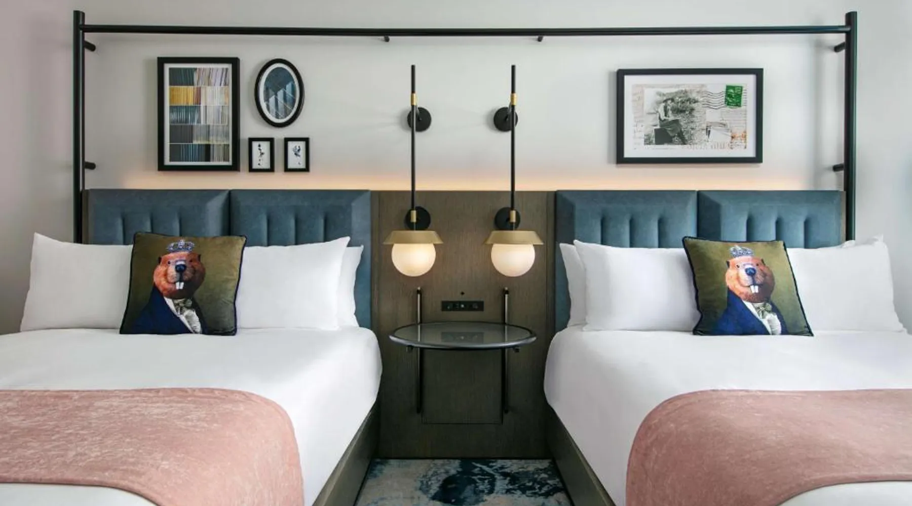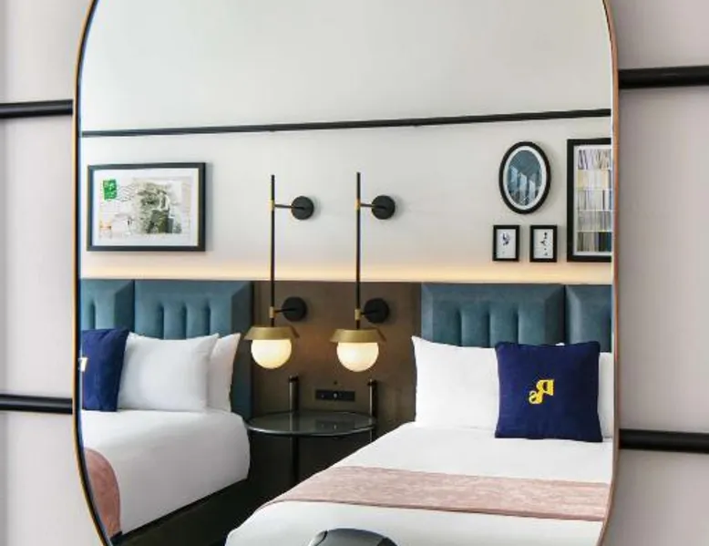 Elegant Accommodations: Rooms feature air-conditioning, private bathrooms, and modern amenities such as free WiFi, flat-screen TVs, and work desks. Additional comforts include bathrobes, tea and coffee makers, and hypoallergenic bedding. Dining and Leisure: The modern restaurant serves French cuisine, complemented by a bar offering a variety of beverages. Guests can also enjoy the fitness center, relax in the lounge, and take advantage of the 24-hour front desk and concierge service. Prime Location: Located in Washington, the hotel is a short walk from Union Station and the National Postal Museum. Nearby attractions include the National Japanese American Memorial and the Old Town Trolley Tours. An ice-skating rink is also available in the surroundings. Exceptional Service: Highly rated for its convenient location, attentive staff, and impeccable room cleanliness, the hotel ensures a comfortable and memorable stay. The quadruple room offers a tea and coffee maker. The unit offers 2 beds.