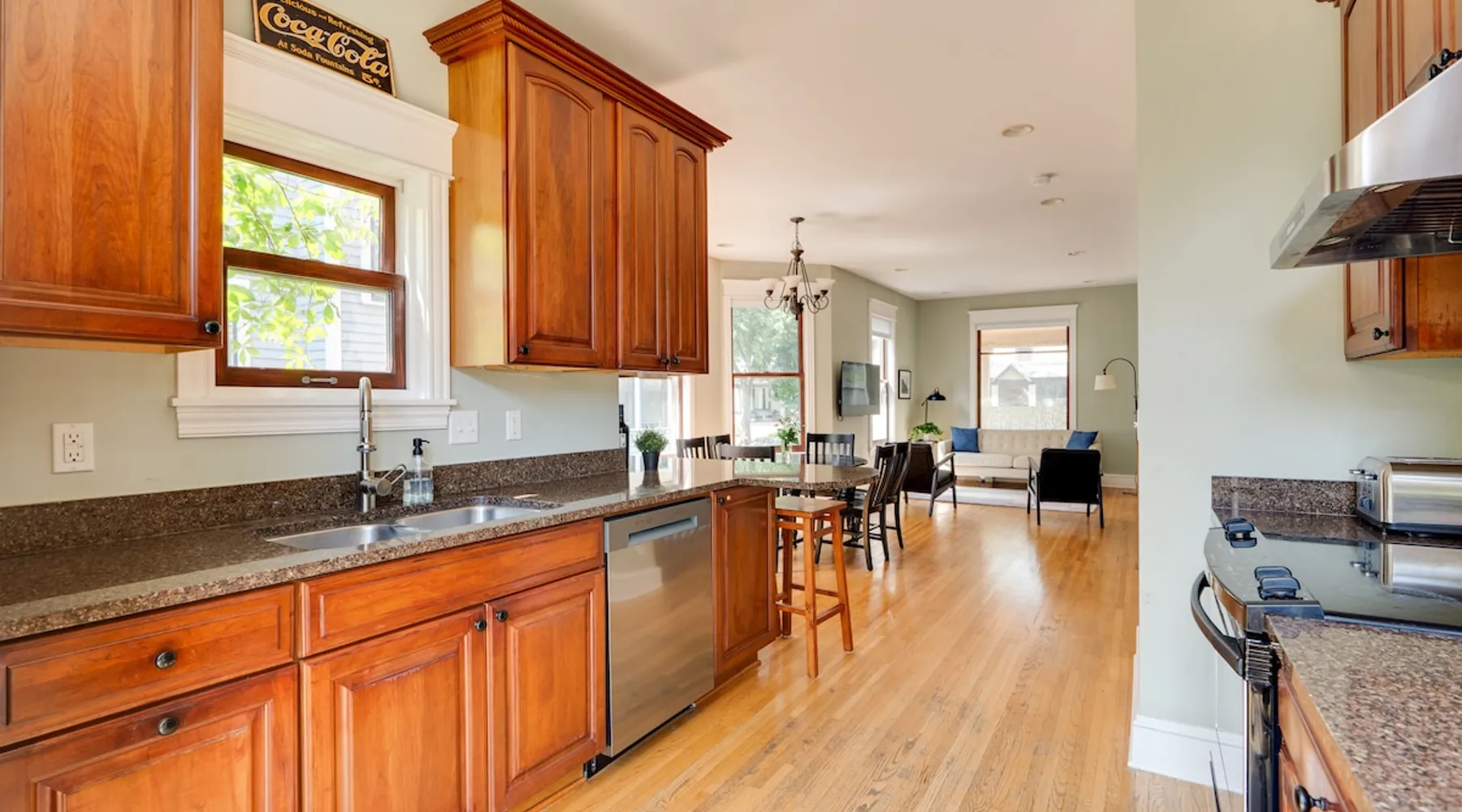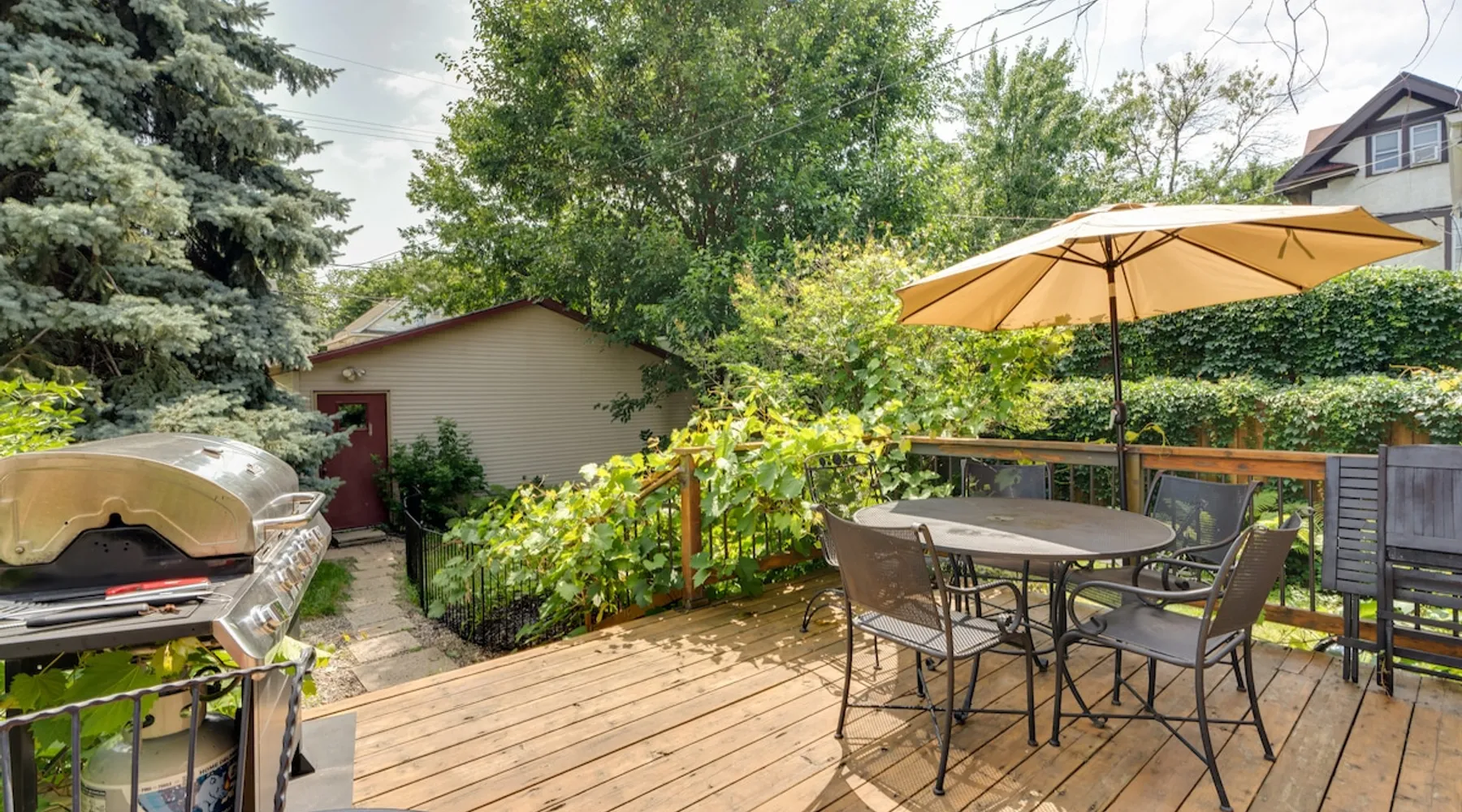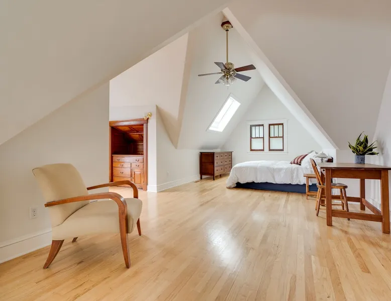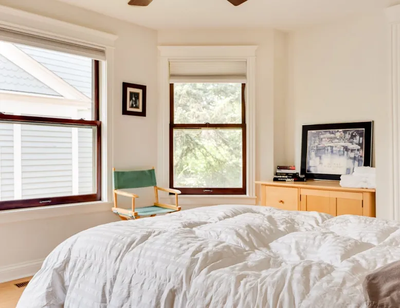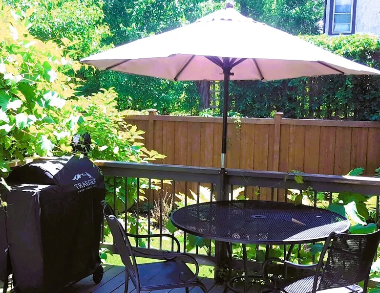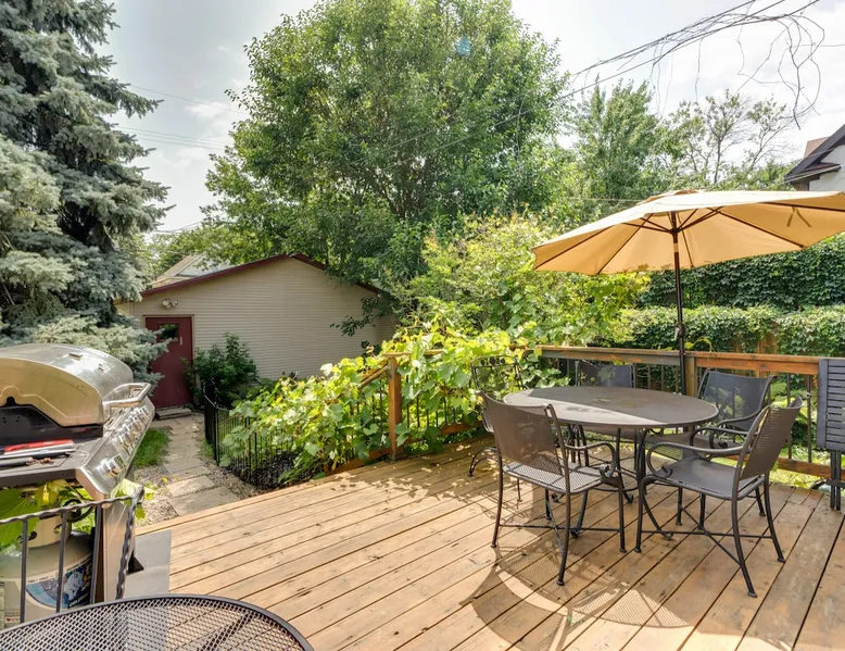 Stay in a sunny, modern home with everything close by; walk to Lake of the Isles, Uptown restaurants, and cafes. Relax on an inviting front porch before taking a 10’ Uber DT to US Bank Stadium, Target Field, or the Orpheum Theater. Enjoy friends in open and airy living areas with lofty ceilings, refinished wood floors, bay windows, and skylights. Prepare meals in a fully stocked kitchen and dine inside or grill outdoors on the deck. Serve dinner on a lighted deck in a fenced, landscaped yard. The space Red 3-story, 4 bedroom, 2.5 bathroom, modern single-family home. The house features an updated, comfortable open floor plan, central air, recessed lighting, a fireplace, and a balcony. Enjoy the outdoors on the front porch or the furnished deck overlooking a fenced landscaped yard. Each level of the home feels spacious, and the modern design provides easy and open access between living areas. The main floor's kitchen, dining, living, and den area let natural light stream in from bay windows and a wall of glass doors. The second floor has twelve windows and an atrium with a skylight that invites sunlight. The fully stocked kitchen opens to the deck, with a gas grill, a wrought iron table, an umbrella, and chairs. A 6-foot cedar fence creates privacy for the lighted deck, and the yard has grassy and gravel areas, making it dog-friendly. You can walk out the front entryway to the porch and enjoy a glass of wine before dinner or step down an open staircase to the lower level's sofa and television. Another open staircase by the den area leads to the lower level, which is furnished with a couch, television, and table. Walk up the winding white staircase to the second level's three bedrooms. Each bedroom has refinished maple floors, ample closet space, and pull-down shades. The second-floor bathroom has a tub and shower (a half bath is available on the first floor). Walk down the 2nd-floor hall to the sun-filled atrium with a skylight and windows. An open staircase takes you to the 4th bedroom on the 3rd floor. The large, lofted bedroom has a king bed under a skylight, a private bathroom with a shower, a balcony, a writing desk, a dresser, a double closet, a TV, and a lounge chair. 1st floor Kitchen, Dining, Den, and Living area. 1/2 Bathroom: sink and toilet Second floor 3 BRs with 2 Queen Beds, 1 Double Bed 1 Bathroom: Bathtub/shower, sink and toilet. Third floor 1 BR with a King Bed 1 Bathroom: Shower, sink and toilet Lower-Level Couch and television Laundry area Guest access The entire single-family 2500 sq. ft home and garage is yours during your stay. You have access to; The three-story home's main floor has a kitchen, den, dining, and living areas. Four bedrooms are on the second and third floors. The lower level has an entertainment area and laundry. The furnished front porch, deck, fenced landscaped yard, and balcony are for your use during your stay. There is a 2-car garage and parking space next to it and unlimited street parking in front of the home. Inside the garage are two adult single-speed bicycles for you to explore the neighborhood, lakes, and parks at your leisure. Upon arrival, you can park next to the 2-car garage, open the back gate, and step past the Spruce tree into the backyard. Walk up the stone path to the deck. Use the code provided to open the glass door to the right of the sliding doors. Garage keys and two remote garage door openers will be on the kitchen counter, allowing you to open and lock the garage door. We hope you will also use and enjoy the gas grill, deck, porch, landscaped yard, balcony, and furnishings provided. Other things to note Relax in a sunny home near Lake of the Isles. Stay in a great space: Sun-filled rooms, atrium with skylights Porch Deck and Balcony Fully stocked kitchen. 2 Car Garage and a Parking space Central AC and fireplace Pet Friendly, Kid and Family Friendly 4 free vintage single-speed bicycles 2500 square feet of living space Entertain with ease: Prepare dinner in a equipped kitchen or Grill outside on back deck/fenced yard Furnished deck with a landscaped yard Close to everything (Location Highlights) • Walk to Lake of the Isles 8 minutes or • Cruise Parkways on one of our 4 bikes • Speakeasy, Retro bowling, Live music • Walk to coffee shops, parks, theaters • Walk to restaurants, boat or bike rentals • Uber to stadiums DT in 10 minutes Lake of the Isles 6 Bl. Isles Buns and Coffee 2 Bl. Lake of Isles Dog Park 8 Bl. Greenway bike trail. 1 Bl. Target Field 2.5 Mi. Walker Art Gallery 1.3 Mi Give every guest the space they need • 3 Story, 4 BR, 2.5 Bath • 2500 square foot home • 2nd Fl.: 3 BRs 3/4 bath (2 Queen, 1 Full) • 3rd Fl. loft BR, King, skylights, shower Lower Level Furnished, Games and TV. Registration Details LIC-369012