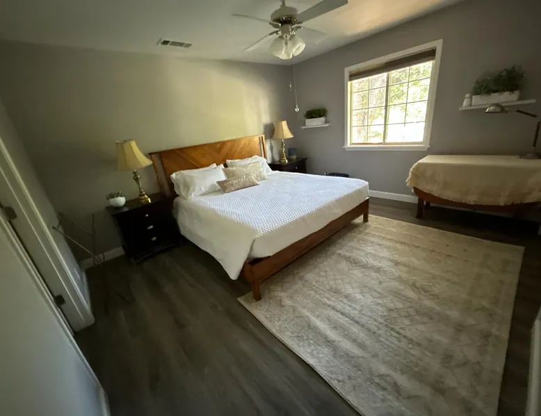 Forget your worries in this spacious 1,607 sq foot home. Minutes to town in a quiet neighborhood. Wi-fi, smart TVs. Ac & Heat! Very comfortable living room with plenty of seating. Stocked kitchen for more than one to cook in. Range, double oven, fridge, dishwasher and microwave. Large bedrooms, queen beds and bed toppers with comfortable pillows. Deck with forest view with an Into the Woods vibe! Propane BBQ. Desk area in one bedroom. Your comfort is our number one priority during your stay! The space This home is spacious yet, it feels so warm and cozy! The decor is light and happy. The kitchen is bright and big enough for multiple people to be in it at the same time. There is a wonderful deck off the back with forest views and a propane BBQ. Plenty of wildlife can be seen from the deck grazing in the forest. This home has city piped in water supply, not well water **No parties **No pets **No smoking *Easy keyless entry *Early checking in and Late check out MUST be a arranged in advance and will incur additional fees. Housekeepers are paid by the hour, whether cleaning or waiting. *No unpermitted guests on premise (all guests must be accounted for during booking) Guest access Guests will have the whole home and outside deck to use. Other things to note 16 miles from South Gate of Yosemite (mountain roads), 5 miles from Bass Lake *Minutes from grocery stores, drugstores, restaurants, coffee shops, breweries *Many activities nearby!