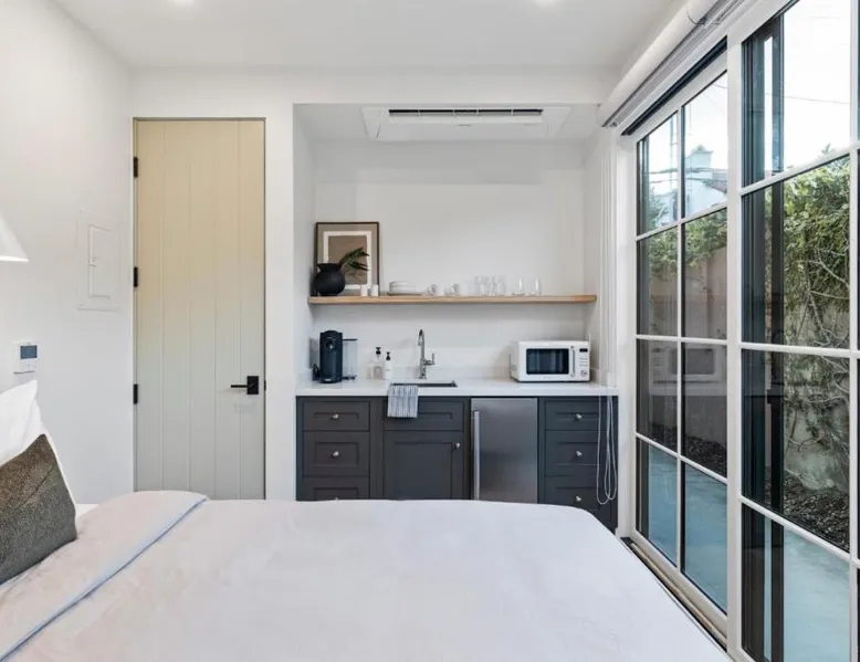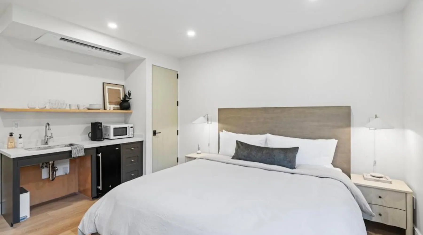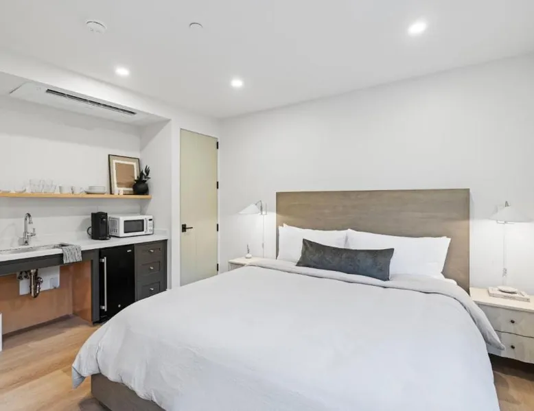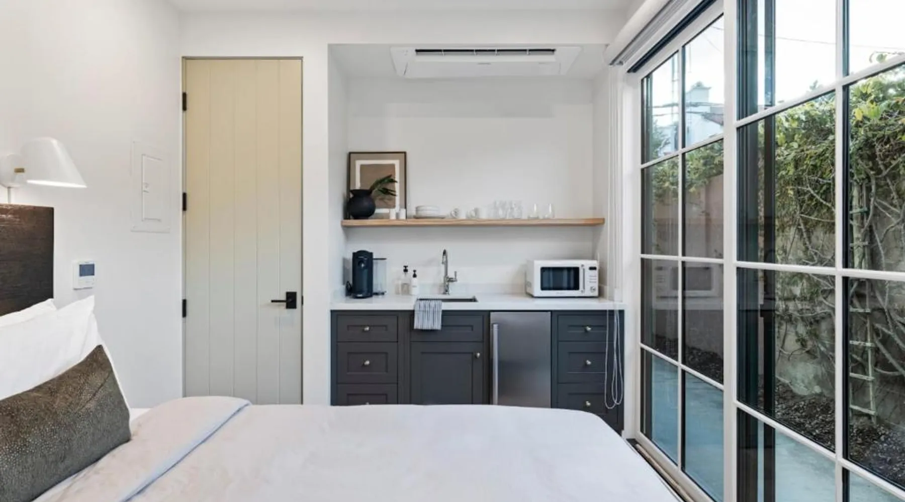 Prime Location: Casa Jardin - Boutique Suites in Downtown Santa Barbara is located in the city center, offering easy access to key attractions. The Santa Barbara Museum of Art is a 6-minute walk away, while East Beach lies 1.5 mi from the property. Comfortable Accommodations: Each apartment features air-conditioning, a private bathroom, and a fully equipped kitchen with a refrigerator, microwave, and dishwasher. Additional amenities include a washing machine, sofa bed, and streaming services. Convenient Facilities: Guests benefit from free WiFi, a 24-hour front desk, and free on-site private parking. The property also provides a work desk, tea and coffee maker, and a hairdryer for added comfort. Nearby Activities: Boating is available in the surrounding area, offering leisure opportunities for visitors. Santa Barbara Airport is 9.3 mi from the property, providing convenient travel options. The well-fitted kitchen features a refrigerator, a microwave and a tea and coffee maker. This air-conditioned studio includes a TV with streaming services and a private bathroom. The unit offers 1 bed.