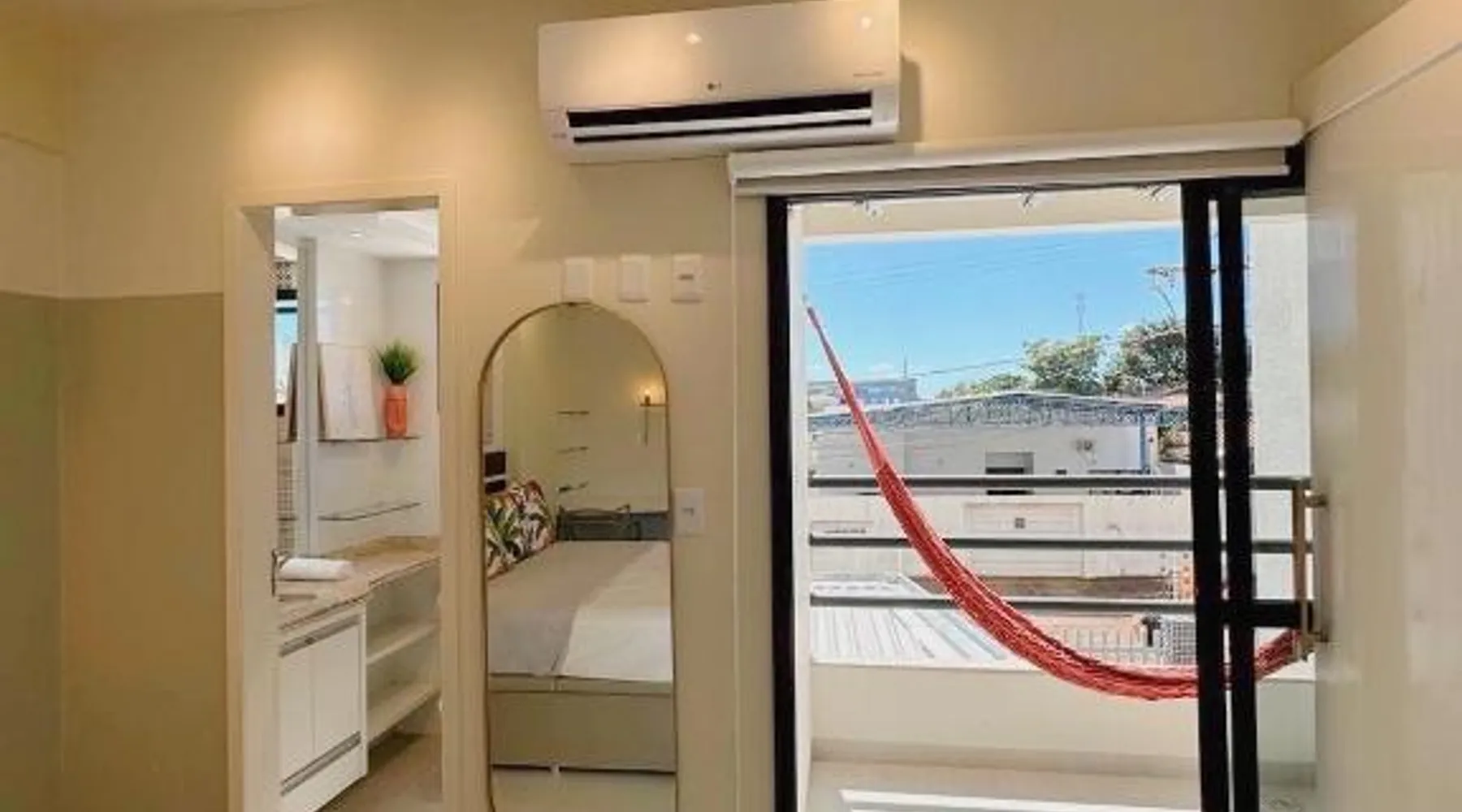 Modern Comforts: PALMAS EXPERIENCE - Apartamento Girassol in Palmas offers a recently renovated apartment with air-conditioning, a balcony, and a fully equipped kitchen. Guests enjoy free WiFi, a washing machine, and a private bathroom. Leisure Facilities: The property features a garden, a year-round outdoor swimming pool, and a elevator. Additional amenities include a 24-hour front desk, family rooms, and full-day security. Free on-site private parking is available. Prime Location: Located 16 mi from Brigadeiro Lysias Rodrigues Airport, the apartment is a 17-minute walk from Girassois Square and 1.2 mi from Araguaia Palace. Nearby attractions include Cesamar Park (1.9 mi) and Palmas Bus Station (6.2 mi). Guest Satisfaction: Highly rated for its kitchen, convenient location, and room cleanliness, the apartment ensures a pleasant stay for all visitors. This air-conditioned apartment is consisted of of 1 living room, 1 separate bedroom and 1 bathroom with a shower. The fully equipped kitchen features a stovetop, a refrigerator, kitchenware and an oven. The apartment offers a flat-screen TV, a washing machine, soundproof walls, a mini-bar as well as garden views. The unit offers 1 bed and 3 futons.