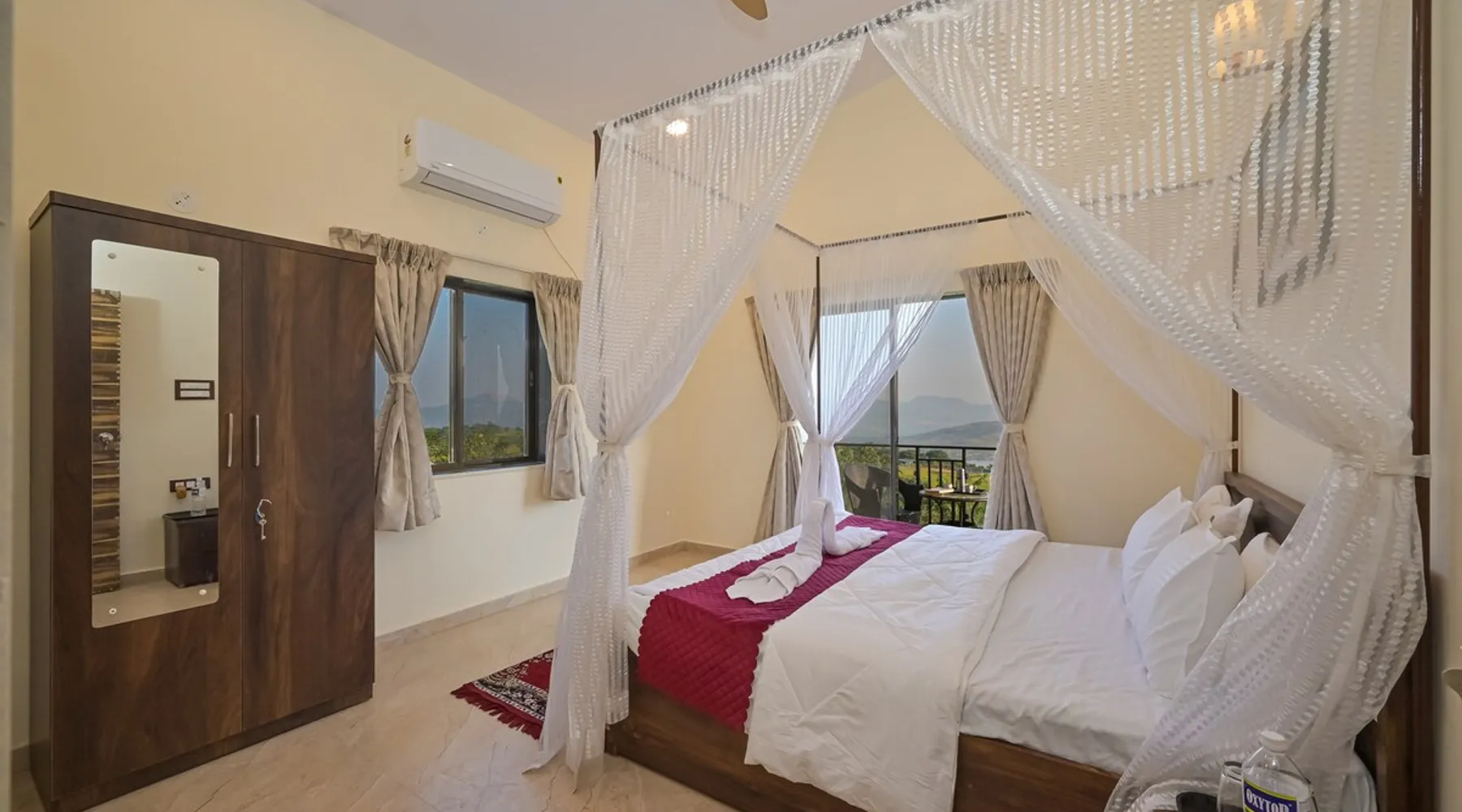 Escape to a 3 BHK luxury bungalow with a private swimming pool, perfect for families and friends looking for a relaxing getaway. Enjoy spacious AC bedrooms, music system, Wi-Fi, and a cozy outdoor gazebo — all designed for comfort and fun. Spend your days by the pool, play outdoor games like football, cricket, and badminton, or unwind under the stars with a projector screen (seasonal). The space This spacious villa features 3 AC bedrooms (2 with attached bathrooms), a cozy living area, and modern amenities. Enjoy your favorite music with our sound system, stay connected with Wi-Fi, and keep your drinks cool in the refrigerator. Guest access Guests can enjoy the private swimming pool, projector screen , gazebo seating area, and outdoor games like football, cricket & badminton. Private parking and inverter backup are also provided for your convenience. Other things to note Kitchen access not allowed Outside food not allowed Barbeque arrangements can be made on demand Serve ware for Veg & Non-Veg food A refundable deposit of INR.5000 Ideal for families, friends & small groups looking for a relaxing retreat near Pawana Lake