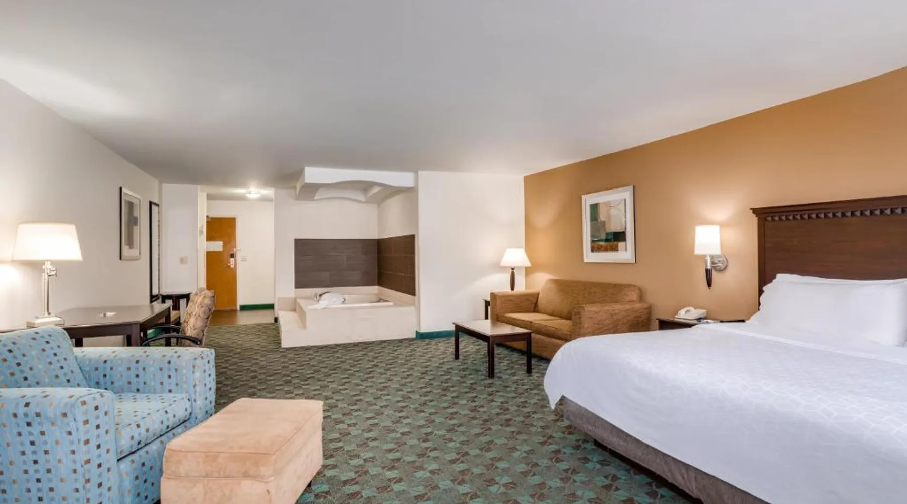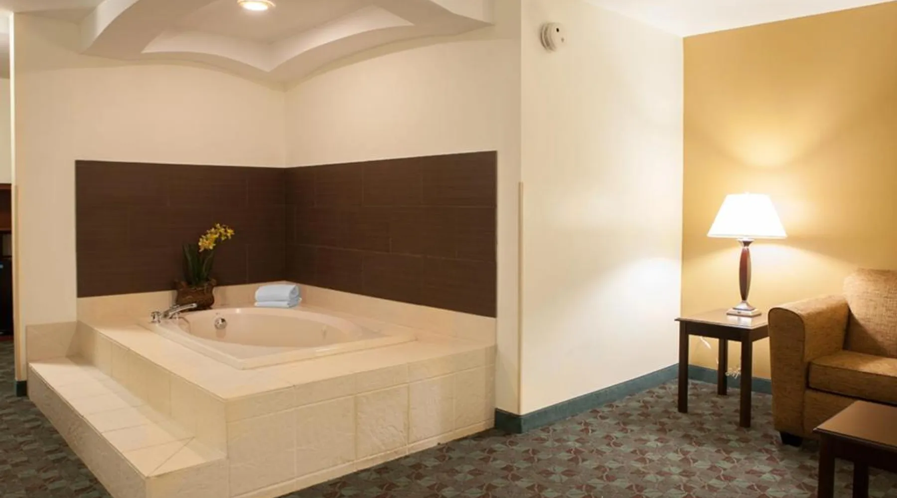 Comfortable Accommodations: Holiday Inn Express Hotel & Suites Canton by IHG in Canton offers comfortable rooms with air-conditioning, private bathrooms, and free WiFi. Each room includes a work desk, sofa bed, and TV. Exceptional Facilities: Guests can enjoy an indoor swimming pool, hot tub, and outdoor seating area. Additional amenities include a elevator, 24-hour front desk, and free on-site private parking. Convenient Location: Located 8.1 mi from Detroit Metro Airport, the hotel is near attractions such as Eastern Michigan University (11 mi) and the University of Michigan (20 mi). Bike tours are available for exploring the area. Boasting free Wi-Fi and cable TV, this room is equipped with tea and coffee-making facilities, a refrigerator and a microwave.