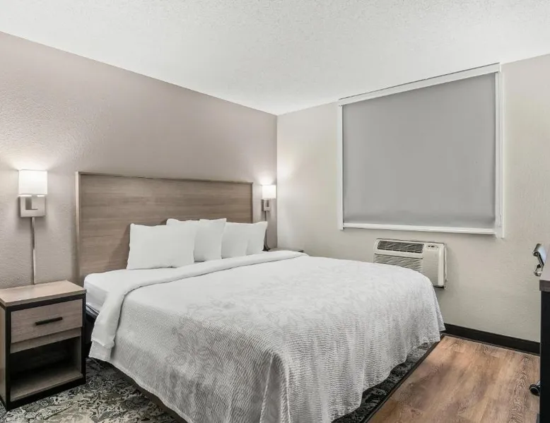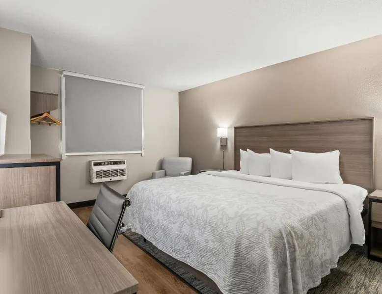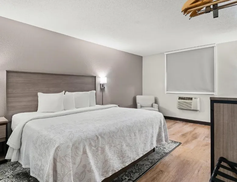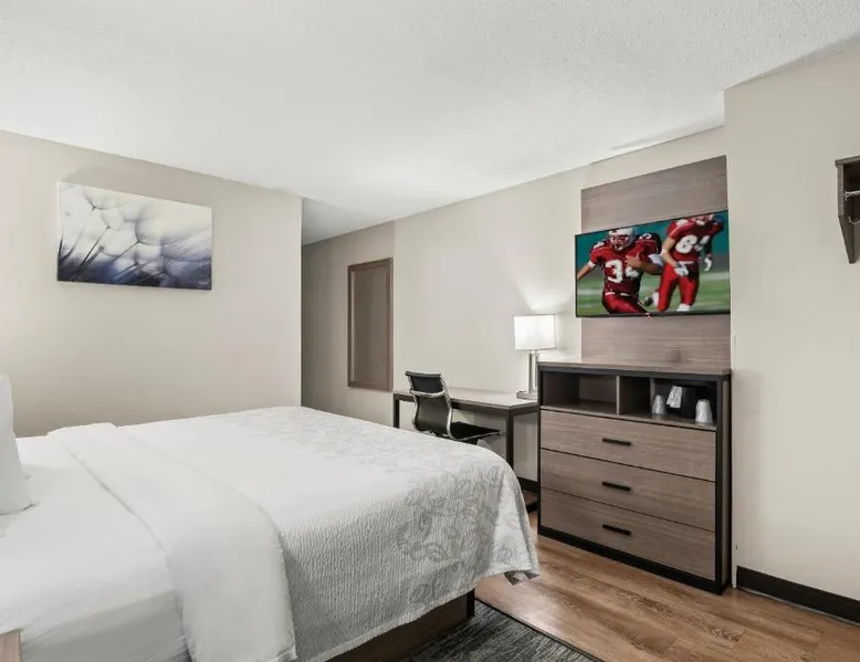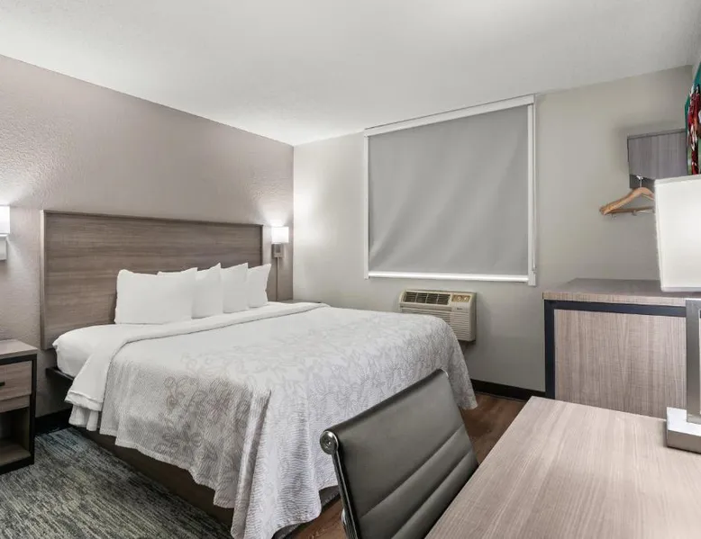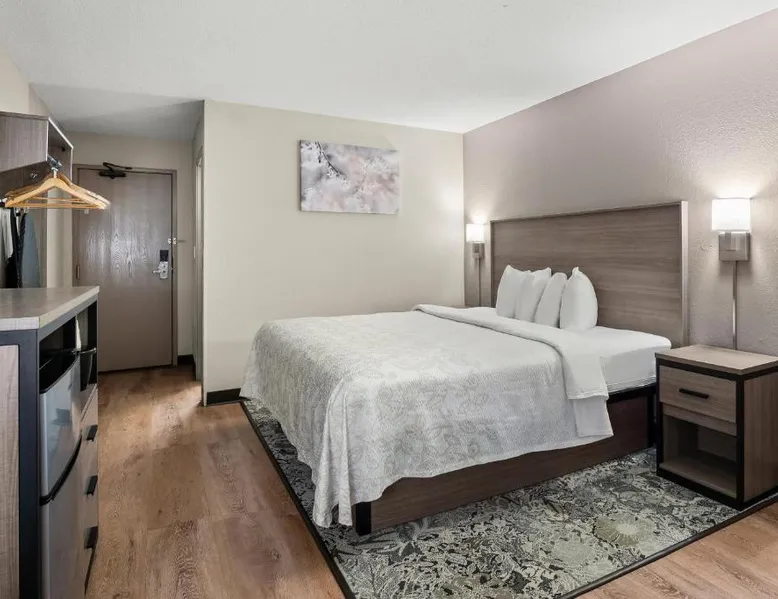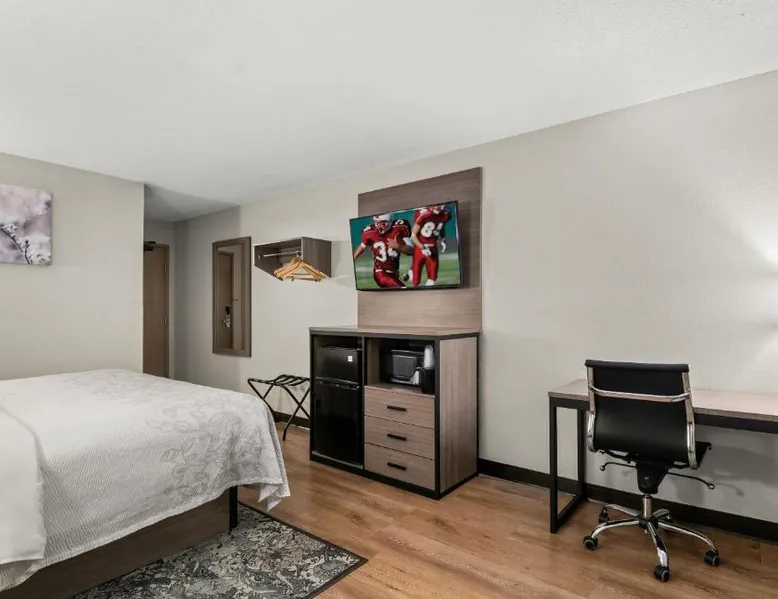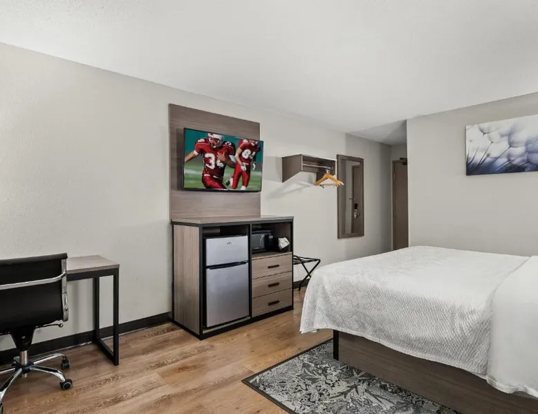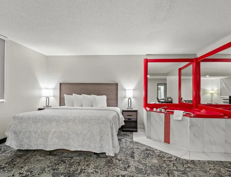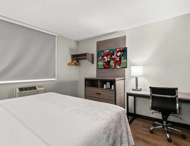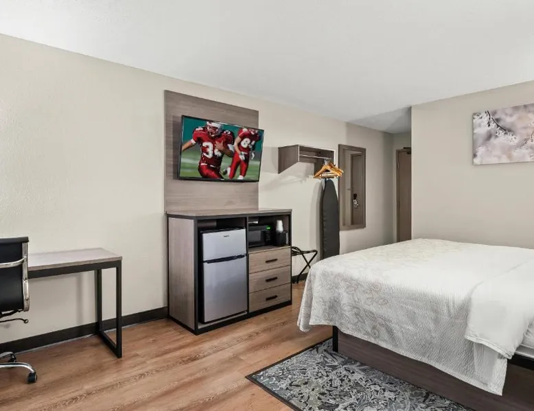 Comfortable Accommodations: Red Roof PLUS Belleville in Belleville offers family rooms with air-conditioning, private bathrooms, and free WiFi. Each room includes a bath, shower, TV, and free toiletries. Convenient Facilities: Guests benefit from a elevator, 24-hour front desk, and free on-site parking. Additional amenities include a spa bath, tea and coffee maker, hairdryer, refrigerator, work desk, and seating area. Prime Location: Located 8.1 mi from Detroit Metro Airport, the hotel is near attractions such as Eastern Michigan University (9.9 mi) and the Ann Arbor Hands-On Museum (17 mi). The spacious double room offers air conditioning, heating, as well as a private bathroom featuring a bath and a shower. The unit offers 1 bed.