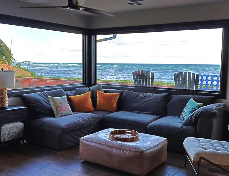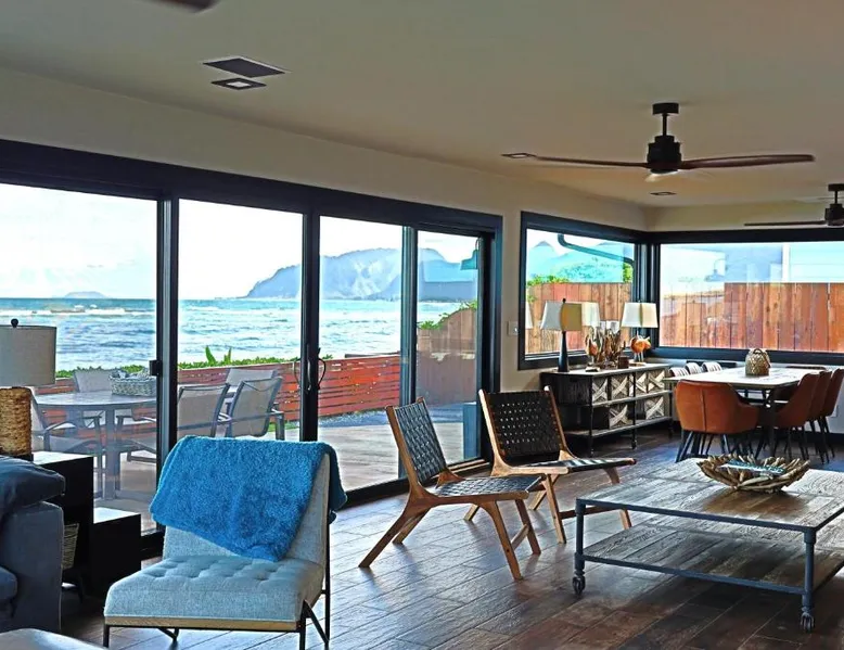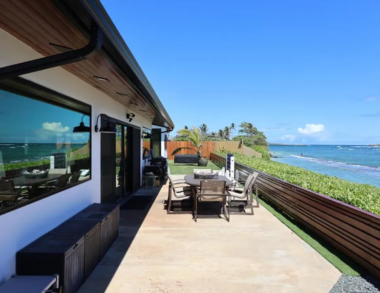 Beachfront Living: Oahu's Best Kept Secret in Laie offers direct beachfront access with a private beach area. Guests enjoy sea views and a serene garden setting. Spacious Accommodations: The holiday home features four bedrooms and two bathrooms, a living room, and a fully equipped kitchen. Recently renovated, it provides ample space for relaxation. Amenities and Activities: The property includes a hot tub, outdoor seating area, picnic spot, and bicycle parking. Activities such as hiking and snorkeling are available nearby. Nearby Attractions: Laniloa Beach is just a few steps away, while the Polynesian Cultural Center is a 1-minute walk. Other points of interest include Banzai Pipeline (12 mi) and North Shore (19 mi). The hot tub and fireplace are the standout features of this holiday home. Featuring a private entrance, this air-conditioned holiday home is consisted of of 1 living room, 4 separate bedrooms and 2 bathrooms with a walk-in shower and a bidet. Guests will find a stovetop, a refrigerator, a dishwasher and kitchenware in the well-equipped kitchen. The holiday home also has a barbecue. The spacious holiday home offers a flat-screen TV with streaming services, a washing machine, a tea and coffee maker, a seating area as well as sea views. The unit offers 7 beds.