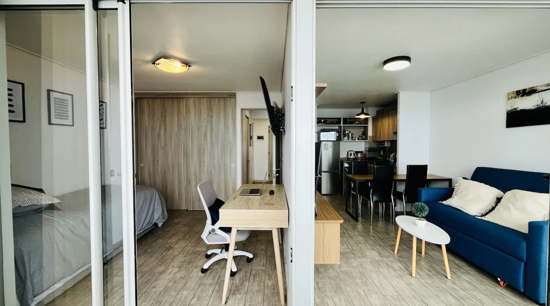 ⛵Enjoy our Luminous Oceanview Apartment in Exclusive Reñaca Sector 5, your peaceful coastal escape away from urban noise. Ideal for families or groups seeking a home office base or a gateway to explore nature, beaches, and attractions. The space 🟢 1 bedroom with 1 double bed 🟢 1 versatile bedroom with 2 single beds (trundle), 1 Smart TV, 1 desk + 1 ergonomic chair for home office 🟢 Bed Linens & Towels included 🟢 2 Fully equipped Bathrooms 🟢 Fully equipped Kitchen 🟢 In-Unit Washer/Dryer 🟢 High Speed Wi-Fi (> 600 Mbps) 🟢 1 Smart TV in living room with HD Antenna (Local Channels) 🟢 1 Alexa virtual assistant connected to Spotify 🟢 Double-pane windows for sound and thermal insulation 🟢 Window rollers with screen and blackout blinds 🟢 Portable fan-heater (for summer/winter) 🟢 BBQ area (available for an additional fee and subject to availability) 🟢 Spacious Terrace with Closed Glass Balcony 🟢 Free Parking, 1 covered space underground Guest access 🔑 The property has a smart lock, allowing 24/7 access. Other things to note 🚫 No parties, or events allowed. 🐾 Small/medium sized pets allowed (max. 1, must be added to reservation) 📝 Mandatory Online Registration Form ♻️ We use eco friendly, biodegradable & antibacterial cleaning products. 🧡 We deeply care about our home, our environment and our community. 🤗 Thank you for being a respectful guest! 📅 Book now and live an unforgettable experience in Reñaca!