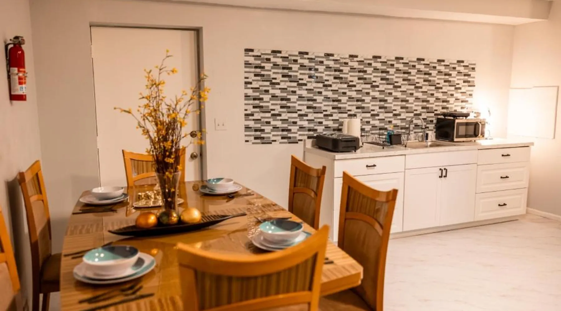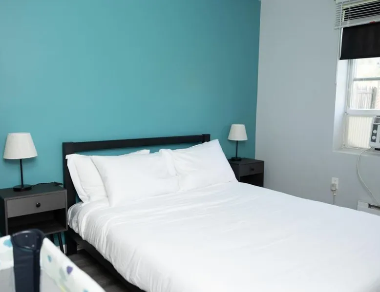Spacious Accommodations: Sapphire Suite Near NYC in Bayonne offers a spacious apartment with two bedrooms and one bathroom. The property features a fully equipped kitchen, air-conditioning, and a TV. Outdoor Space: Guests can relax in the private garden, providing a tranquil setting. Free WiFi is available throughout the apartment. Convenient Location: Located 8.7 mi from Newark Liberty International Airport, the apartment is close to attractions such as the Statue of Liberty (6.8 mi), Ellis Island (7.5 mi), and the Brooklyn Bridge (14 mi). The air-conditioned apartment has 2 bedrooms, 1 bathroom and a kitchen. The apartment's kitchen, which features a refrigerator, is available for cooking and storing food. This apartment features a TV. The unit has 2 beds.