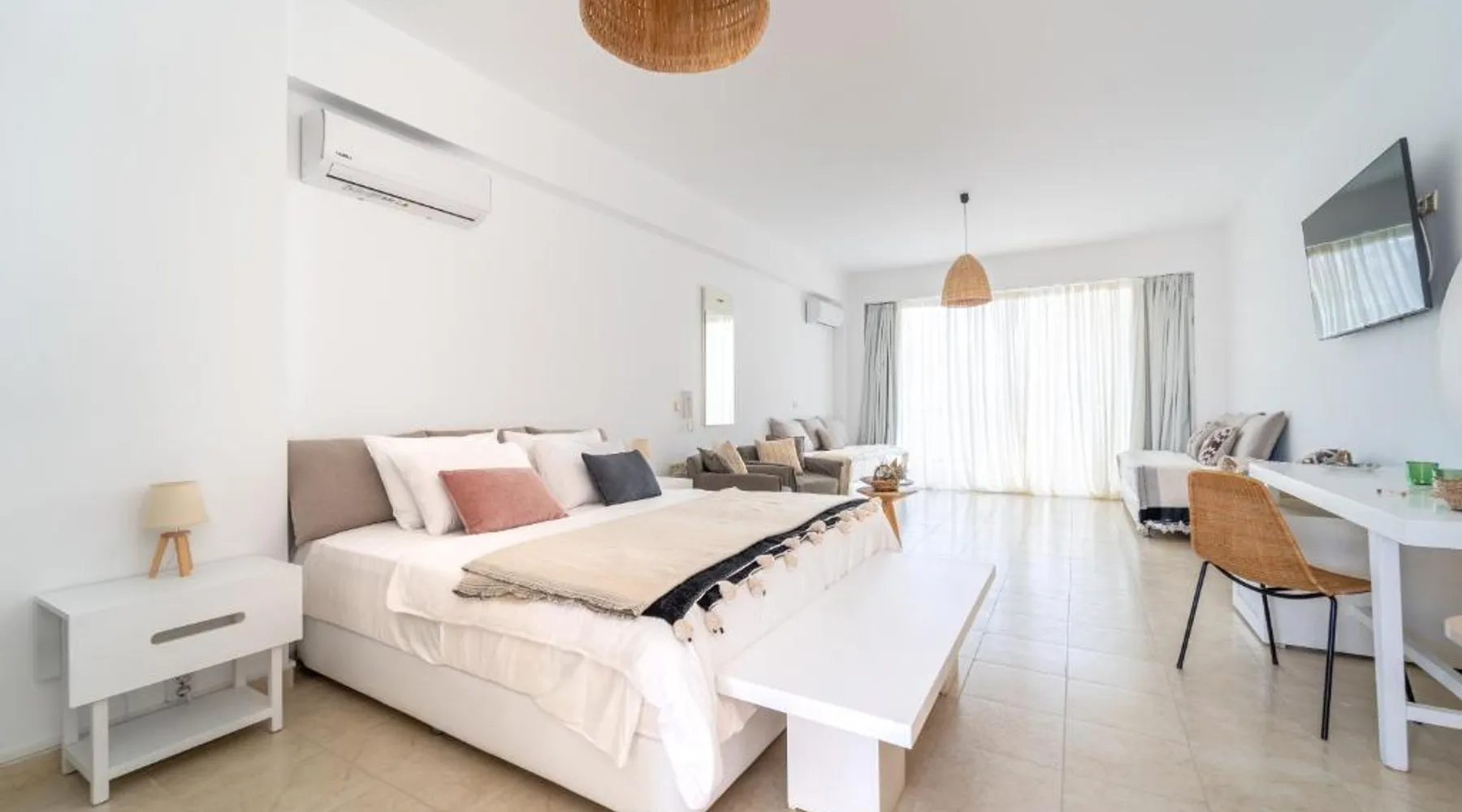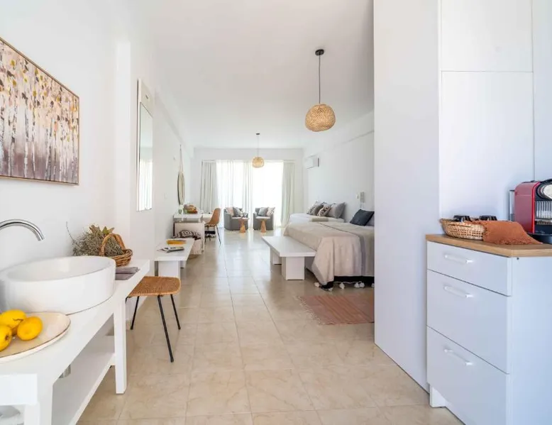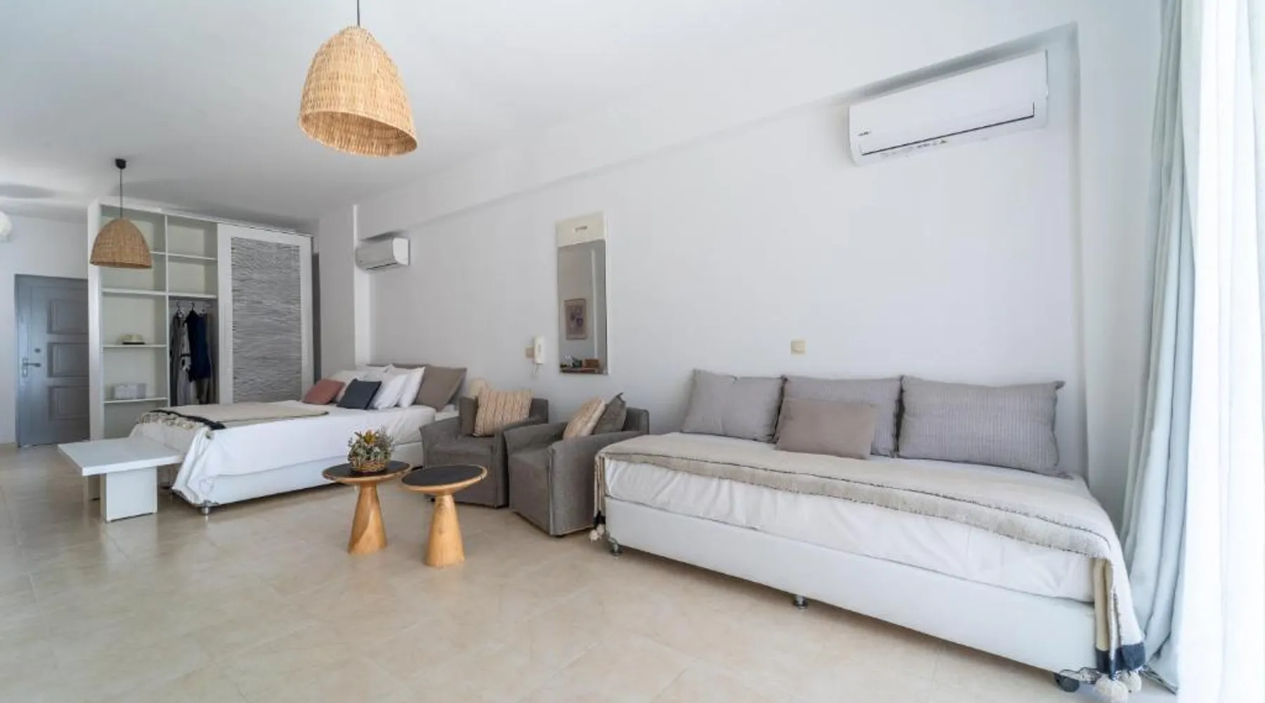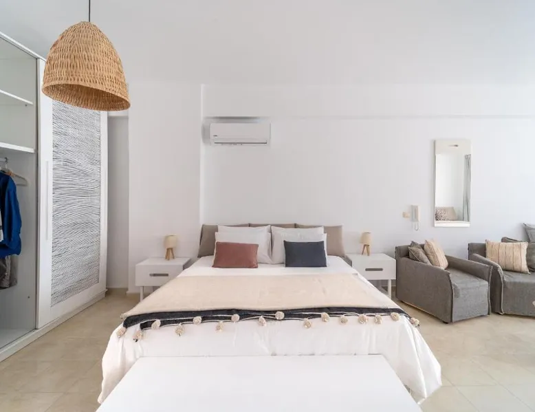 Comfortable Accommodations: Alpha Urban Suites in Rhodes Town offers a sun terrace and free WiFi. The apartment features air-conditioning, a balcony with city views, and a private bathroom. Convenient Facilities: Guests benefit from private and express check-in and check-out services, a elevator, outdoor seating area, family rooms, bicycle parking, and free on-site private parking. Prime Location: Located 7.5 mi from Rhodes International Airport, the property is a short walk from Akti Kanari Beach (12 minutes) and the Temple of Apollon (0.7 mi). Nearby attractions include the Grand Master's Palace and Lindos Acropolis. Guest Highlights: Guests appreciate the convenient location, room comfort, and attentive host. Featuring a private entrance, this air-conditioned suite consists of 1 bedroom and 1 bathroom with a walk-in shower and a hairdryer. Boasting a terrace with city views, this suite also provides soundproof walls and a flat-screen TV with streaming services. The unit offers 3 beds.