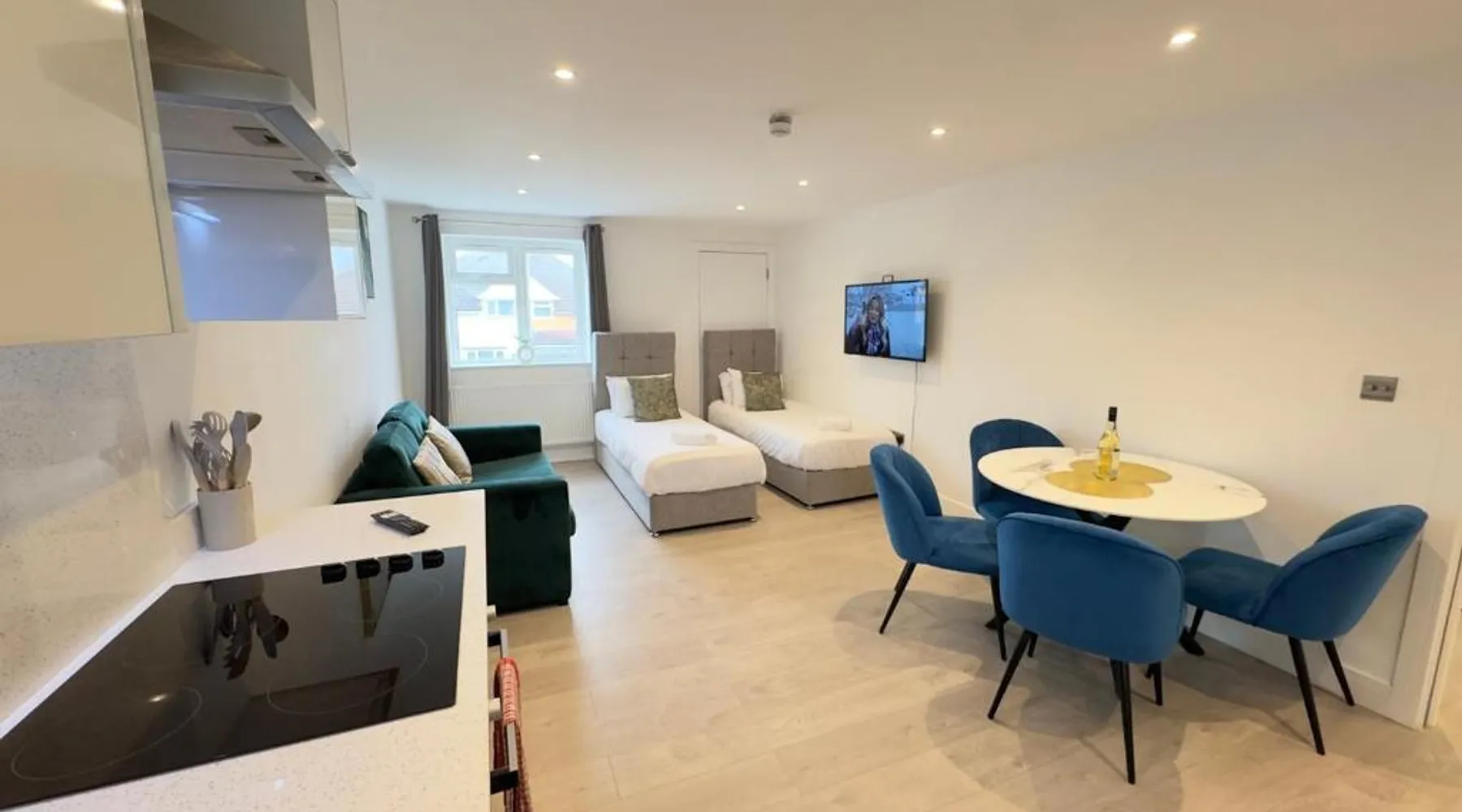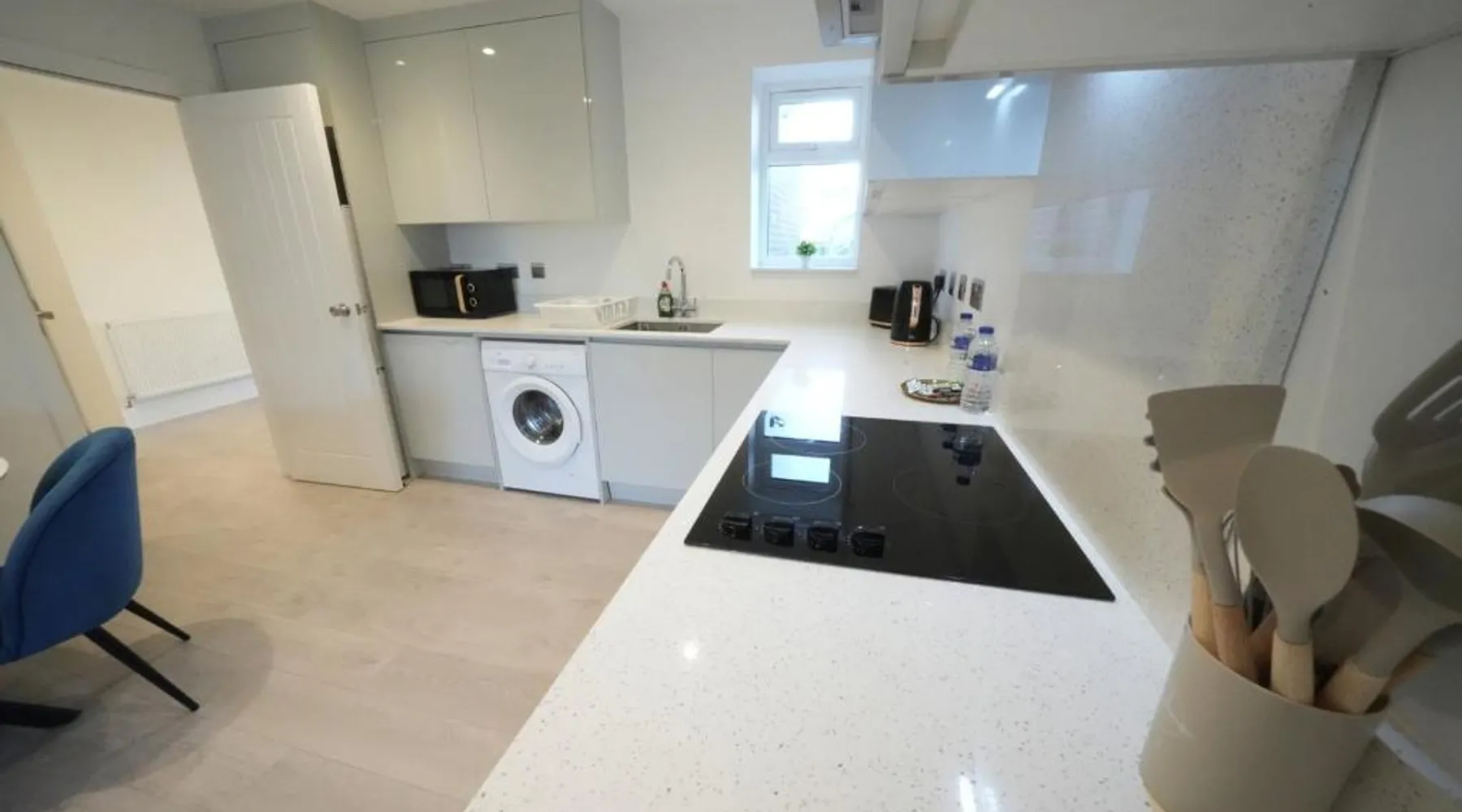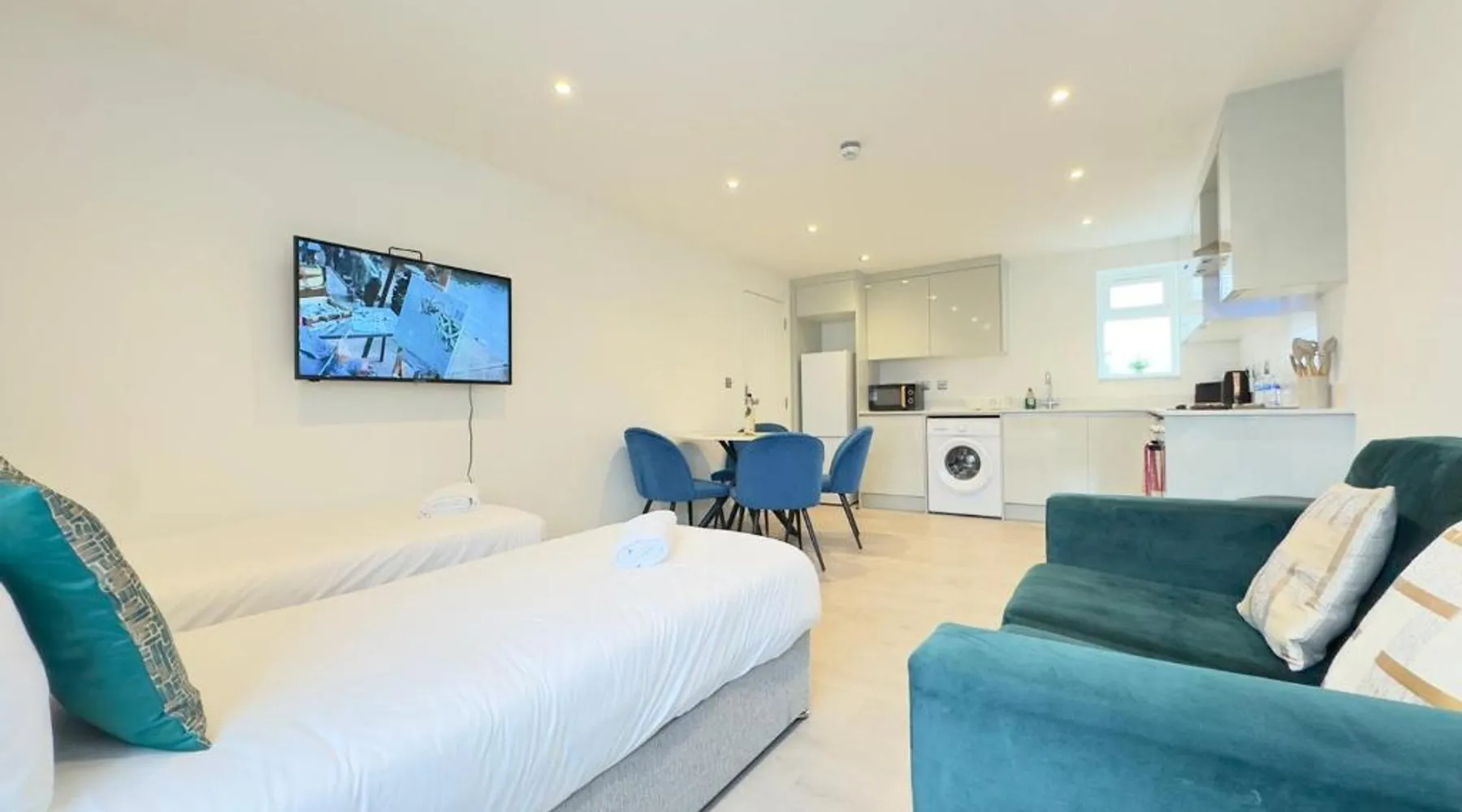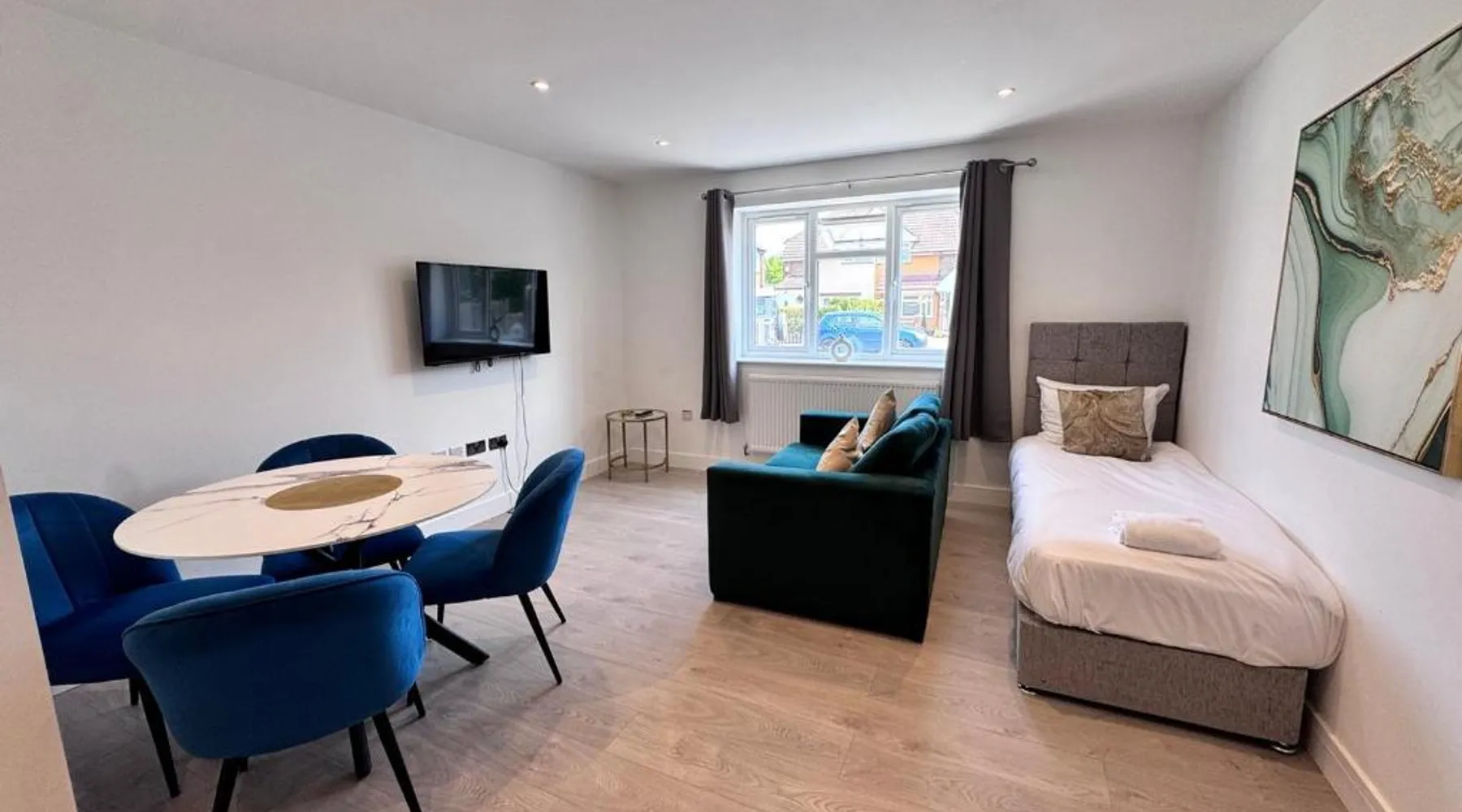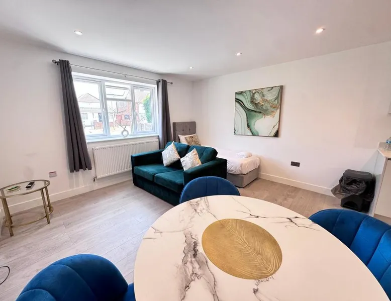 Comfortable Accommodations: The apartment offers free WiFi, a private bathroom, and a fully equipped kitchen with modern appliances. Guests can enjoy garden views from the seating area and relax in the soundproofed space. Convenient Facilities: Private check-in and check-out services ensure a smooth arrival and departure. The property provides paid off-site parking, a paid shuttle service, and family rooms, catering to all travelers. Prime Location: Located in Stanwell, the apartment is 2.5 mi from London Heathrow Airport. Nearby attractions include Hounslow West (4.3 mi), Thorpe Park (5 mi), and Hampton Court Palace (8.1 mi). Guests appreciate the room cleanliness and connectivity to the airport. This spacious apartment consists of 1 living room, 1 separate bedroom and 1 bathroom with a bath and free toiletries. The fully equipped kitchen features a stovetop, a refrigerator, kitchenware and an oven. The apartment provides a flat-screen TV with streaming services, a washing machine, soundproof walls, a seating area as well as garden views. The unit offers 4 beds.