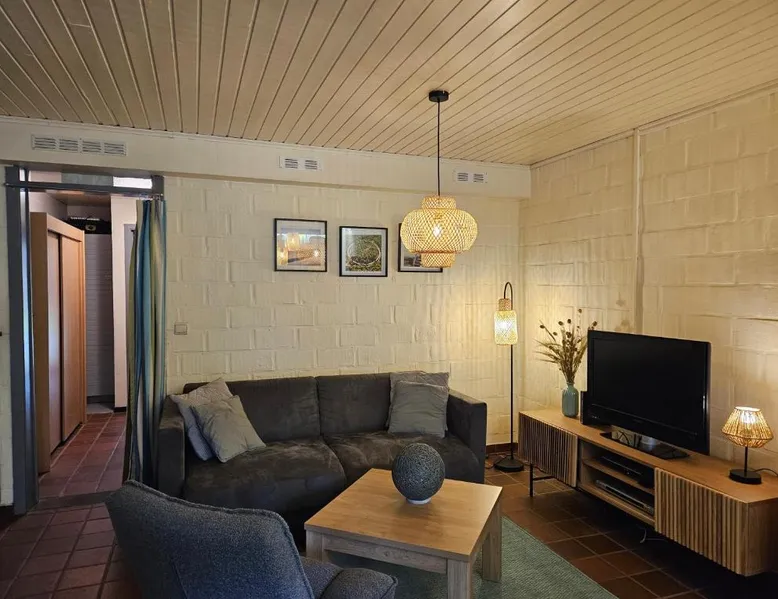 Comfortable Accommodations: Bos-Chalet bij Wijers Wandelroutes in Houthalen-Helchteren offers a two-bedroom apartment with two bathrooms and a spacious living room. The ground-floor unit features a fully equipped kitchen, dining area, and private check-in and check-out services. Outdoor Amenities: Guests can enjoy a seasonal outdoor swimming pool, a beautiful garden, and an outdoor seating area. Free WiFi is available throughout the property, ensuring connectivity during the stay. Leisure Activities: The apartment provides access to a waterpark and offers cycling opportunities nearby. Additional facilities include a private balcony, family rooms, and free on-site parking. Local Attractions: C-Mine is 4.3 mi away, Bokrijk 6.2 mi, Hasselt Market Square 11 mi, and Maastricht International Golf 20 mi from the property. Other points of interest include the Basilica of Saint Servatius and Vrijthof, each 21 mi distant. This apartment comes with 1 living room, 2 separate bedrooms and 2 bathrooms with a bath or a shower. Guests can make meals in the kitchen that features a stovetop, a refrigerator, a dishwasher and kitchenware. This apartment consists of a dining area, a TV with cable channels an electric kettle and outdoor furniture. The unit has 3 beds.