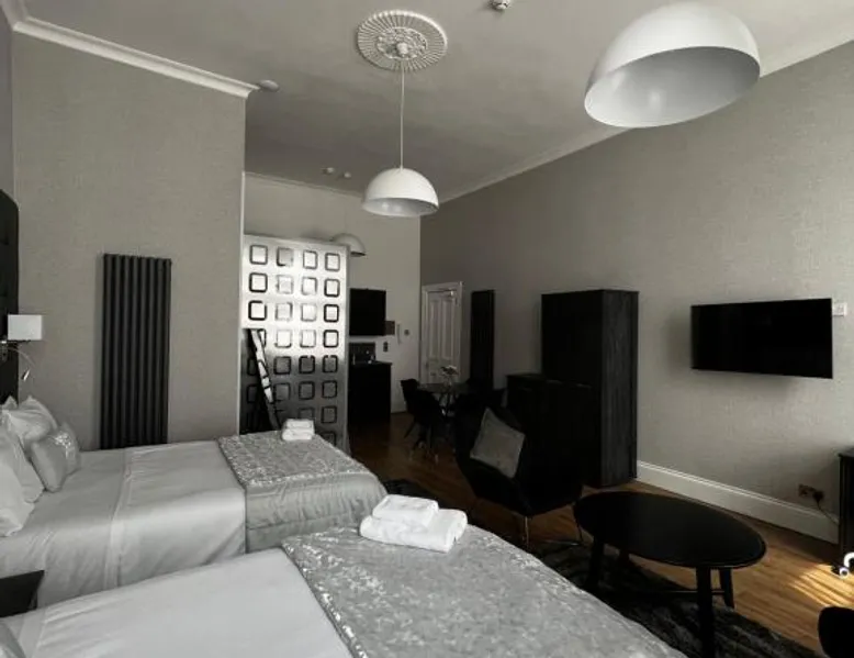 Prime City Center Location: Amani Apartments - Glasgow City Center is located in Glasgow City, offering a convenient base with Glasgow Central Station less than 0.6 mi away. Nearby attractions include Buchanan Galleries (12-minute walk), Sauchiehall Street (1640 feet), and George Square (0.6 mi). Comfortable Accommodations: Each apartment features a kitchenette, private bathroom, and free WiFi. Additional amenities include streaming services, a work desk, and a seating area. Guests appreciate the room cleanliness and fully equipped kitchen. Convenient Facilities: The aparthotel provides private check-in and check-out, a concierge service, electric vehicle charging, and a business area. Express services, luggage storage, and full-day security ensure a comfortable stay. Nearby Activities: Boating is available in the surrounding area, offering relaxing activities for visitors. Providing free toiletries, this studio includes a private bathroom with a walk-in shower, a hairdryer and slippers. The well-equipped kitchen features a stovetop, a refrigerator, kitchenware and an oven. The studio provides a private entrance, soundproof walls, a mini-bar, a flat-screen TV with streaming services, as well as an inner courtyard view. The unit offers 1 bed.