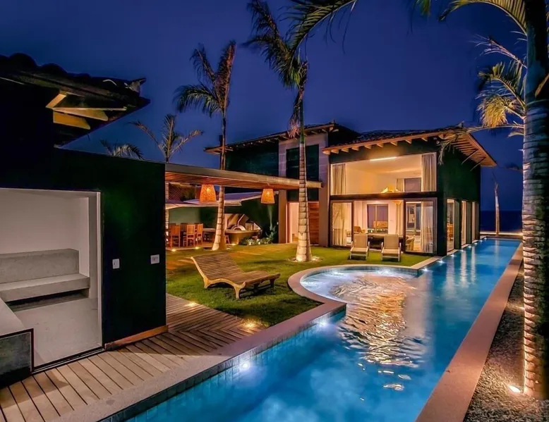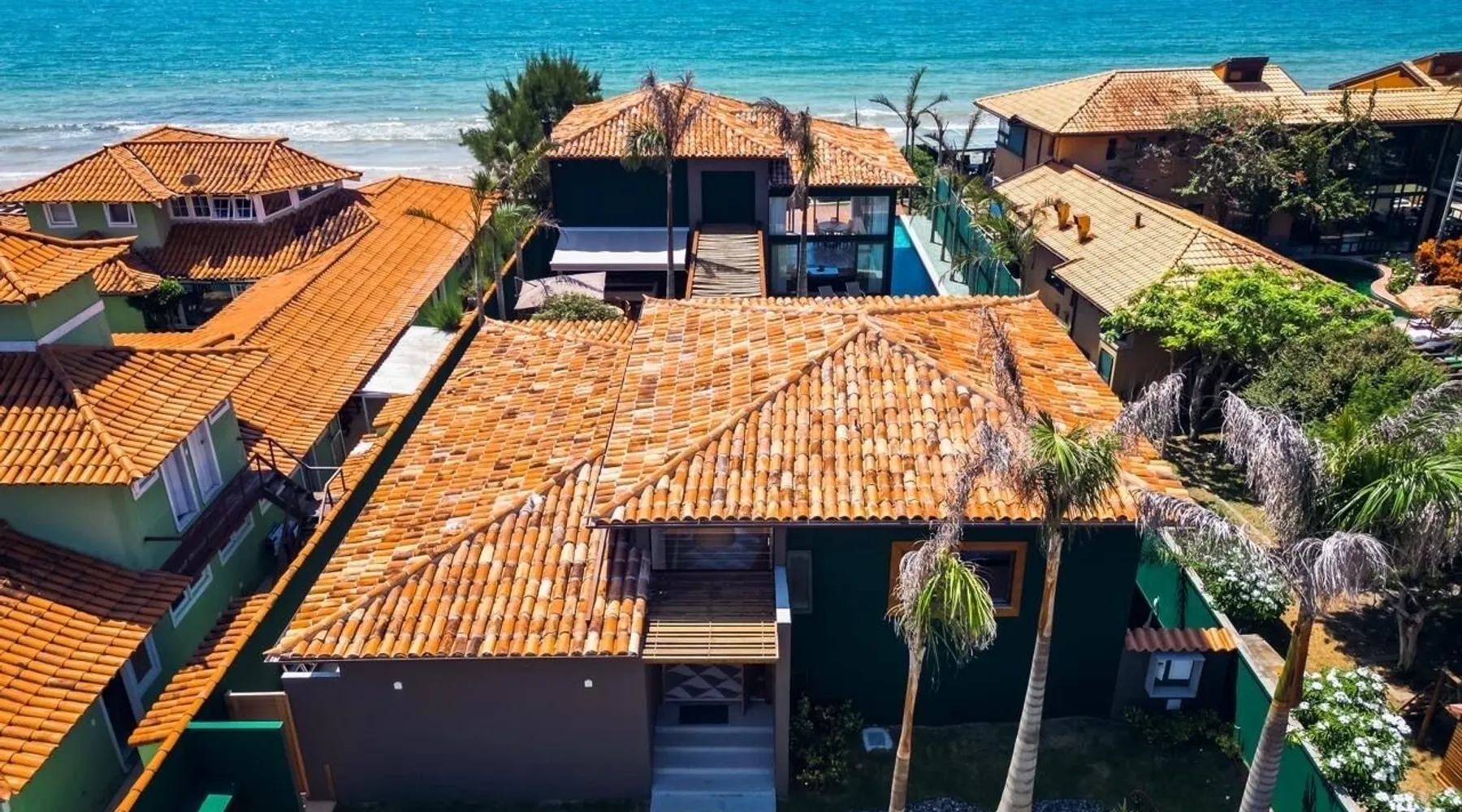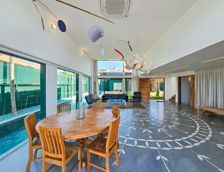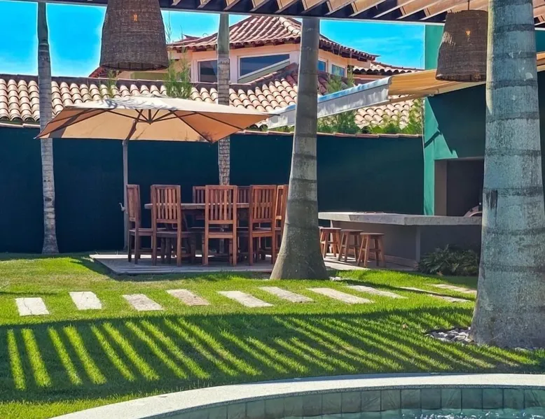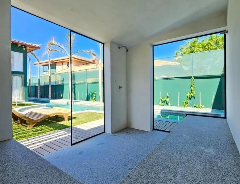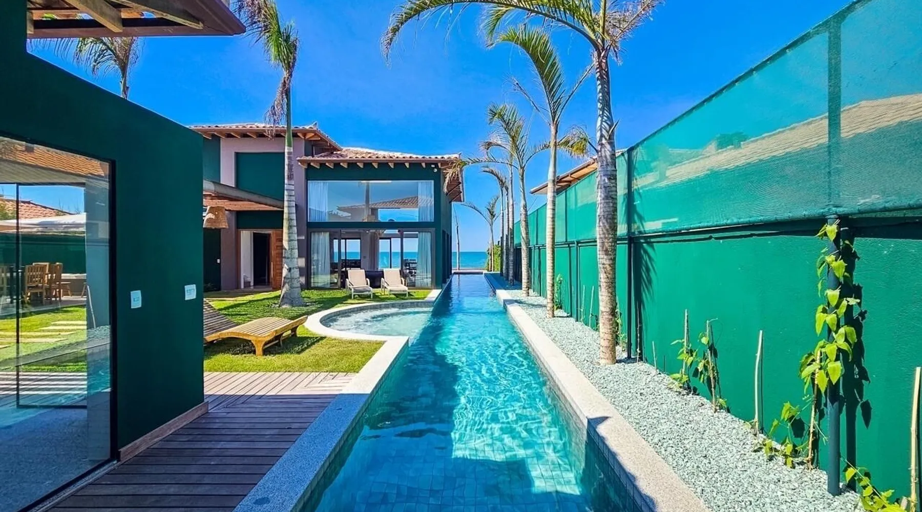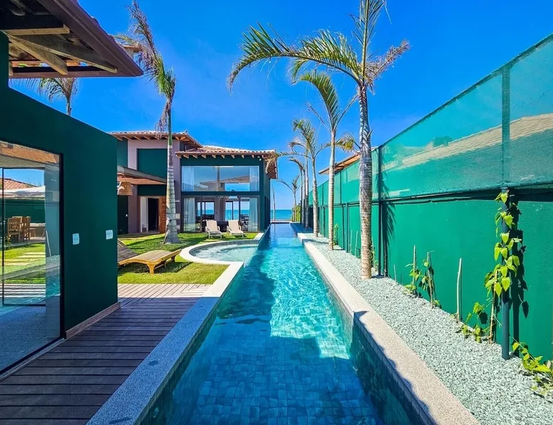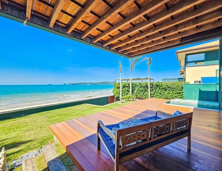 Condomínio Camurupim, praia Rasa. Casa pé na areia da praia de frente para o mar. Clara e arejada. 5 suítes e sala tv de 75”. Linda piscina, com raia de 25m. Sauna, Churrasqueira, mesa grande na área da churrasqueira. Área social interna para a piscina e churrasqueira e externa de frente para o mar. Sala de TV. Projeto Hélio Pellegrino 2023