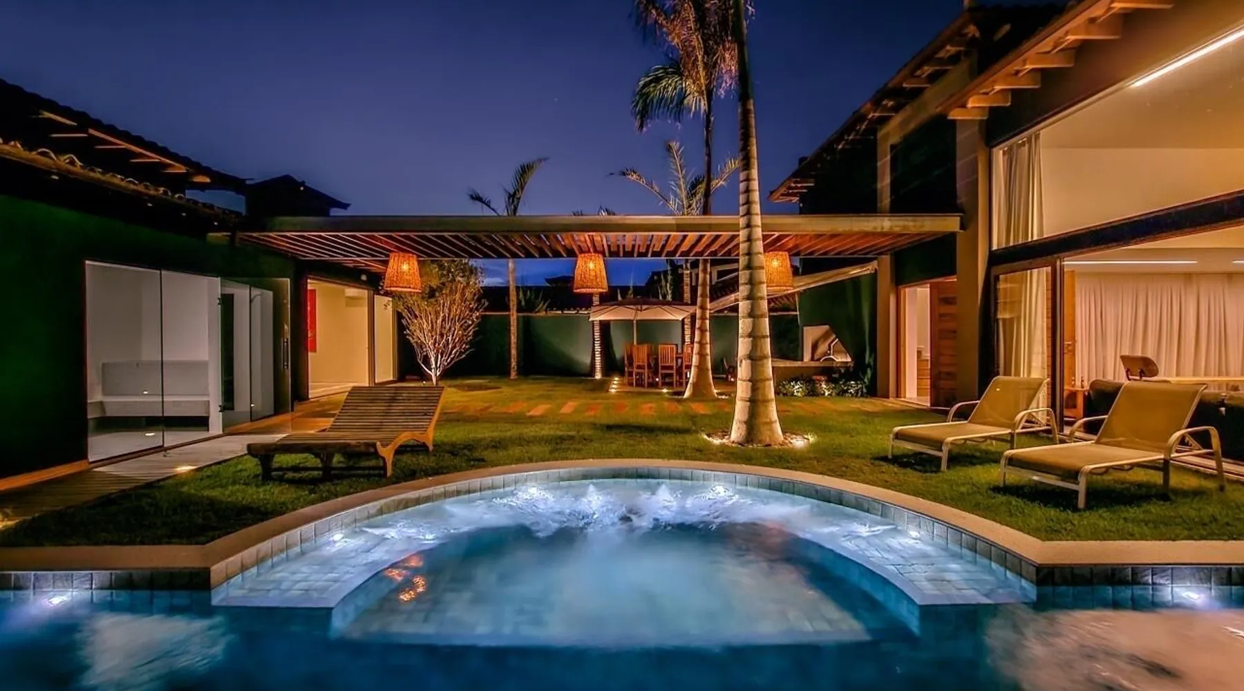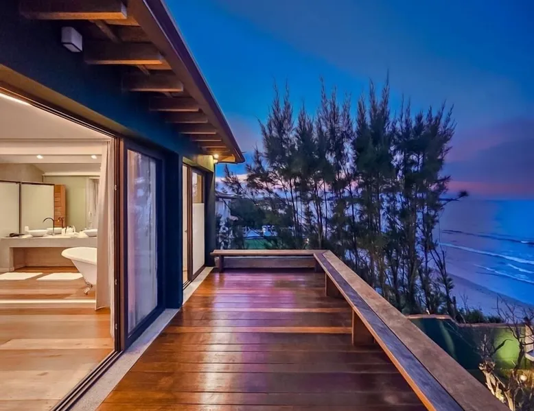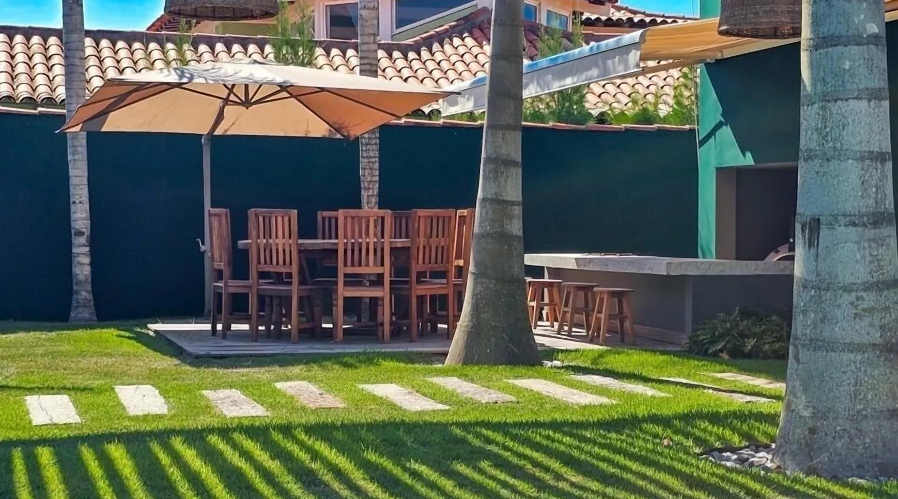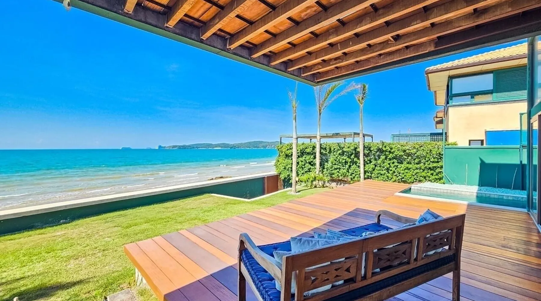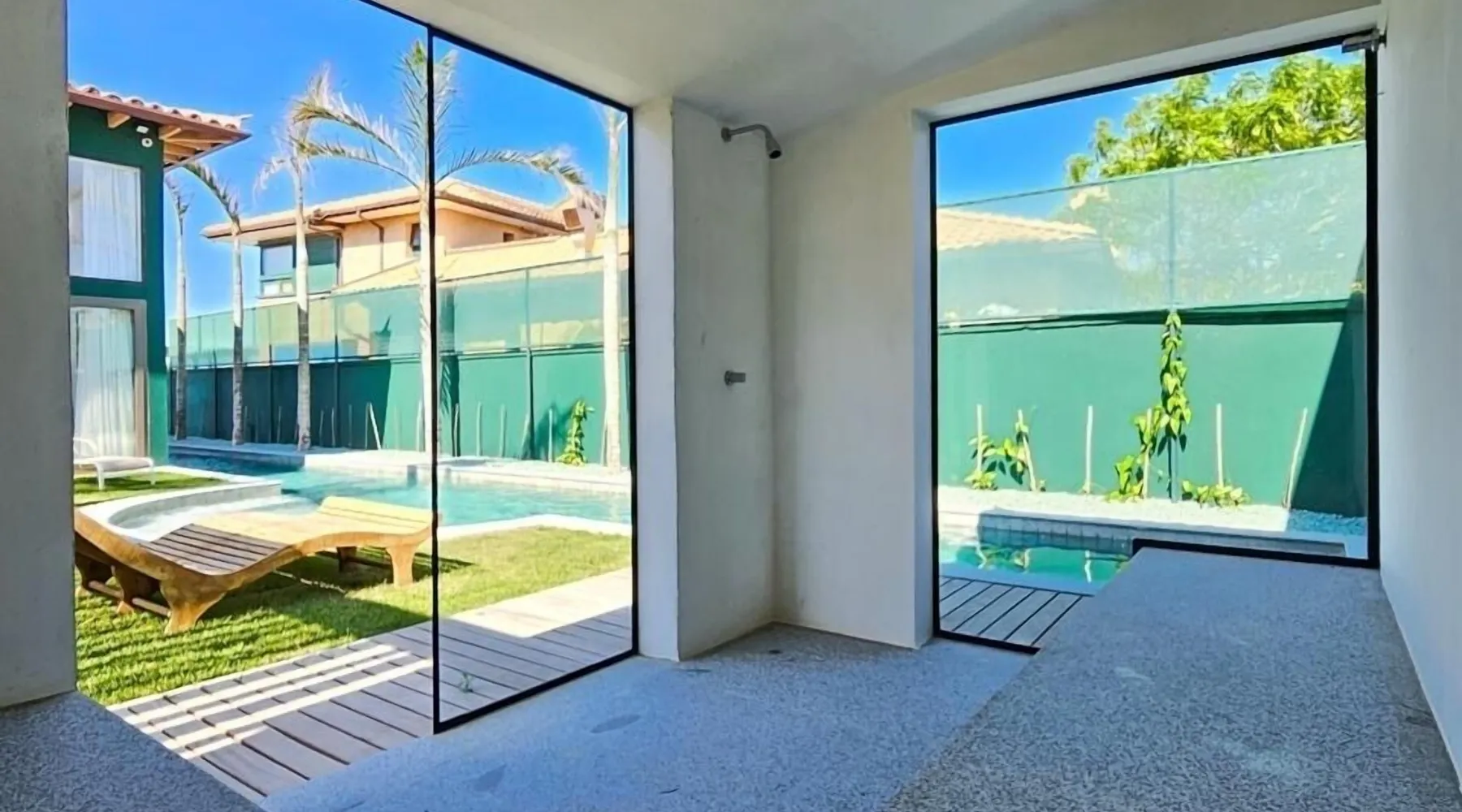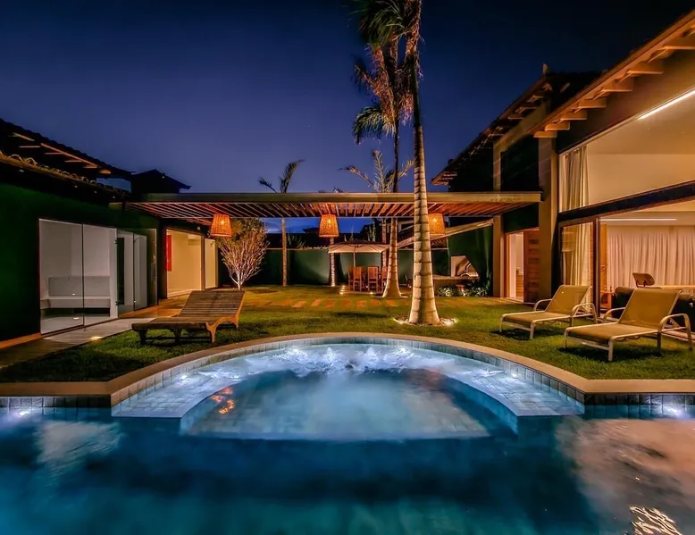 Condomínio Camurupim, praia Rasa. Casa pé na areia da praia de frente para o mar. Clara e arejada. 5 suítes e sala tv de 75”. Linda piscina, com raia de 25m. Sauna, Churrasqueira, mesa grande na área da churrasqueira. Área social interna para a piscina e churrasqueira e externa de frente para o mar. Sala de TV. Projeto Hélio Pellegrino 2023