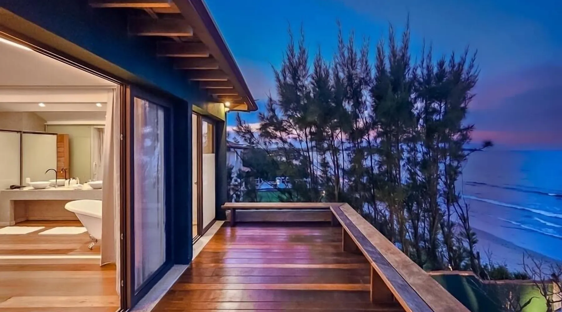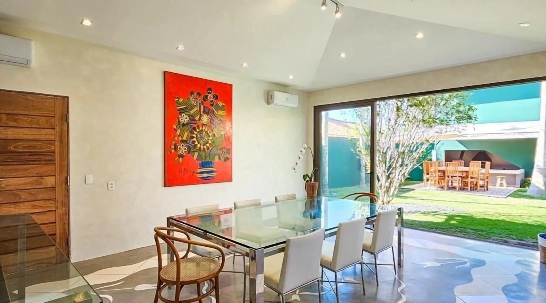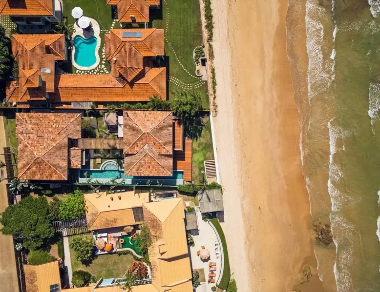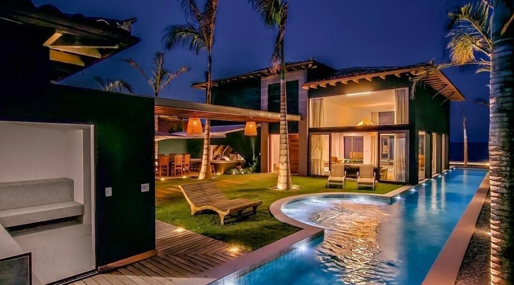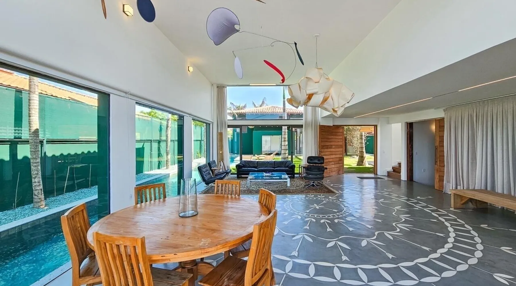 Condomínio Camurupim, praia Rasa. Casa pé na areia da praia de frente para o mar. Clara e arejada. 5 suítes e sala tv de 75”. Linda piscina, com raia de 25m. Sauna, Churrasqueira, mesa grande na área da churrasqueira. Área social interna para a piscina e churrasqueira e externa de frente para o mar. Sala de TV. Projeto Hélio Pellegrino 2023