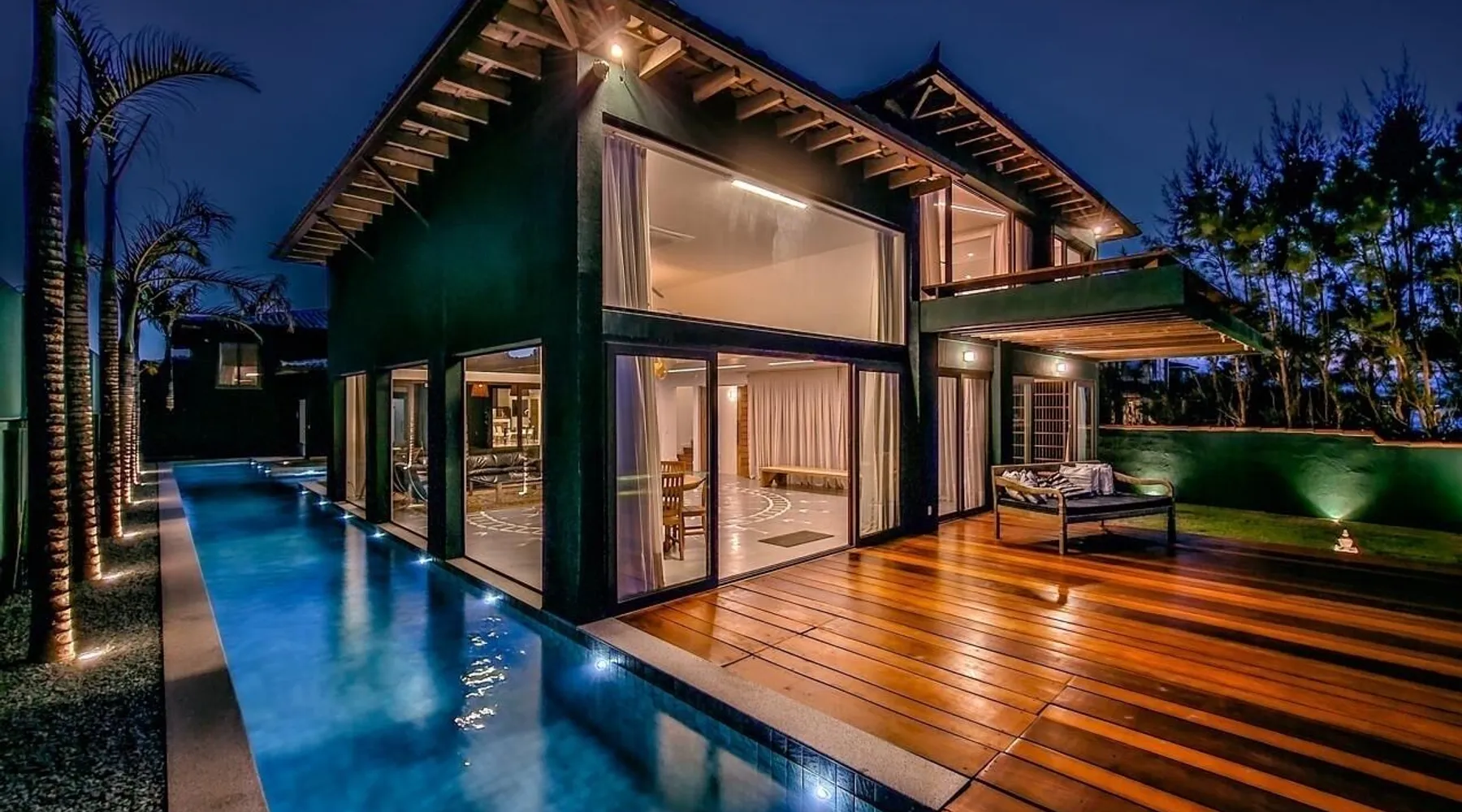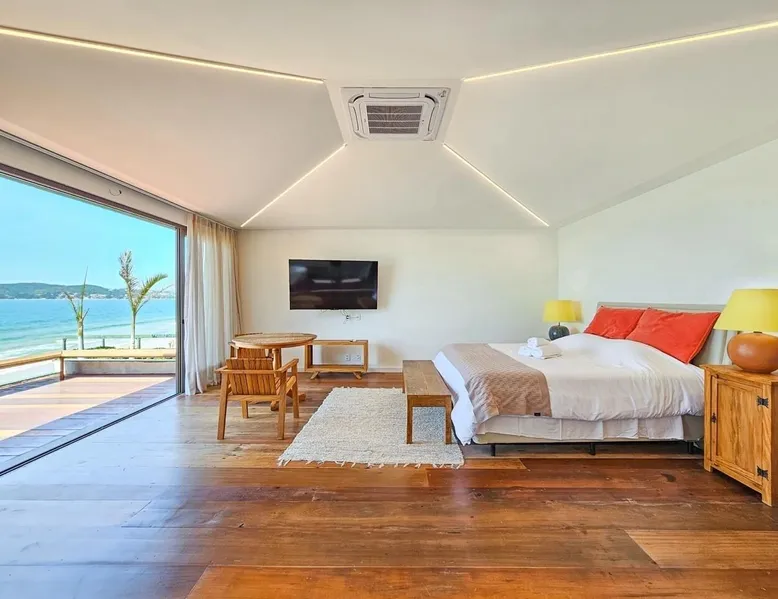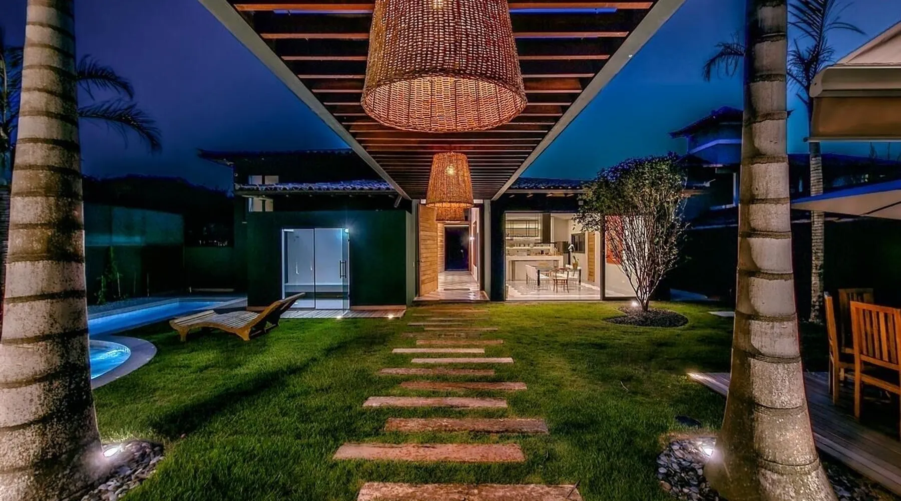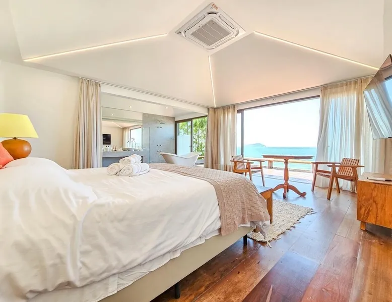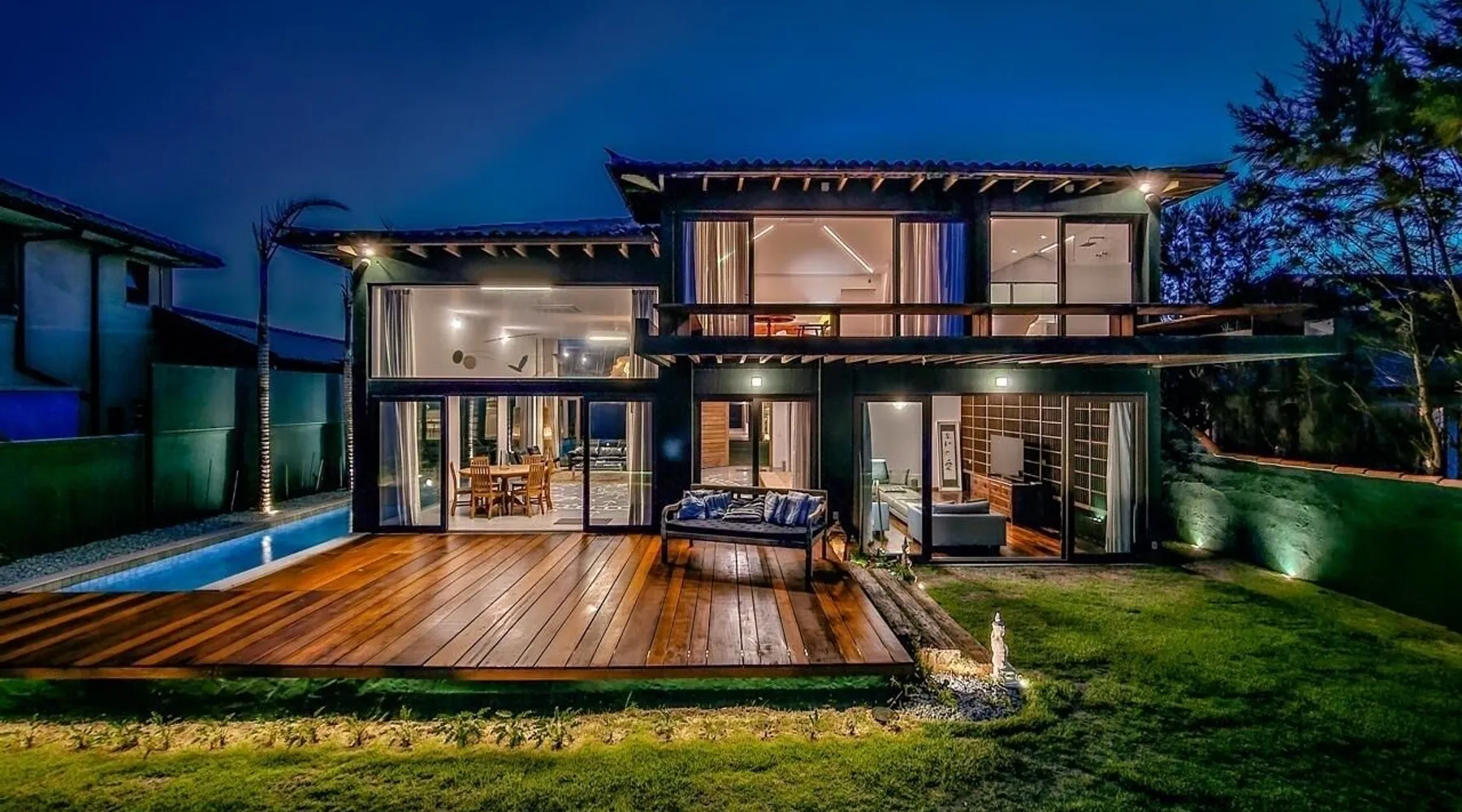 Condomínio Camurupim, praia Rasa. Casa pé na areia da praia de frente para o mar. Clara e arejada. 5 suítes e sala tv de 75”. Linda piscina, com raia de 25m. Sauna, Churrasqueira, mesa grande na área da churrasqueira. Área social interna para a piscina e churrasqueira e externa de frente para o mar. Sala de TV. Projeto Hélio Pellegrino 2023