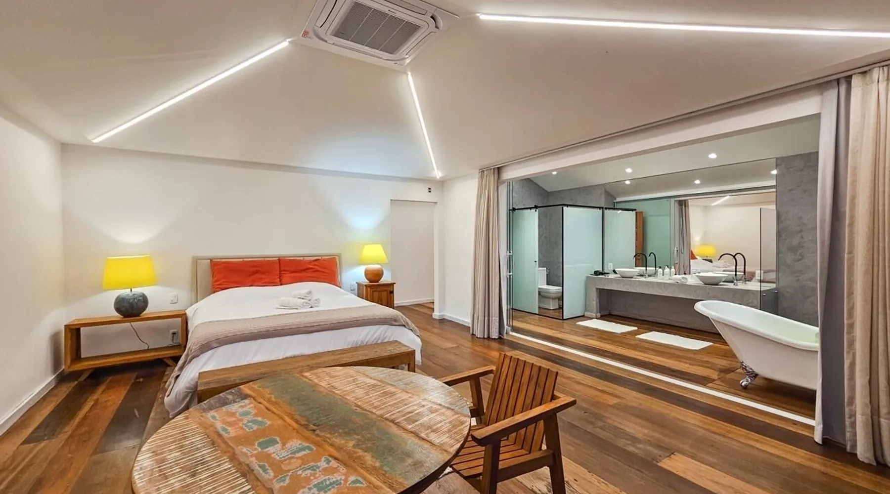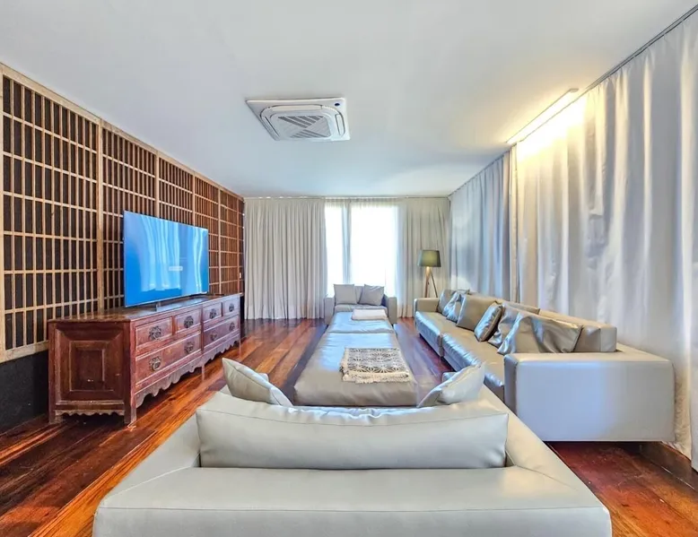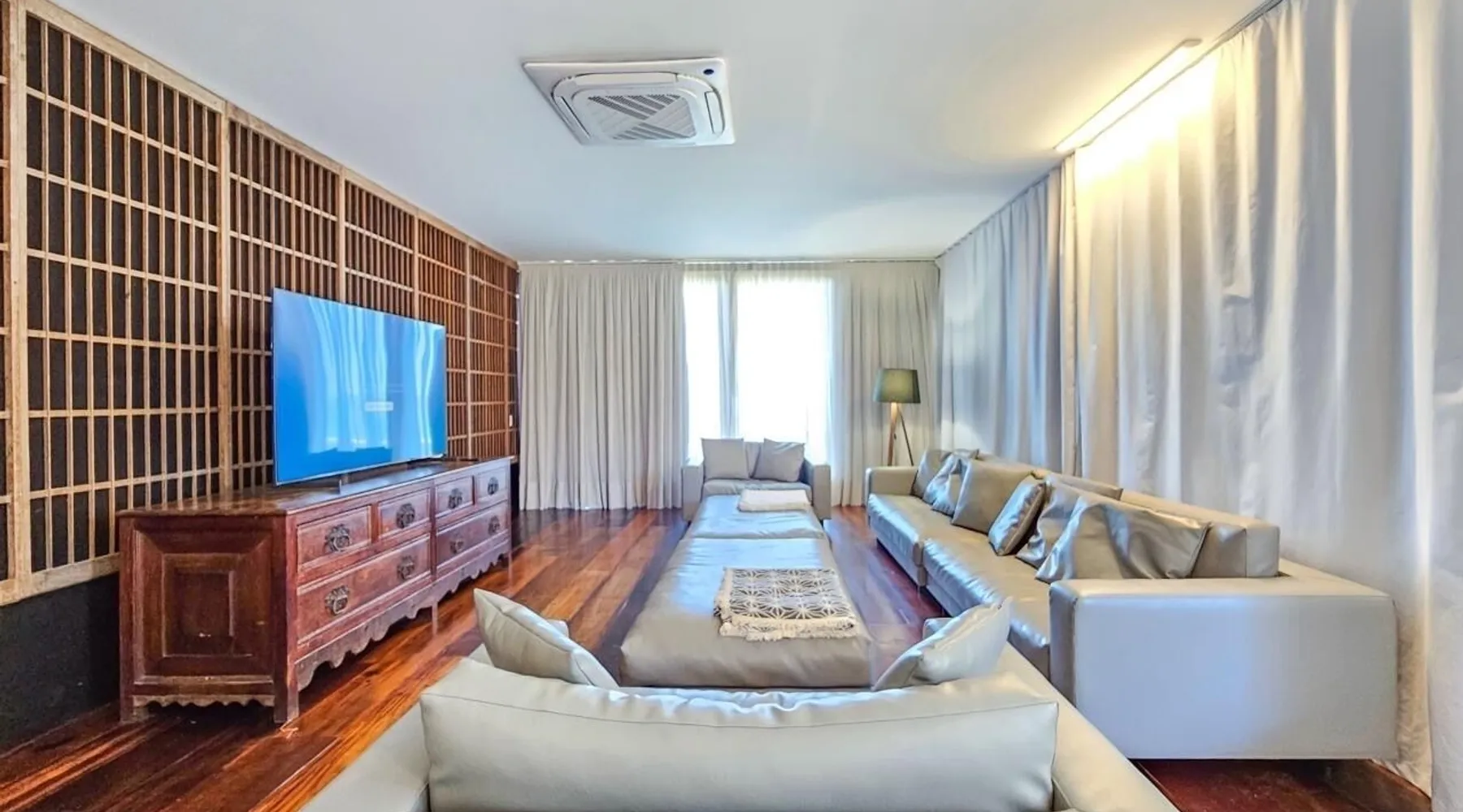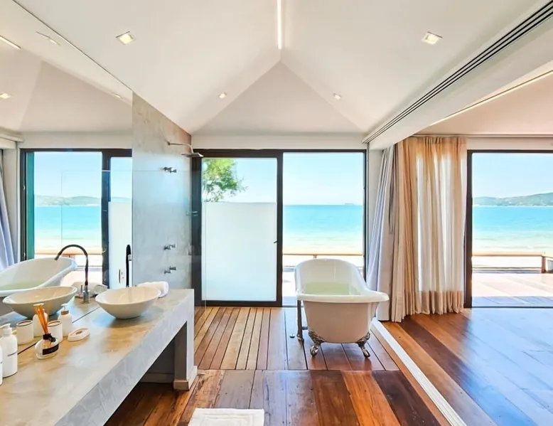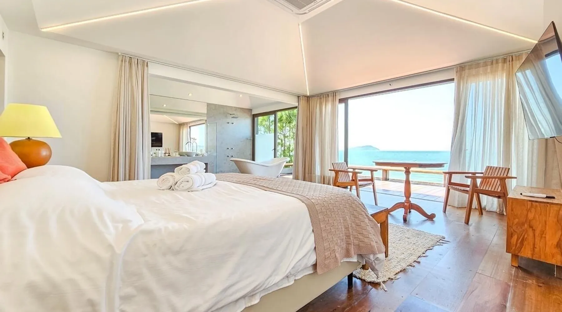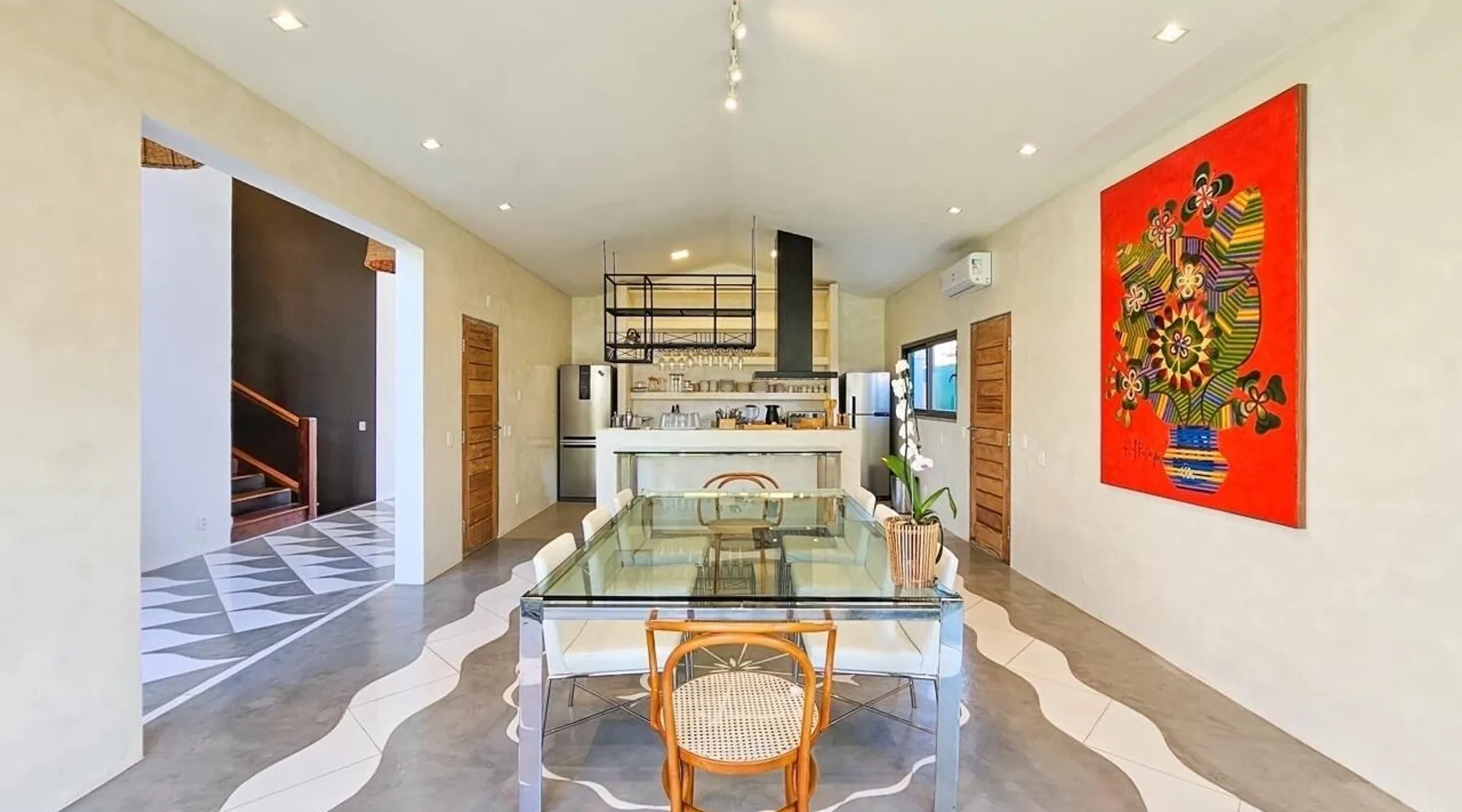 Condomínio Camurupim, praia Rasa. Casa pé na areia da praia de frente para o mar. Clara e arejada. 5 suítes e sala tv de 75”. Linda piscina, com raia de 25m. Sauna, Churrasqueira, mesa grande na área da churrasqueira. Área social interna para a piscina e churrasqueira e externa de frente para o mar. Sala de TV. Projeto Hélio Pellegrino 2023