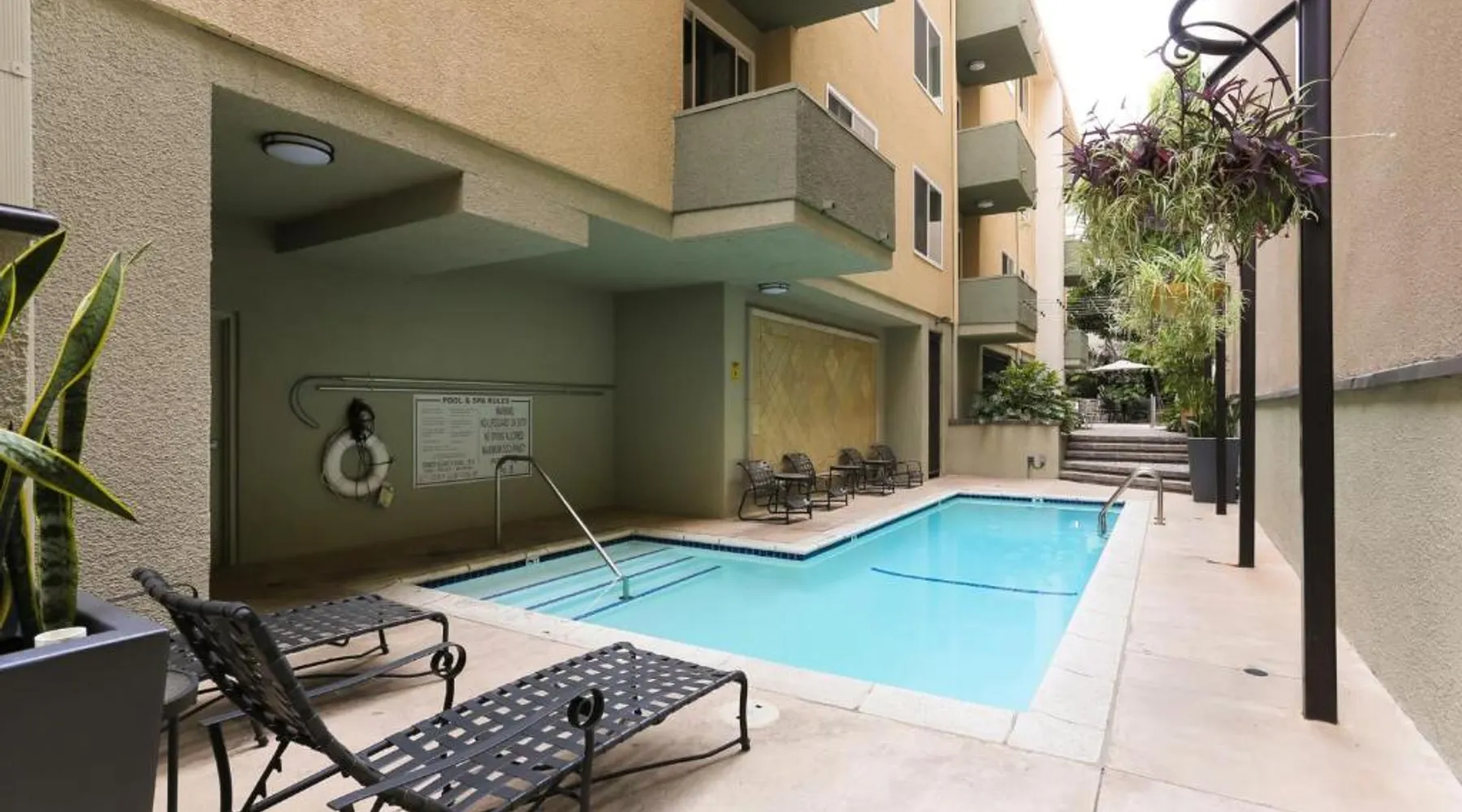 Spacious Accommodations: Beverly Hills Gem 1 BR Apt with Parking 218 in Los Angeles offers a spacious aparthotel with one bedroom, one bathroom, and a living room. The property features a terrace and a year-round outdoor swimming pool. Modern Amenities: Guests enjoy free WiFi, air-conditioning, a balcony, and a fully equipped kitchen with a stovetop, microwave, and kitchenware. Additional amenities include a hot tub, family rooms, and free on-site private parking. Prime Location: Located 11 mi from Los Angeles International Airport, the aparthotel is close to attractions such as Petersen Automotive Museum (1.9 mi) and Los Angeles County Museum Of Art (1.9 mi). Other nearby points include Dolby Theater (4.3 mi) and Hollywood Sign (8.1 mi). This spacious apartment features 1 living room, 1 separate bedroom and 1 bathroom with a bath and free toiletries. Guests can make meals in the fully equipped kitchen that has a stovetop, kitchenware and a microwave. Boasting a balcony, this apartment also features air conditioning, a dining area and a flat-screen TV. The unit has 2 beds.