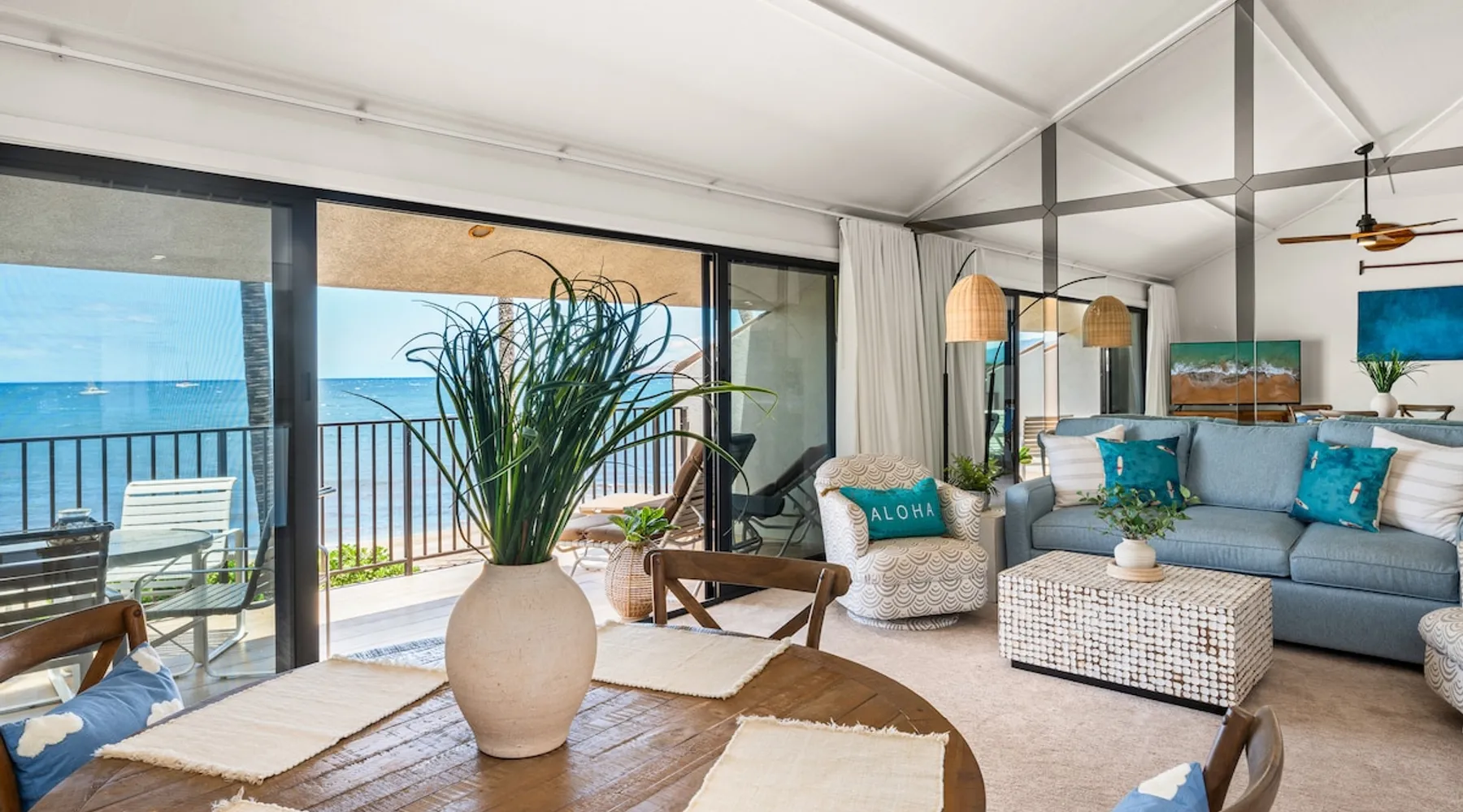 Maalaea Surf A6 Remodeled Beachfront 2Bedroom Getaway on Maalaea Bay Just Steps to the Soft Sand of Sugar Beach. Enjoy Year Round Beach Walks and Ocean Activities The space FREE daily activities included with your stay value up to $554! Complimentary admission, every day of your stay: Whale Watching (seasonal), Sunset Dinner Cruise, Molokini Snorkel Trip, Alpaca Farm Tour, Pineapple Farm Tour, and Tea Farm Tour. (S1) Escape to paradise in our beautifully remodeled beachfront 2bedroom condo at Maalaea Surf Resort, nestled on the shore of Kihei, Maui, Hawaii. Boasting 2bedrooms and 2bathrooms, this beach remodeled getaway offers unparalleled comfort and relaxation. Situated on the second story, our resort condo treats you to breathtaking views of Maalaea Bay from its direct beachfront location on stunning Sugar Beach. Just imagine waking up to the soothing sound of waves crashing against the shore and enjoying your morning coffee with a mesmerizing ocean backdrop, or taking the beach path to the sand for a morning walk. Step inside and discover a fully equipped kitchen ready to cater to your culinary adventures. Whip up delicious meals using the modern appliances provided and gather around the dining table for memorable family dinners. After a day of exploring all that Maui has to offer, unwind on the spacious furnished lanai complete with two inviting chaise lounge chairs and dining table seating. Whether you're soaking up the sun, enjoying al fresco dining, or simply basking in the gentle ocean breeze, this outdoor haven is the perfect spot to relax and rejuvenate. Experience the ultimate Hawaiian getaway at Maalaea Surf Resort A6. Book your stay now and start creating unforgettable memories in paradise! Notice: The small pool will be closed for maintenance from November 9–25, 2025 but the large pool will remain open for your enjoyment. Condo Highlights: -2 Bedroom, 2 Bathroom, Sleeps 6 guests -Central air conditioning throughout the condo -Furnished 2nd Story Lanai, with 2 Chaise lounge chairs and dining table seating for 4 -King bed in the 2nd story bedroom -Two twin beds in the bedroom downstairs (May 2024) (can convert to king; must notify hosts prior to arrival) -Sleeper-sofa in living room (May 2024) -Fully equipped kitchen with stainless appliances -Ceiling fans throughout -Smart Streaming TVs in the living room and both bedrooms -Indoor dining table for 4 -2 full bathrooms with tiled walk-in showers -In-unit washer and dryer for guests' use STAIRS: Must climb stairs to access condo. Must climb stairs to access upstairs bedroom with King bed and bathroom. The Maalaea Surf Resort is a low density condominium complex located directly on Sugar Beach in North Kihei. Maalaea Surf features convenient beach access, amazing views of Maalaea Bay, and lovely tropical landscaped grounds. The resort is not only located just minutes from the numerous restaurants, shops, and activities that the south shore of Maui has to offer, but also only minutes away from the championship golf courses of Wailea and Makena. Resort Highlights: • 5 Acres of lush tropical oceanfront grounds • 8 Low Density buildings on site • Walking path to the beach • 2 Pools • Recently Resurfaced Tennis Court • 2 New Pickleball Court • 2 Shuffleboard Courts • 2 Gas grill stations • On-site parking included. Register vehicle on-site. • Many nearby options for restaurants, shops, transportation, and entertainment No Mail Allowed: We are unable to receive USPS mail, including letters and packages at this rental. For medical-related items, please contact our Reservations Team for assistance. Minimum age of primary renter: 25 We provide the following in every unit: -First Aid Kit -High Speed Internet -Linens and towels -Iron and ironing board -Hair dryer -Beach towels, Beach chairs, and Hard sided cooler -Starter Kit: Starter supply of shampoo, conditioner, body wash, lotion, hand soap, dish soap, laundry detergent, dishwasher tabs, toilet paper, paper towels, trash bags *We don’t provide beach umbrellas, toys, or gears, such as snorkeling, due to safety, health, and hygiene risks. BEACHES & CRITTERS: The beach size in Hawaii varies month to month due to weather, heavy surf, strong currents, and tides. Due to Maui’s rural setting, you may experience the occasional rooster, as well as harmless geckos. Geckos are friendly, eat insects, and are considered good luck in Hawaii. Please don’t kill them. Although the HOA schedules regular professional pest control services, pests such as ants, roaches and rodents simply cannot be completely controlled in the tropics. Maui is in a tropical climate. If our guest spot more than the normal expected pests, we always make our best efforts to contact and work with the HOA to minimize your interactions with these pests. Any contact with such pests within or outside the unit does not constitute a breach of this Agreement or give Guest any right to any refund or rental adjustment. **We make no guarantee that properties adjacent to the Unit will be free from disturbances, including but not limited to noise or inconvenience from construction, traffic or other guests or neighbors. Any such disturbance shall not constitute a breach of this Agreement or give Guest any right to any refund or rental adjustment. By booking your stay with us, you accept that Host is not liable for any inconveniences arising from any temporary defect or stoppage in supply of water, electricity, air conditioning or plumbing that is beyond their control. Host is not liable for any loss or damage to Tenants’ personal property caused by weather conditions, natural disasters, or other events beyond their control. Tenants accept that the cable and internet service at the Rental can be sporadic and unreliable at times, and Tenant shall not be entitled to any refund of the rental fee in the event either of these services are unavailable or not operating properly during Tenants’ stay. Registration Det