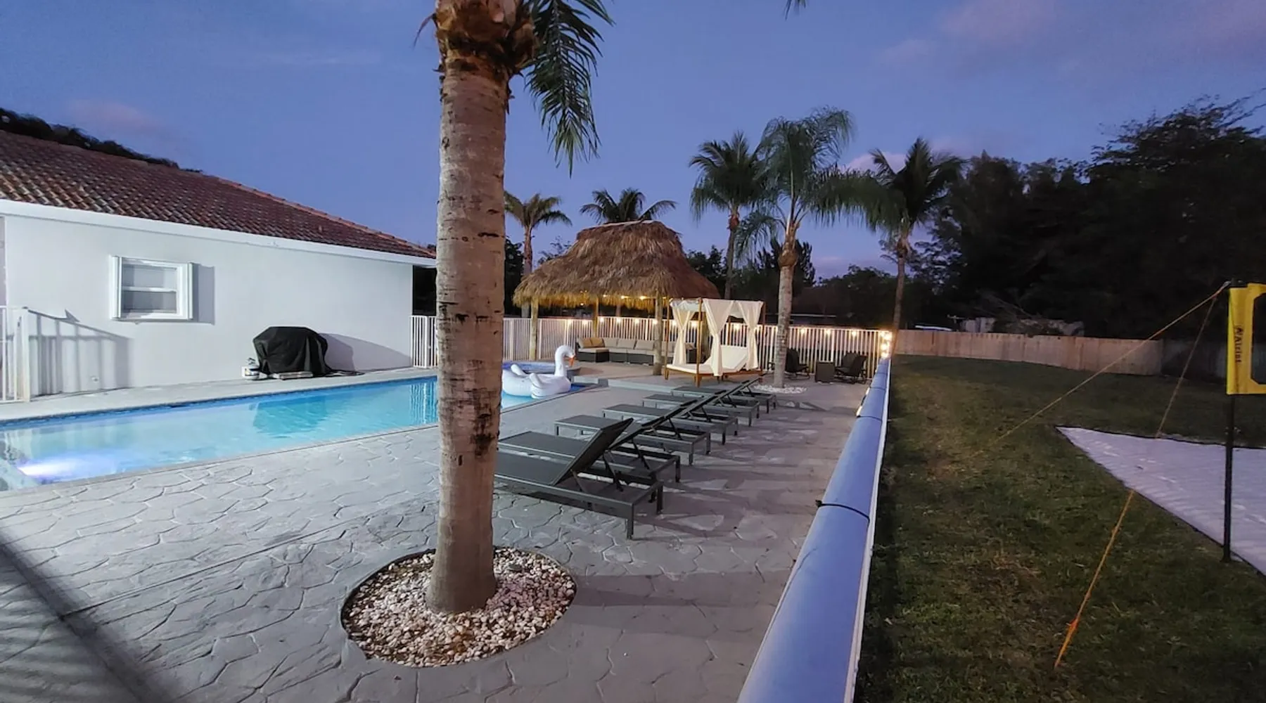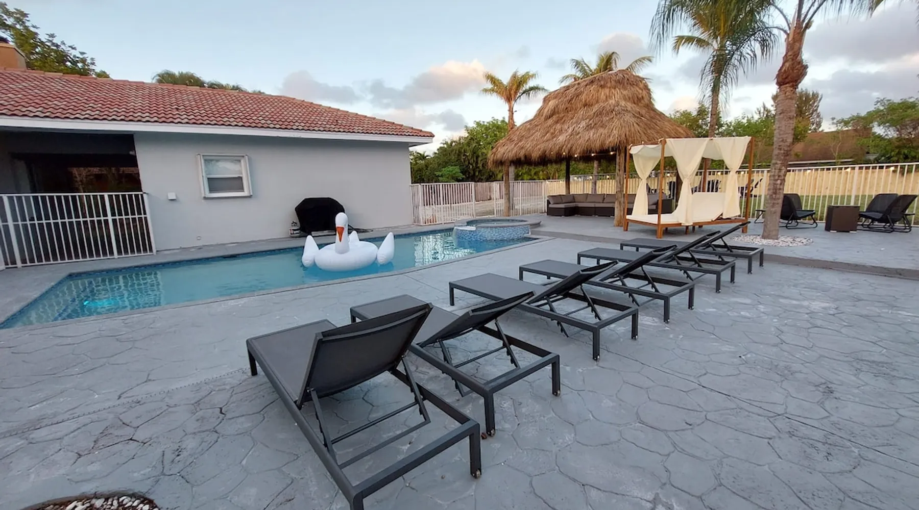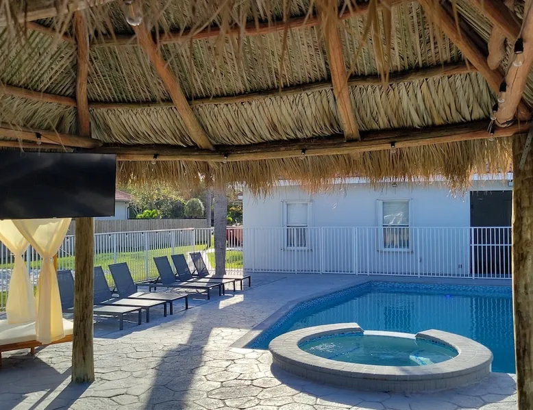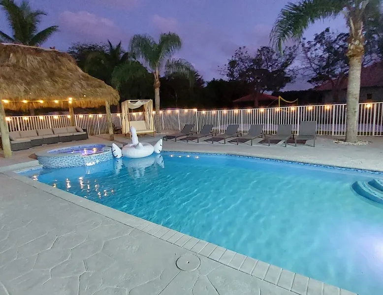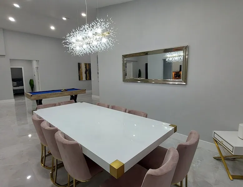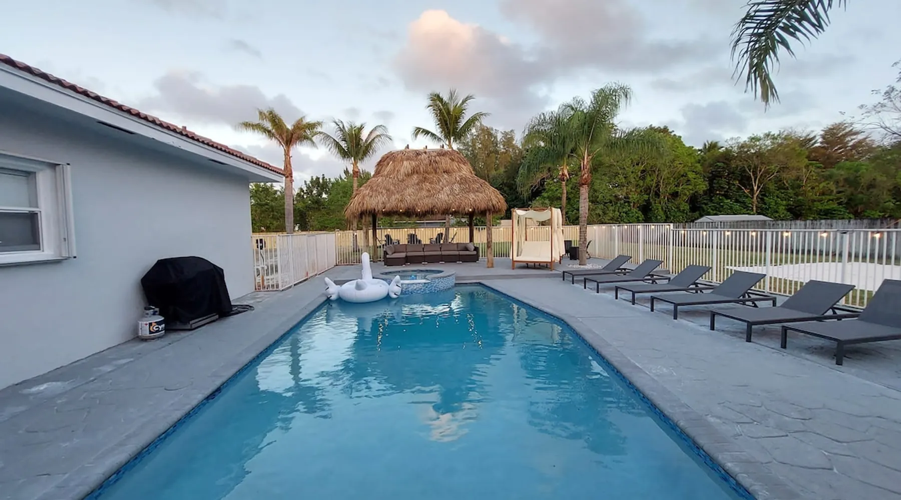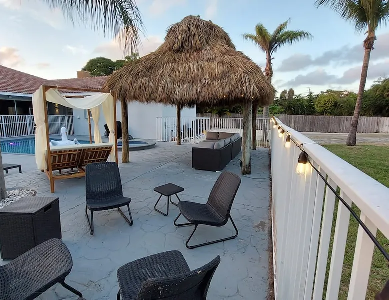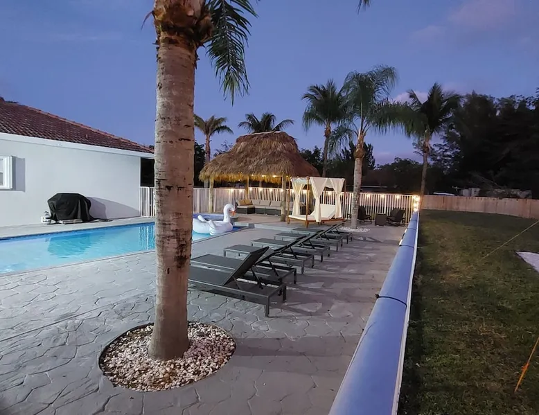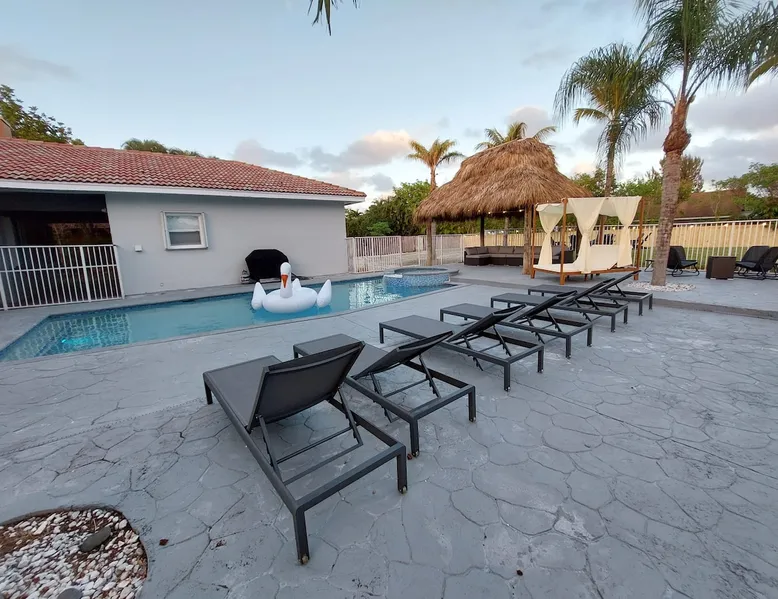 🏡 One-of-a-kind 7000 SQFT villa compound just 1 mile from Boca Raton and 10 minutes to the beach. 🛏️ Features 9 bedrooms, 5 bathrooms, 13 beds, 2 living rooms, and a massive master suite. 🎬 Enjoy a private movie theatre, beach volleyball, and South Florida’s largest 9-hole putting green. 🌴 Lounge in the Tiki Hut with TV, gather by the fire pit, and dive into the brand-new heated pool and Jacuzzi. 🍽️ Includes 2 full kitchens and a separate in-law wing with its own living space. The space Brand New Modern Pool with a Massive Deck and Tanning Ledge, Jacuzzi, Premium Towels, and Linen. Both kitchens are stocked with everything you need, a Full house generator, BBQ Grill, and Outdoor Dining Area. Loungers in the pool and outside the Pool Huge Backyard for enjoying family time together. 5 minute walk to Boca Raton 3 Minute walk to Chabad of Coconut Creek The space HEATED POOL IS INCLUDED IN THE PRICE! The luxurious home is professionally designed by the prominent ShuChai Interior Design Firm to provide a comfortable getaway to all visitors for a perfect stay. Its contemporary setting and outstanding facilities will offer the levels of relaxation and convenience you are looking for in a vacation home. The inviting indoors offers a mix of modern amenities and beautiful furnishing enriched by an abundance of natural light accenting the elegant floors and tastefully picked décor. Every inch of space is well-utilized, which is best visible from the fully equipped kitchen that opens to the entertaining living room and the inviting dining area. Nine highly comfortable bedrooms will provide all the relaxation you need after a long day of South Florida adventures. But wait! The best is yet to come. The fabulous backyard with its large swimming pool, and outdoor dining area under the outdoor canopy and Tiki Hut offers a place where you can soak up the sun, relax, and have hours of fun! ★ LIVING ROOM ★ The living room is perfect for enjoying fun and memorable moments after an eventful day. Find your place on the comfy sofa, grab some snacks and drinks, and enjoy watching your favorite movie. ✔ Comfortable Double Sofa with Pillows ✔ Smart TV with Netflix, and all other smart Apps ✔ Chic Sofa Chairs ✔ Stylish Coffee Tables ✔ Billiard Table It’s not all fun and relaxation in the living room! We have prepared a private workspace where you can set up your laptop and attend an important meeting or a remote learning session. ✔ Office Desk with a Lamp ★ KITCHEN & DINING ★ Want to feel like a MasterChef? Come to the fully equipped kitchen and use its many state-of-the-art cooking appliances, spacious quartz countertops, and ample cabinetry to create tasty homemade meals worthy of the most praised restaurants. ✔ Microwave ✔ Stove ✔ Oven ✔ Refrigerator/Freezer ✔ Ice Maker ✔ Dishwasher ✔ Keurig Coffee Maker ✔ Hot Water Kettle ✔ Blender ✔ Toaster ✔ Glasses ✔ Silverware ✔ Pots & Pans Have a few drinks on the kitchen island while the food is getting ready. Once it's done, serve it on the inviting dining table and enjoy gourmet meals with your friends and family. ✔ Dining Table with Seating for 8 ✔ Kitchen Island with Seating for 5 ★ SLEEPING ARRANGEMENTS - 9 BEDROOMS ★ Retreat to these comfortable bedrooms, designed and furnished to provide you with all the rest needed after a day of adventuring throughout Florida. ♛ Bedroom 1: King-Size Bed ♛ Bedroom 2: King-Size Bed ♛ Bedroom 3: King-Size Bed ♛ Bedroom 4: King-Size Bed ♛ Bedroom 5: King-Size Bed ♛ Bedroom 6: King-Size Bed ♛ Bedroom 7: 2 Queen-Size Bed ♛ Bedroom 8: 2 Queen-Size Bed ♛ Bedroom 9: 1 Bunkbed and pull-out room All bedrooms offer a similar set of amenities: ✔ Premium Pillows, Linens, and Sheets ✔ Smart TVs ✔ Closets with Hangers and Shelves ✔ Dressers with Spacious Drawers ✔ Full-Size Mirrors ✔ Night Stands with Reading Lamps with enabled USB ports for easy charging access ★ BATHROOMS ★ 5 Full bathrooms are stocked with essential toiletries and fresh towels for maximum comfort and convenience. ✔ Spacious Soaking Bathtub ✔ Walk-In Shower ✔ Mirror ✔ Toilet ✔ Towels ✔ Hair Dryer ✔ Essential Toiletries ★ BACKYARD ★ The spacious pool backyard offers a fairy tale outdoor setting. Here you will be able to soak up the sun, catch a breath of fresh air, and unwind in complete privacy under the canopy, surrounded by comfortable amenities for both children and adults. ✔ Swimming Pool with Sun Lounges (Pool Heating included in price) Pool Safety Rules (Strictly Enforced): 👉 The pool safety fence will remain up. 👉 Children under 18 must be supervised by an adult at all times when in or around the pool. 👉 There is no lifeguard on duty – guests use the pool entirely at their own risk. ✔ Jacuzzi ✔ Outdoor Tiki Hut with TV ✔ Lounge Seating Area ✔ Ping Pong Table ✔ Fire Pit ✔ Volleyball ✔ Mini-Golf ✔ Outdoor Dining Area Look no further than our luxurious home for your memorable Pompano Beach, FL visit. We look forward to you experiencing its complete comfort and coziness. 🚗 Important Parking Rule: The property allows a maximum of 4 cars only on-site. Additional vehicles must be parked off-site in designated public parking areas. This rule is strictly enforced, and by booking, you agree to comply. Guest access The home is exclusively yours, without interruption for the duration of your stay, so relax, unwind, and make yourself at home. Other than the already mentioned amenities, our home also comes with: ✔ High-Speed Wi-Fi ✔ Air Conditioning ✔ Heating ✔ Washer/Dryer ✔ Iron/Board ✔ Free Private Parking Other things to note ★ COVID-19 SANITIZATION ★ The Heath, safety, and well-being of our guests are of utmost importance. For this reason, we use a thorough 50-point cleaning process after each check-out. ★ NO SMOKING INSIDE ★ Please refrain from smoking inside the home! It is prohibited. Any smoking e