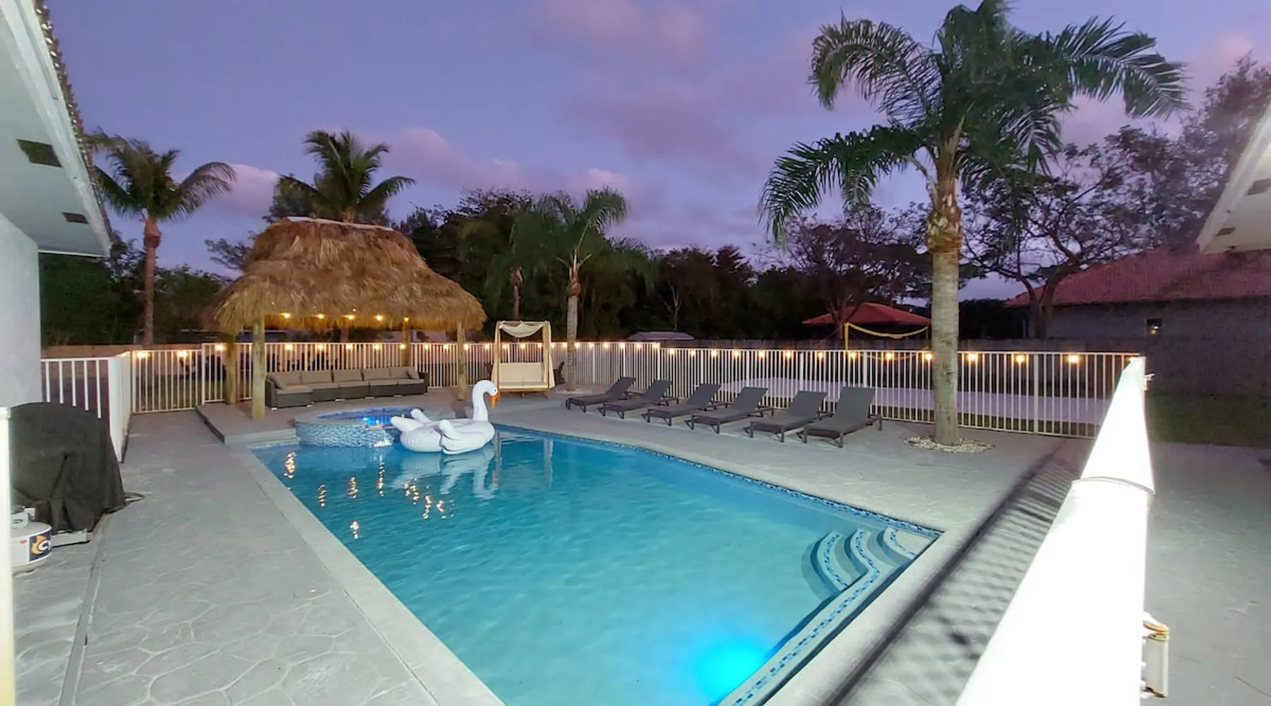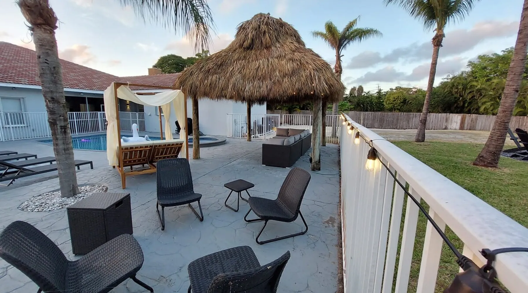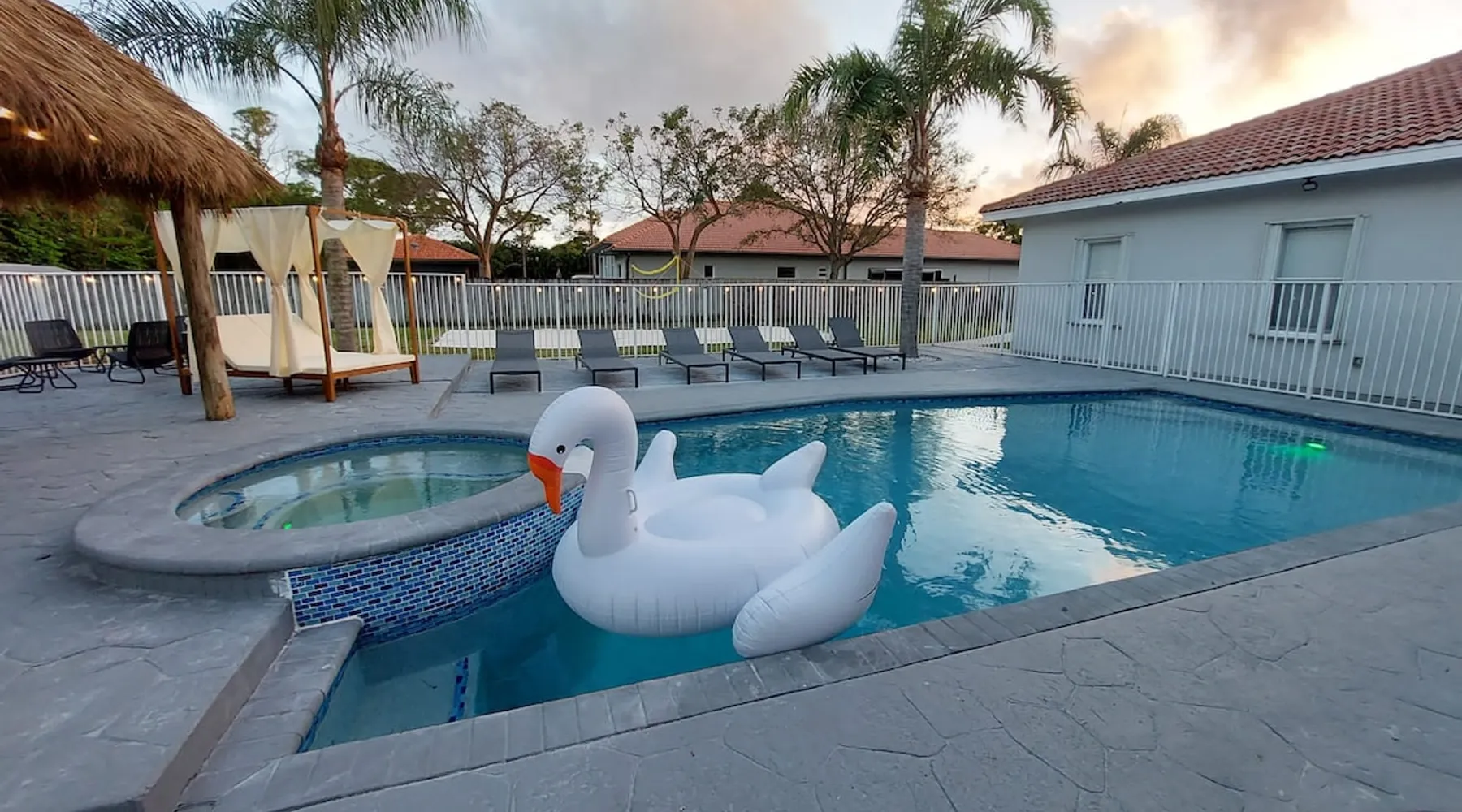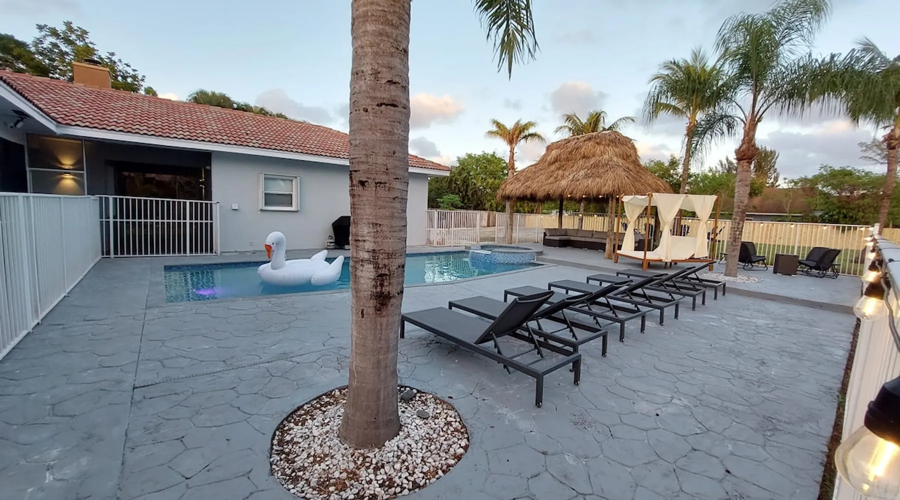 🏡 One-of-a-kind 7000 SQFT villa compound just 1 mile from Boca Raton and 10 minutes to the beach. 🛏️ Features 9 bedrooms, 5 bathrooms, 13 beds, 2 living rooms, and a massive master suite. 🎬 Enjoy a private movie theatre, beach volleyball, and South Florida’s largest 9-hole putting green. 🌴 Lounge in the Tiki Hut with TV, gather by the fire pit, and dive into the brand-new heated pool and Jacuzzi. 🍽️ Includes 2 full kitchens and a separate in-law wing with its own living space. The space Brand New Modern Pool with a Massive Deck and Tanning Ledge, Jacuzzi, Premium Towels, and Linen. Both kitchens are stocked with everything you need, a Full house generator, BBQ Grill, and Outdoor Dining Area. Loungers in the pool and outside the Pool Huge Backyard for enjoying family time together. 5 minute walk to Boca Raton 3 Minute walk to Chabad of Coconut Creek The space HEATED POOL IS INCLUDED IN THE PRICE! The luxurious home is professionally designed by the prominent ShuChai Interior Design Firm to provide a comfortable getaway to all visitors for a perfect stay. Its contemporary setting and outstanding facilities will offer the levels of relaxation and convenience you are looking for in a vacation home. The inviting indoors offers a mix of modern amenities and beautiful furnishing enriched by an abundance of natural light accenting the elegant floors and tastefully picked décor. Every inch of space is well-utilized, which is best visible from the fully equipped kitchen that opens to the entertaining living room and the inviting dining area. Nine highly comfortable bedrooms will provide all the relaxation you need after a long day of South Florida adventures. But wait! The best is yet to come. The fabulous backyard with its large swimming pool, and outdoor dining area under the outdoor canopy and Tiki Hut offers a place where you can soak up the sun, relax, and have hours of fun! ★ LIVING ROOM ★ The living room is perfect for enjoying fun and memorable moments after an eventful day. Find your place on the comfy sofa, grab some snacks and drinks, and enjoy watching your favorite movie. ✔ Comfortable Double Sofa with Pillows ✔ Smart TV with Netflix, and all other smart Apps ✔ Chic Sofa Chairs ✔ Stylish Coffee Tables ✔ Billiard Table It’s not all fun and relaxation in the living room! We have prepared a private workspace where you can set up your laptop and attend an important meeting or a remote learning session. ✔ Office Desk with a Lamp ★ KITCHEN & DINING ★ Want to feel like a MasterChef? Come to the fully equipped kitchen and use its many state-of-the-art cooking appliances, spacious quartz countertops, and ample cabinetry to create tasty homemade meals worthy of the most praised restaurants. ✔ Microwave ✔ Stove ✔ Oven ✔ Refrigerator/Freezer ✔ Ice Maker ✔ Dishwasher ✔ Keurig Coffee Maker ✔ Hot Water Kettle ✔ Blender ✔ Toaster ✔ Glasses ✔ Silverware ✔ Pots & Pans Have a few drinks on the kitchen island while the food is getting ready. Once it's done, serve it on the inviting dining table and enjoy gourmet meals with your friends and family. ✔ Dining Table with Seating for 8 ✔ Kitchen Island with Seating for 5 ★ SLEEPING ARRANGEMENTS - 9 BEDROOMS ★ Retreat to these comfortable bedrooms, designed and furnished to provide you with all the rest needed after a day of adventuring throughout Florida. ♛ Bedroom 1: King-Size Bed ♛ Bedroom 2: King-Size Bed ♛ Bedroom 3: King-Size Bed ♛ Bedroom 4: King-Size Bed ♛ Bedroom 5: King-Size Bed ♛ Bedroom 6: King-Size Bed ♛ Bedroom 7: 2 Queen-Size Bed ♛ Bedroom 8: 2 Queen-Size Bed ♛ Bedroom 9: 1 Bunkbed and pull-out room All bedrooms offer a similar set of amenities: ✔ Premium Pillows, Linens, and Sheets ✔ Smart TVs ✔ Closets with Hangers and Shelves ✔ Dressers with Spacious Drawers ✔ Full-Size Mirrors ✔ Night Stands with Reading Lamps with enabled USB ports for easy charging access ★ BATHROOMS ★ 5 Full bathrooms are stocked with essential toiletries and fresh towels for maximum comfort and convenience. ✔ Spacious Soaking Bathtub ✔ Walk-In Shower ✔ Mirror ✔ Toilet ✔ Towels ✔ Hair Dryer ✔ Essential Toiletries ★ BACKYARD ★ The spacious pool backyard offers a fairy tale outdoor setting. Here you will be able to soak up the sun, catch a breath of fresh air, and unwind in complete privacy under the canopy, surrounded by comfortable amenities for both children and adults. ✔ Swimming Pool with Sun Lounges (Pool Heating included in price) Pool Safety Rules (Strictly Enforced): 👉 The pool safety fence will remain up. 👉 Children under 18 must be supervised by an adult at all times when in or around the pool. 👉 There is no lifeguard on duty – guests use the pool entirely at their own risk. ✔ Jacuzzi ✔ Outdoor Tiki Hut with TV ✔ Lounge Seating Area ✔ Ping Pong Table ✔ Fire Pit ✔ Volleyball ✔ Mini-Golf ✔ Outdoor Dining Area Look no further than our luxurious home for your memorable Pompano Beach, FL visit. We look forward to you experiencing its complete comfort and coziness. 🚗 Important Parking Rule: The property allows a maximum of 4 cars only on-site. Additional vehicles must be parked off-site in designated public parking areas. This rule is strictly enforced, and by booking, you agree to comply. Guest access The home is exclusively yours, without interruption for the duration of your stay, so relax, unwind, and make yourself at home. Other than the already mentioned amenities, our home also comes with: ✔ High-Speed Wi-Fi ✔ Air Conditioning ✔ Heating ✔ Washer/Dryer ✔ Iron/Board ✔ Free Private Parking Other things to note ★ COVID-19 SANITIZATION ★ The Heath, safety, and well-being of our guests are of utmost importance. For this reason, we use a thorough 50-point cleaning process after each check-out. ★ NO SMOKING INSIDE ★ Please refrain from smoking inside the home! It is prohibited. Any smoking e