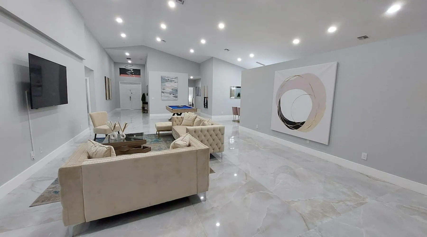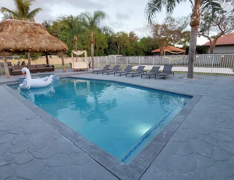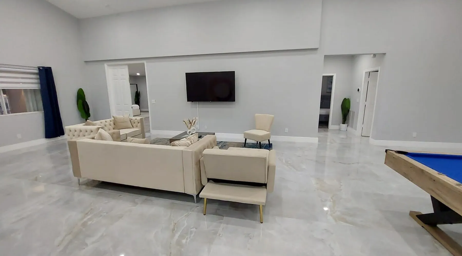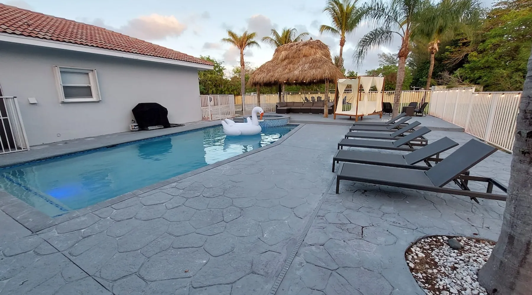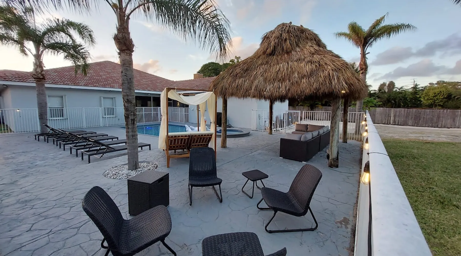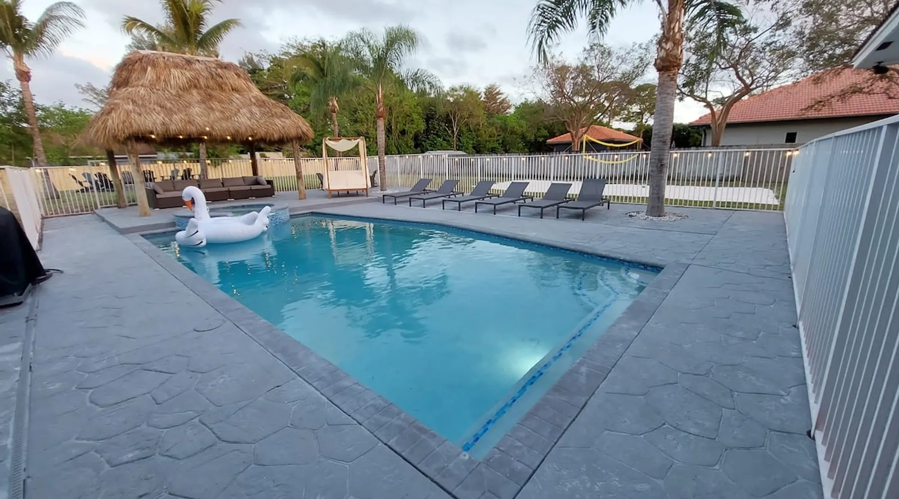 🏡 One-of-a-kind 7000 SQFT villa compound just 1 mile from Boca Raton and 10 minutes to the beach. 🛏️ Features 9 bedrooms, 5 bathrooms, 13 beds, 2 living rooms, and a massive master suite. 🎬 Enjoy a private movie theatre, beach volleyball, and South Florida’s largest 9-hole putting green. 🌴 Lounge in the Tiki Hut with TV, gather by the fire pit, and dive into the brand-new heated pool and Jacuzzi. 🍽️ Includes 2 full kitchens and a separate in-law wing with its own living space. The space Brand New Modern Pool with a Massive Deck and Tanning Ledge, Jacuzzi, Premium Towels, and Linen. Both kitchens are stocked with everything you need, a Full house generator, BBQ Grill, and Outdoor Dining Area. Loungers in the pool and outside the Pool Huge Backyard for enjoying family time together. 5 minute walk to Boca Raton 3 Minute walk to Chabad of Coconut Creek The space HEATED POOL IS INCLUDED IN THE PRICE! The luxurious home is professionally designed by the prominent ShuChai Interior Design Firm to provide a comfortable getaway to all visitors for a perfect stay. Its contemporary setting and outstanding facilities will offer the levels of relaxation and convenience you are looking for in a vacation home. The inviting indoors offers a mix of modern amenities and beautiful furnishing enriched by an abundance of natural light accenting the elegant floors and tastefully picked décor. Every inch of space is well-utilized, which is best visible from the fully equipped kitchen that opens to the entertaining living room and the inviting dining area. Nine highly comfortable bedrooms will provide all the relaxation you need after a long day of South Florida adventures. But wait! The best is yet to come. The fabulous backyard with its large swimming pool, and outdoor dining area under the outdoor canopy and Tiki Hut offers a place where you can soak up the sun, relax, and have hours of fun! ★ LIVING ROOM ★ The living room is perfect for enjoying fun and memorable moments after an eventful day. Find your place on the comfy sofa, grab some snacks and drinks, and enjoy watching your favorite movie. ✔ Comfortable Double Sofa with Pillows ✔ Smart TV with Netflix, and all other smart Apps ✔ Chic Sofa Chairs ✔ Stylish Coffee Tables ✔ Billiard Table It’s not all fun and relaxation in the living room! We have prepared a private workspace where you can set up your laptop and attend an important meeting or a remote learning session. ✔ Office Desk with a Lamp ★ KITCHEN & DINING ★ Want to feel like a MasterChef? Come to the fully equipped kitchen and use its many state-of-the-art cooking appliances, spacious quartz countertops, and ample cabinetry to create tasty homemade meals worthy of the most praised restaurants. ✔ Microwave ✔ Stove ✔ Oven ✔ Refrigerator/Freezer ✔ Ice Maker ✔ Dishwasher ✔ Keurig Coffee Maker ✔ Hot Water Kettle ✔ Blender ✔ Toaster ✔ Glasses ✔ Silverware ✔ Pots & Pans Have a few drinks on the kitchen island while the food is getting ready. Once it's done, serve it on the inviting dining table and enjoy gourmet meals with your friends and family. ✔ Dining Table with Seating for 8 ✔ Kitchen Island with Seating for 5 ★ SLEEPING ARRANGEMENTS - 9 BEDROOMS ★ Retreat to these comfortable bedrooms, designed and furnished to provide you with all the rest needed after a day of adventuring throughout Florida. ♛ Bedroom 1: King-Size Bed ♛ Bedroom 2: King-Size Bed ♛ Bedroom 3: King-Size Bed ♛ Bedroom 4: King-Size Bed ♛ Bedroom 5: King-Size Bed ♛ Bedroom 6: King-Size Bed ♛ Bedroom 7: 2 Queen-Size Bed ♛ Bedroom 8: 2 Queen-Size Bed ♛ Bedroom 9: 1 Bunkbed and pull-out room All bedrooms offer a similar set of amenities: ✔ Premium Pillows, Linens, and Sheets ✔ Smart TVs ✔ Closets with Hangers and Shelves ✔ Dressers with Spacious Drawers ✔ Full-Size Mirrors ✔ Night Stands with Reading Lamps with enabled USB ports for easy charging access ★ BATHROOMS ★ 5 Full bathrooms are stocked with essential toiletries and fresh towels for maximum comfort and convenience. ✔ Spacious Soaking Bathtub ✔ Walk-In Shower ✔ Mirror ✔ Toilet ✔ Towels ✔ Hair Dryer ✔ Essential Toiletries ★ BACKYARD ★ The spacious pool backyard offers a fairy tale outdoor setting. Here you will be able to soak up the sun, catch a breath of fresh air, and unwind in complete privacy under the canopy, surrounded by comfortable amenities for both children and adults. ✔ Swimming Pool with Sun Lounges (Pool Heating included in price) Pool Safety Rules (Strictly Enforced): 👉 The pool safety fence will remain up. 👉 Children under 18 must be supervised by an adult at all times when in or around the pool. 👉 There is no lifeguard on duty – guests use the pool entirely at their own risk. ✔ Jacuzzi ✔ Outdoor Tiki Hut with TV ✔ Lounge Seating Area ✔ Ping Pong Table ✔ Fire Pit ✔ Volleyball ✔ Mini-Golf ✔ Outdoor Dining Area Look no further than our luxurious home for your memorable Pompano Beach, FL visit. We look forward to you experiencing its complete comfort and coziness. 🚗 Important Parking Rule: The property allows a maximum of 4 cars only on-site. Additional vehicles must be parked off-site in designated public parking areas. This rule is strictly enforced, and by booking, you agree to comply. Guest access The home is exclusively yours, without interruption for the duration of your stay, so relax, unwind, and make yourself at home. Other than the already mentioned amenities, our home also comes with: ✔ High-Speed Wi-Fi ✔ Air Conditioning ✔ Heating ✔ Washer/Dryer ✔ Iron/Board ✔ Free Private Parking Other things to note ★ COVID-19 SANITIZATION ★ The Heath, safety, and well-being of our guests are of utmost importance. For this reason, we use a thorough 50-point cleaning process after each check-out. ★ NO SMOKING INSIDE ★ Please refrain from smoking inside the home! It is prohibited. Any smoking e