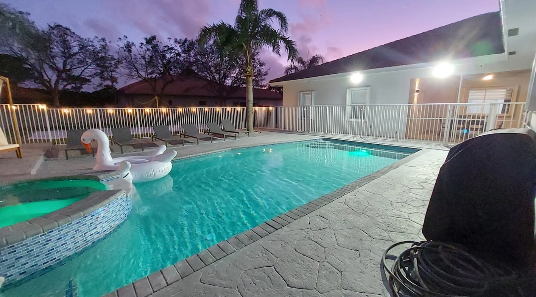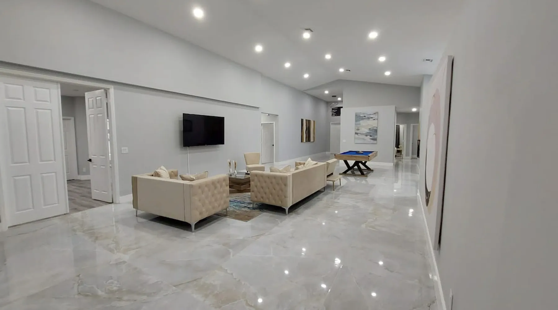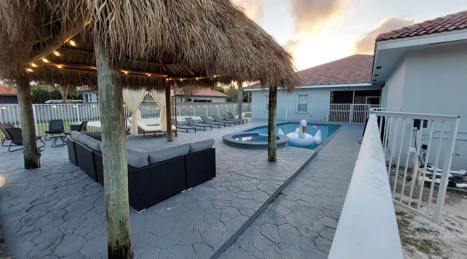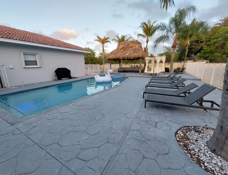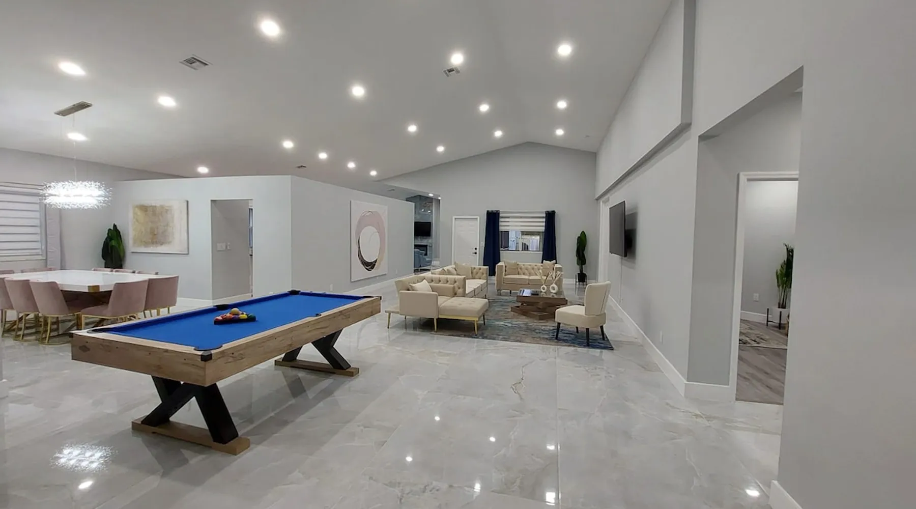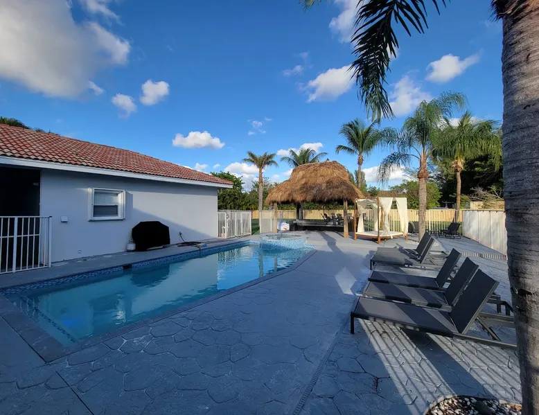 🏡 One-of-a-kind 7000 SQFT villa compound just 1 mile from Boca Raton and 10 minutes to the beach. 🛏️ Features 9 bedrooms, 5 bathrooms, 13 beds, 2 living rooms, and a massive master suite. 🎬 Enjoy a private movie theatre, beach volleyball, and South Florida’s largest 9-hole putting green. 🌴 Lounge in the Tiki Hut with TV, gather by the fire pit, and dive into the brand-new heated pool and Jacuzzi. 🍽️ Includes 2 full kitchens and a separate in-law wing with its own living space. The space Brand New Modern Pool with a Massive Deck and Tanning Ledge, Jacuzzi, Premium Towels, and Linen. Both kitchens are stocked with everything you need, a Full house generator, BBQ Grill, and Outdoor Dining Area. Loungers in the pool and outside the Pool Huge Backyard for enjoying family time together. 5 minute walk to Boca Raton 3 Minute walk to Chabad of Coconut Creek The space HEATED POOL IS INCLUDED IN THE PRICE! The luxurious home is professionally designed by the prominent ShuChai Interior Design Firm to provide a comfortable getaway to all visitors for a perfect stay. Its contemporary setting and outstanding facilities will offer the levels of relaxation and convenience you are looking for in a vacation home. The inviting indoors offers a mix of modern amenities and beautiful furnishing enriched by an abundance of natural light accenting the elegant floors and tastefully picked décor. Every inch of space is well-utilized, which is best visible from the fully equipped kitchen that opens to the entertaining living room and the inviting dining area. Nine highly comfortable bedrooms will provide all the relaxation you need after a long day of South Florida adventures. But wait! The best is yet to come. The fabulous backyard with its large swimming pool, and outdoor dining area under the outdoor canopy and Tiki Hut offers a place where you can soak up the sun, relax, and have hours of fun! ★ LIVING ROOM ★ The living room is perfect for enjoying fun and memorable moments after an eventful day. Find your place on the comfy sofa, grab some snacks and drinks, and enjoy watching your favorite movie. ✔ Comfortable Double Sofa with Pillows ✔ Smart TV with Netflix, and all other smart Apps ✔ Chic Sofa Chairs ✔ Stylish Coffee Tables ✔ Billiard Table It’s not all fun and relaxation in the living room! We have prepared a private workspace where you can set up your laptop and attend an important meeting or a remote learning session. ✔ Office Desk with a Lamp ★ KITCHEN & DINING ★ Want to feel like a MasterChef? Come to the fully equipped kitchen and use its many state-of-the-art cooking appliances, spacious quartz countertops, and ample cabinetry to create tasty homemade meals worthy of the most praised restaurants. ✔ Microwave ✔ Stove ✔ Oven ✔ Refrigerator/Freezer ✔ Ice Maker ✔ Dishwasher ✔ Keurig Coffee Maker ✔ Hot Water Kettle ✔ Blender ✔ Toaster ✔ Glasses ✔ Silverware ✔ Pots & Pans Have a few drinks on the kitchen island while the food is getting ready. Once it's done, serve it on the inviting dining table and enjoy gourmet meals with your friends and family. ✔ Dining Table with Seating for 8 ✔ Kitchen Island with Seating for 5 ★ SLEEPING ARRANGEMENTS - 9 BEDROOMS ★ Retreat to these comfortable bedrooms, designed and furnished to provide you with all the rest needed after a day of adventuring throughout Florida. ♛ Bedroom 1: King-Size Bed ♛ Bedroom 2: King-Size Bed ♛ Bedroom 3: King-Size Bed ♛ Bedroom 4: King-Size Bed ♛ Bedroom 5: King-Size Bed ♛ Bedroom 6: King-Size Bed ♛ Bedroom 7: 2 Queen-Size Bed ♛ Bedroom 8: 2 Queen-Size Bed ♛ Bedroom 9: 1 Bunkbed and pull-out room All bedrooms offer a similar set of amenities: ✔ Premium Pillows, Linens, and Sheets ✔ Smart TVs ✔ Closets with Hangers and Shelves ✔ Dressers with Spacious Drawers ✔ Full-Size Mirrors ✔ Night Stands with Reading Lamps with enabled USB ports for easy charging access ★ BATHROOMS ★ 5 Full bathrooms are stocked with essential toiletries and fresh towels for maximum comfort and convenience. ✔ Spacious Soaking Bathtub ✔ Walk-In Shower ✔ Mirror ✔ Toilet ✔ Towels ✔ Hair Dryer ✔ Essential Toiletries ★ BACKYARD ★ The spacious pool backyard offers a fairy tale outdoor setting. Here you will be able to soak up the sun, catch a breath of fresh air, and unwind in complete privacy under the canopy, surrounded by comfortable amenities for both children and adults. ✔ Swimming Pool with Sun Lounges (Pool Heating included in price) Pool Safety Rules (Strictly Enforced): 👉 The pool safety fence will remain up. 👉 Children under 18 must be supervised by an adult at all times when in or around the pool. 👉 There is no lifeguard on duty – guests use the pool entirely at their own risk. ✔ Jacuzzi ✔ Outdoor Tiki Hut with TV ✔ Lounge Seating Area ✔ Ping Pong Table ✔ Fire Pit ✔ Volleyball ✔ Mini-Golf ✔ Outdoor Dining Area Look no further than our luxurious home for your memorable Pompano Beach, FL visit. We look forward to you experiencing its complete comfort and coziness. 🚗 Important Parking Rule: The property allows a maximum of 4 cars only on-site. Additional vehicles must be parked off-site in designated public parking areas. This rule is strictly enforced, and by booking, you agree to comply. Guest access The home is exclusively yours, without interruption for the duration of your stay, so relax, unwind, and make yourself at home. Other than the already mentioned amenities, our home also comes with: ✔ High-Speed Wi-Fi ✔ Air Conditioning ✔ Heating ✔ Washer/Dryer ✔ Iron/Board ✔ Free Private Parking Other things to note ★ COVID-19 SANITIZATION ★ The Heath, safety, and well-being of our guests are of utmost importance. For this reason, we use a thorough 50-point cleaning process after each check-out. ★ NO SMOKING INSIDE ★ Please refrain from smoking inside the home! It is prohibited. Any smoking e