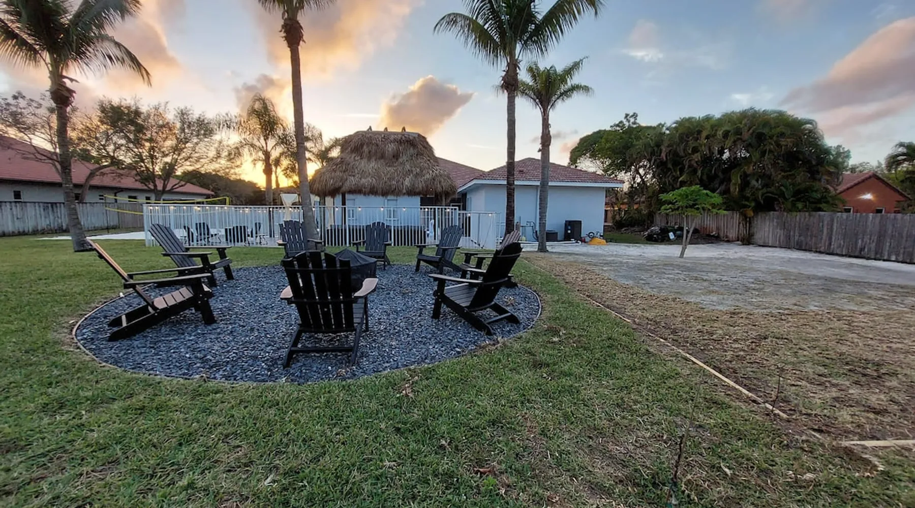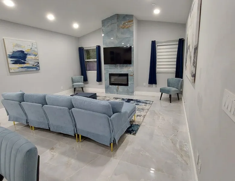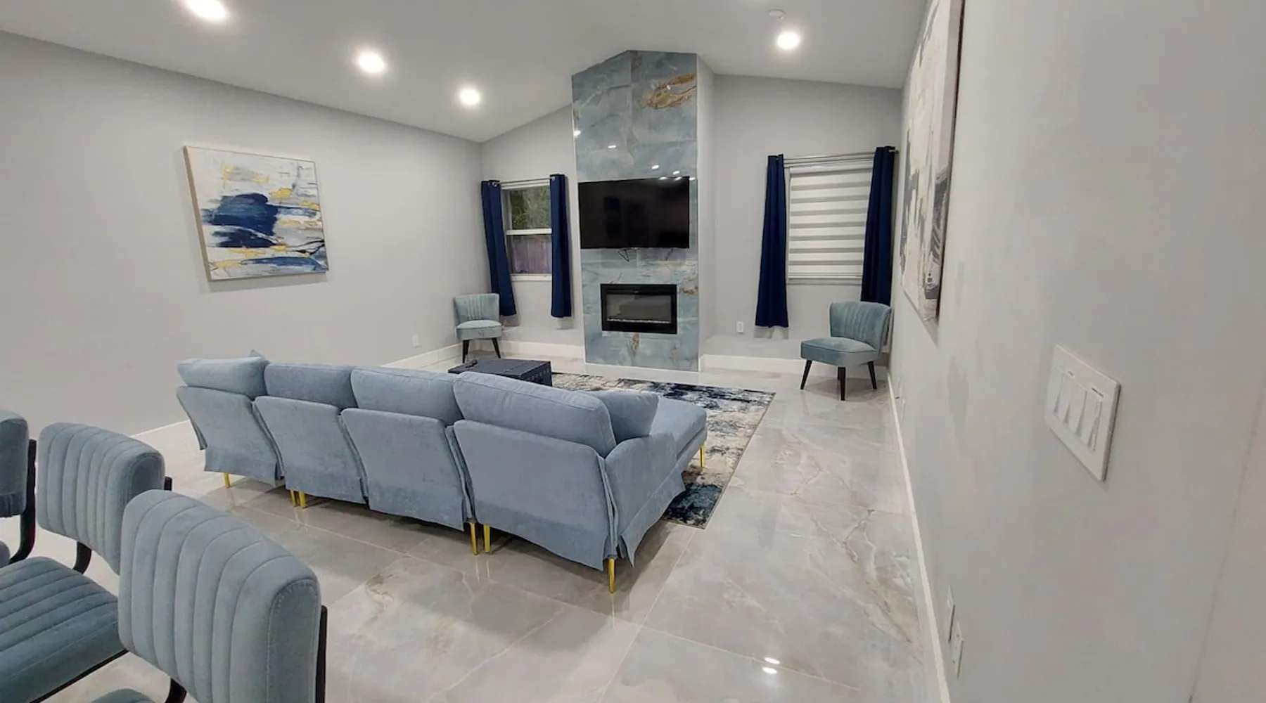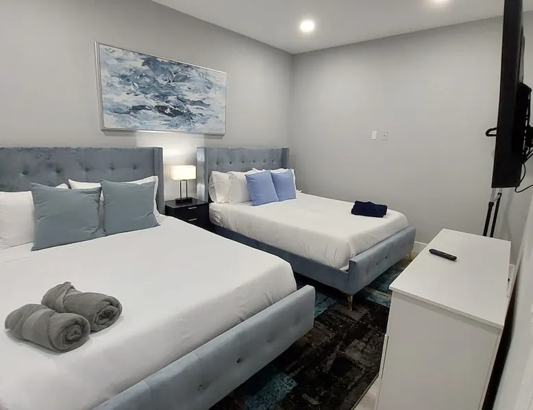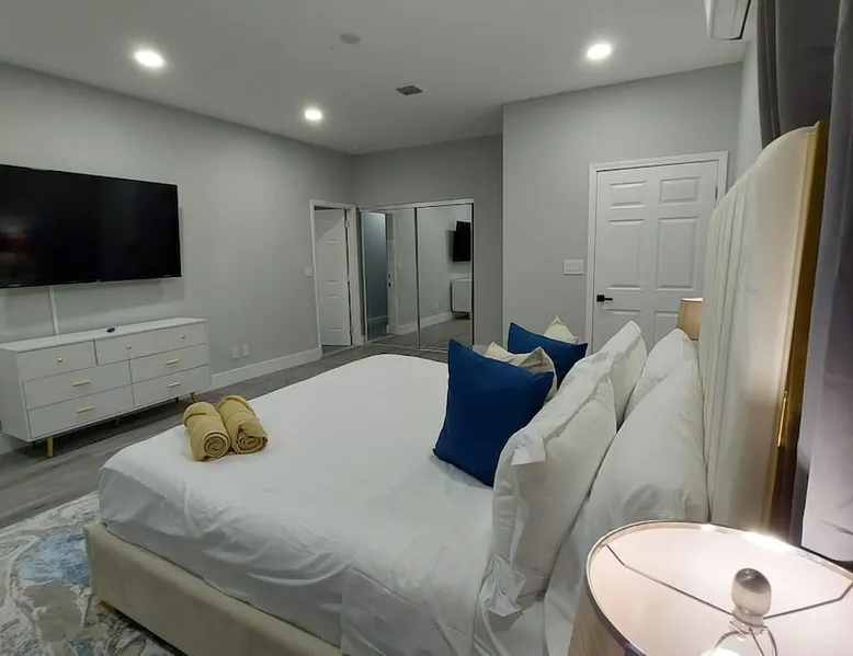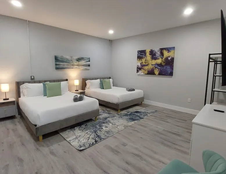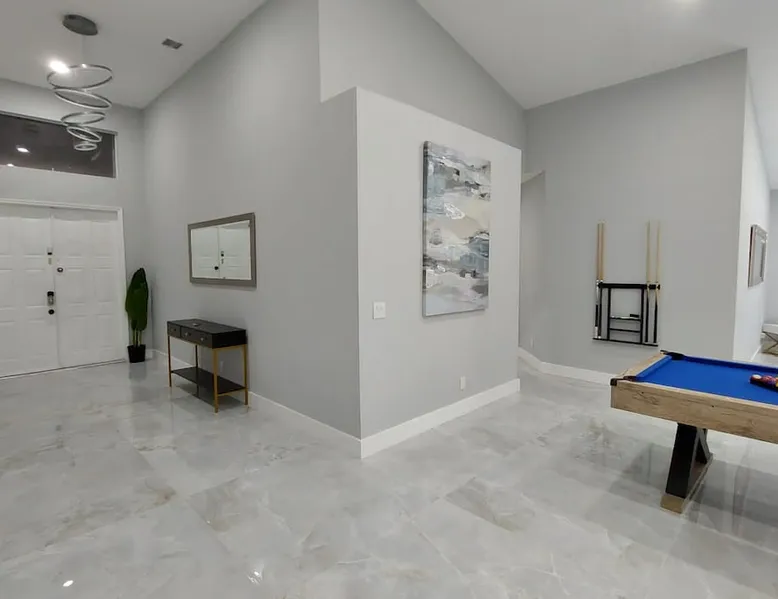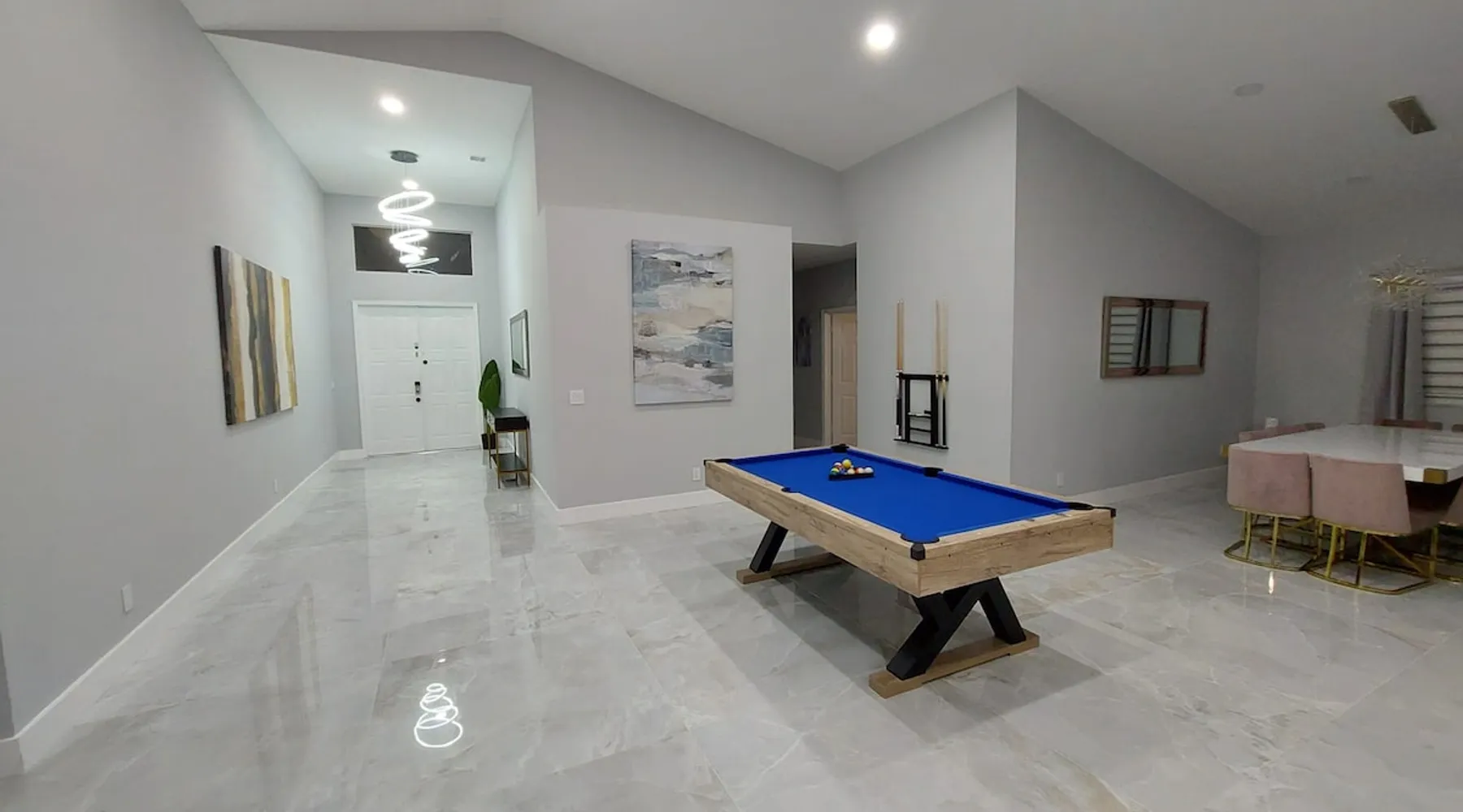 🏡 One-of-a-kind 7000 SQFT villa compound just 1 mile from Boca Raton and 10 minutes to the beach. 🛏️ Features 9 bedrooms, 5 bathrooms, 13 beds, 2 living rooms, and a massive master suite. 🎬 Enjoy a private movie theatre, beach volleyball, and South Florida’s largest 9-hole putting green. 🌴 Lounge in the Tiki Hut with TV, gather by the fire pit, and dive into the brand-new heated pool and Jacuzzi. 🍽️ Includes 2 full kitchens and a separate in-law wing with its own living space. The space Brand New Modern Pool with a Massive Deck and Tanning Ledge, Jacuzzi, Premium Towels, and Linen. Both kitchens are stocked with everything you need, a Full house generator, BBQ Grill, and Outdoor Dining Area. Loungers in the pool and outside the Pool Huge Backyard for enjoying family time together. 5 minute walk to Boca Raton 3 Minute walk to Chabad of Coconut Creek The space HEATED POOL IS INCLUDED IN THE PRICE! The luxurious home is professionally designed by the prominent ShuChai Interior Design Firm to provide a comfortable getaway to all visitors for a perfect stay. Its contemporary setting and outstanding facilities will offer the levels of relaxation and convenience you are looking for in a vacation home. The inviting indoors offers a mix of modern amenities and beautiful furnishing enriched by an abundance of natural light accenting the elegant floors and tastefully picked décor. Every inch of space is well-utilized, which is best visible from the fully equipped kitchen that opens to the entertaining living room and the inviting dining area. Nine highly comfortable bedrooms will provide all the relaxation you need after a long day of South Florida adventures. But wait! The best is yet to come. The fabulous backyard with its large swimming pool, and outdoor dining area under the outdoor canopy and Tiki Hut offers a place where you can soak up the sun, relax, and have hours of fun! ★ LIVING ROOM ★ The living room is perfect for enjoying fun and memorable moments after an eventful day. Find your place on the comfy sofa, grab some snacks and drinks, and enjoy watching your favorite movie. ✔ Comfortable Double Sofa with Pillows ✔ Smart TV with Netflix, and all other smart Apps ✔ Chic Sofa Chairs ✔ Stylish Coffee Tables ✔ Billiard Table It’s not all fun and relaxation in the living room! We have prepared a private workspace where you can set up your laptop and attend an important meeting or a remote learning session. ✔ Office Desk with a Lamp ★ KITCHEN & DINING ★ Want to feel like a MasterChef? Come to the fully equipped kitchen and use its many state-of-the-art cooking appliances, spacious quartz countertops, and ample cabinetry to create tasty homemade meals worthy of the most praised restaurants. ✔ Microwave ✔ Stove ✔ Oven ✔ Refrigerator/Freezer ✔ Ice Maker ✔ Dishwasher ✔ Keurig Coffee Maker ✔ Hot Water Kettle ✔ Blender ✔ Toaster ✔ Glasses ✔ Silverware ✔ Pots & Pans Have a few drinks on the kitchen island while the food is getting ready. Once it's done, serve it on the inviting dining table and enjoy gourmet meals with your friends and family. ✔ Dining Table with Seating for 8 ✔ Kitchen Island with Seating for 5 ★ SLEEPING ARRANGEMENTS - 9 BEDROOMS ★ Retreat to these comfortable bedrooms, designed and furnished to provide you with all the rest needed after a day of adventuring throughout Florida. ♛ Bedroom 1: King-Size Bed ♛ Bedroom 2: King-Size Bed ♛ Bedroom 3: King-Size Bed ♛ Bedroom 4: King-Size Bed ♛ Bedroom 5: King-Size Bed ♛ Bedroom 6: King-Size Bed ♛ Bedroom 7: 2 Queen-Size Bed ♛ Bedroom 8: 2 Queen-Size Bed ♛ Bedroom 9: 1 Bunkbed and pull-out room All bedrooms offer a similar set of amenities: ✔ Premium Pillows, Linens, and Sheets ✔ Smart TVs ✔ Closets with Hangers and Shelves ✔ Dressers with Spacious Drawers ✔ Full-Size Mirrors ✔ Night Stands with Reading Lamps with enabled USB ports for easy charging access ★ BATHROOMS ★ 5 Full bathrooms are stocked with essential toiletries and fresh towels for maximum comfort and convenience. ✔ Spacious Soaking Bathtub ✔ Walk-In Shower ✔ Mirror ✔ Toilet ✔ Towels ✔ Hair Dryer ✔ Essential Toiletries ★ BACKYARD ★ The spacious pool backyard offers a fairy tale outdoor setting. Here you will be able to soak up the sun, catch a breath of fresh air, and unwind in complete privacy under the canopy, surrounded by comfortable amenities for both children and adults. ✔ Swimming Pool with Sun Lounges (Pool Heating included in price) Pool Safety Rules (Strictly Enforced): 👉 The pool safety fence will remain up. 👉 Children under 18 must be supervised by an adult at all times when in or around the pool. 👉 There is no lifeguard on duty – guests use the pool entirely at their own risk. ✔ Jacuzzi ✔ Outdoor Tiki Hut with TV ✔ Lounge Seating Area ✔ Ping Pong Table ✔ Fire Pit ✔ Volleyball ✔ Mini-Golf ✔ Outdoor Dining Area Look no further than our luxurious home for your memorable Pompano Beach, FL visit. We look forward to you experiencing its complete comfort and coziness. 🚗 Important Parking Rule: The property allows a maximum of 4 cars only on-site. Additional vehicles must be parked off-site in designated public parking areas. This rule is strictly enforced, and by booking, you agree to comply. Guest access The home is exclusively yours, without interruption for the duration of your stay, so relax, unwind, and make yourself at home. Other than the already mentioned amenities, our home also comes with: ✔ High-Speed Wi-Fi ✔ Air Conditioning ✔ Heating ✔ Washer/Dryer ✔ Iron/Board ✔ Free Private Parking Other things to note ★ COVID-19 SANITIZATION ★ The Heath, safety, and well-being of our guests are of utmost importance. For this reason, we use a thorough 50-point cleaning process after each check-out. ★ NO SMOKING INSIDE ★ Please refrain from smoking inside the home! It is prohibited. Any smoking e