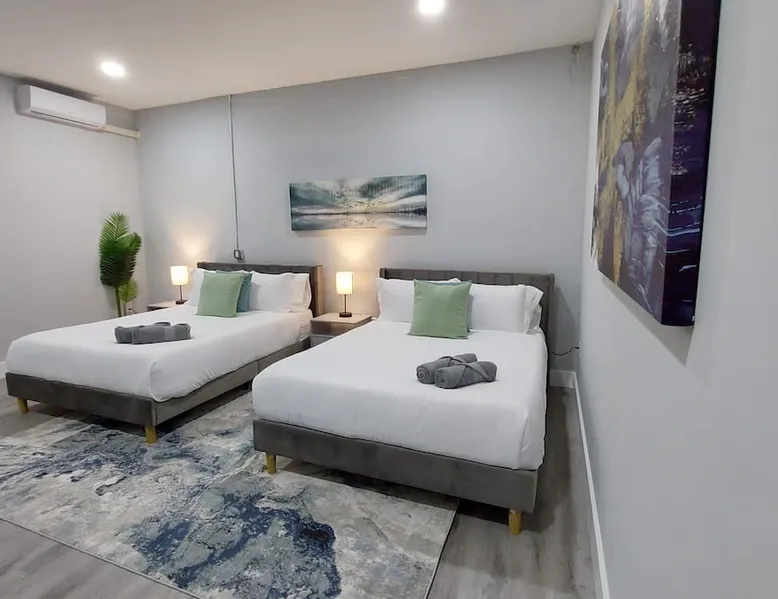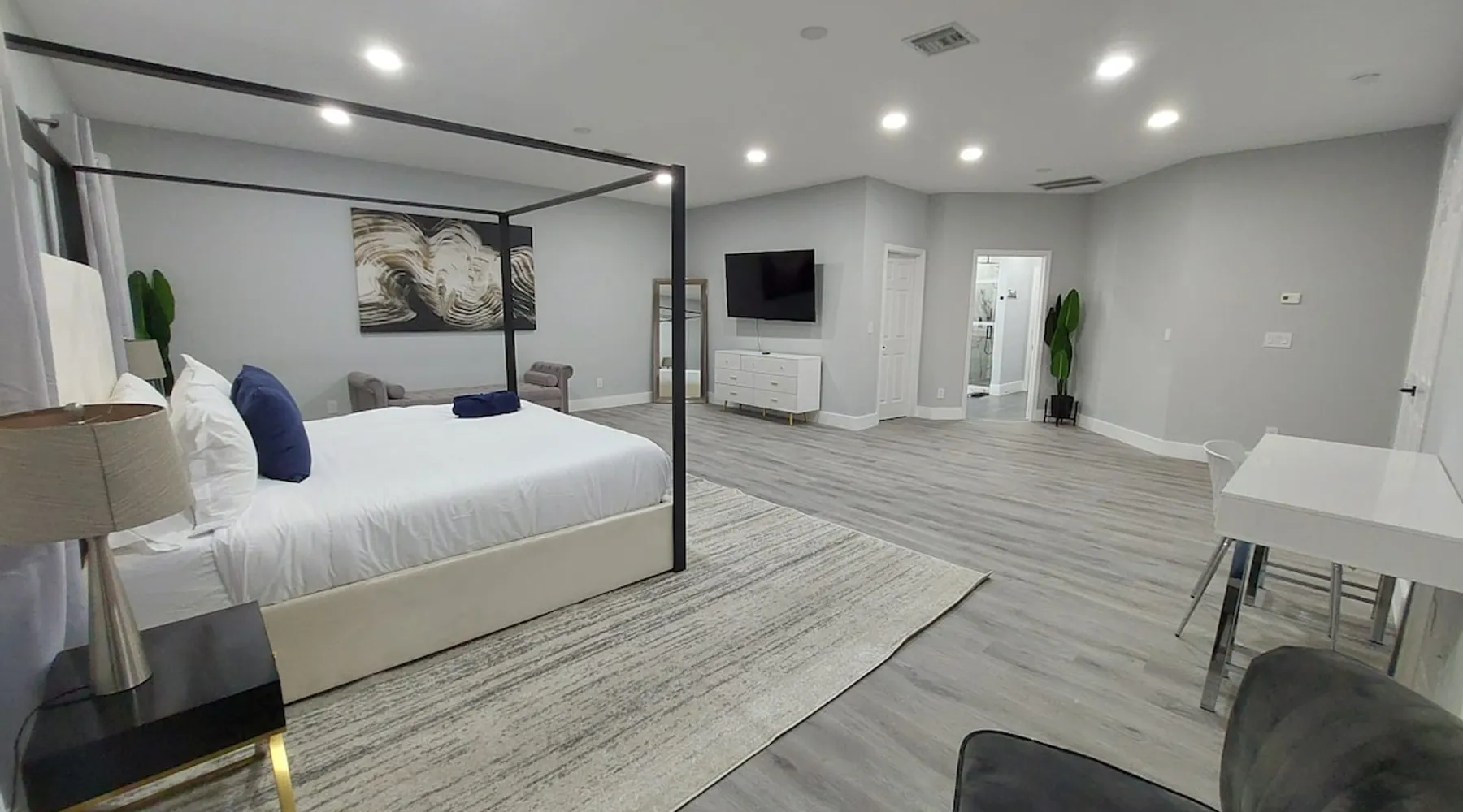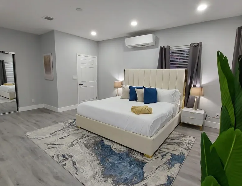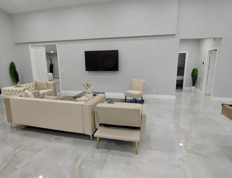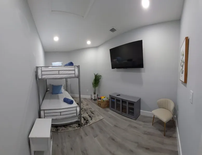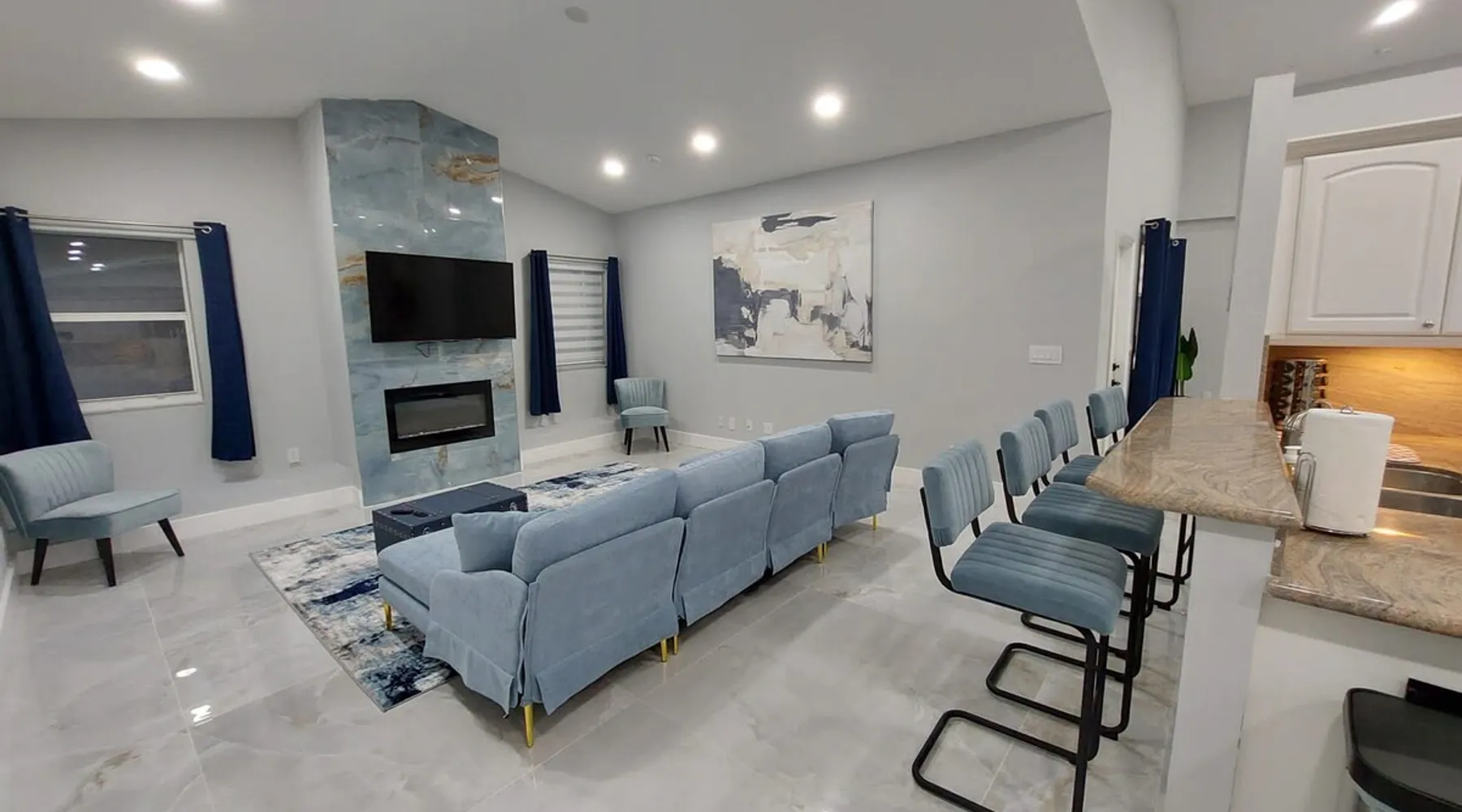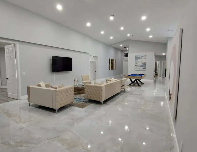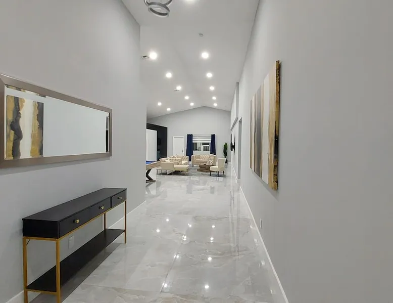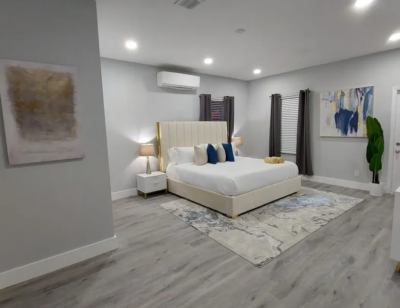 🏡 One-of-a-kind 7000 SQFT villa compound just 1 mile from Boca Raton and 10 minutes to the beach. 🛏️ Features 9 bedrooms, 5 bathrooms, 13 beds, 2 living rooms, and a massive master suite. 🎬 Enjoy a private movie theatre, beach volleyball, and South Florida’s largest 9-hole putting green. 🌴 Lounge in the Tiki Hut with TV, gather by the fire pit, and dive into the brand-new heated pool and Jacuzzi. 🍽️ Includes 2 full kitchens and a separate in-law wing with its own living space. The space Brand New Modern Pool with a Massive Deck and Tanning Ledge, Jacuzzi, Premium Towels, and Linen. Both kitchens are stocked with everything you need, a Full house generator, BBQ Grill, and Outdoor Dining Area. Loungers in the pool and outside the Pool Huge Backyard for enjoying family time together. 5 minute walk to Boca Raton 3 Minute walk to Chabad of Coconut Creek The space HEATED POOL IS INCLUDED IN THE PRICE! The luxurious home is professionally designed by the prominent ShuChai Interior Design Firm to provide a comfortable getaway to all visitors for a perfect stay. Its contemporary setting and outstanding facilities will offer the levels of relaxation and convenience you are looking for in a vacation home. The inviting indoors offers a mix of modern amenities and beautiful furnishing enriched by an abundance of natural light accenting the elegant floors and tastefully picked décor. Every inch of space is well-utilized, which is best visible from the fully equipped kitchen that opens to the entertaining living room and the inviting dining area. Nine highly comfortable bedrooms will provide all the relaxation you need after a long day of South Florida adventures. But wait! The best is yet to come. The fabulous backyard with its large swimming pool, and outdoor dining area under the outdoor canopy and Tiki Hut offers a place where you can soak up the sun, relax, and have hours of fun! ★ LIVING ROOM ★ The living room is perfect for enjoying fun and memorable moments after an eventful day. Find your place on the comfy sofa, grab some snacks and drinks, and enjoy watching your favorite movie. ✔ Comfortable Double Sofa with Pillows ✔ Smart TV with Netflix, and all other smart Apps ✔ Chic Sofa Chairs ✔ Stylish Coffee Tables ✔ Billiard Table It’s not all fun and relaxation in the living room! We have prepared a private workspace where you can set up your laptop and attend an important meeting or a remote learning session. ✔ Office Desk with a Lamp ★ KITCHEN & DINING ★ Want to feel like a MasterChef? Come to the fully equipped kitchen and use its many state-of-the-art cooking appliances, spacious quartz countertops, and ample cabinetry to create tasty homemade meals worthy of the most praised restaurants. ✔ Microwave ✔ Stove ✔ Oven ✔ Refrigerator/Freezer ✔ Ice Maker ✔ Dishwasher ✔ Keurig Coffee Maker ✔ Hot Water Kettle ✔ Blender ✔ Toaster ✔ Glasses ✔ Silverware ✔ Pots & Pans Have a few drinks on the kitchen island while the food is getting ready. Once it's done, serve it on the inviting dining table and enjoy gourmet meals with your friends and family. ✔ Dining Table with Seating for 8 ✔ Kitchen Island with Seating for 5 ★ SLEEPING ARRANGEMENTS - 9 BEDROOMS ★ Retreat to these comfortable bedrooms, designed and furnished to provide you with all the rest needed after a day of adventuring throughout Florida. ♛ Bedroom 1: King-Size Bed ♛ Bedroom 2: King-Size Bed ♛ Bedroom 3: King-Size Bed ♛ Bedroom 4: King-Size Bed ♛ Bedroom 5: King-Size Bed ♛ Bedroom 6: King-Size Bed ♛ Bedroom 7: 2 Queen-Size Bed ♛ Bedroom 8: 2 Queen-Size Bed ♛ Bedroom 9: 1 Bunkbed and pull-out room All bedrooms offer a similar set of amenities: ✔ Premium Pillows, Linens, and Sheets ✔ Smart TVs ✔ Closets with Hangers and Shelves ✔ Dressers with Spacious Drawers ✔ Full-Size Mirrors ✔ Night Stands with Reading Lamps with enabled USB ports for easy charging access ★ BATHROOMS ★ 5 Full bathrooms are stocked with essential toiletries and fresh towels for maximum comfort and convenience. ✔ Spacious Soaking Bathtub ✔ Walk-In Shower ✔ Mirror ✔ Toilet ✔ Towels ✔ Hair Dryer ✔ Essential Toiletries ★ BACKYARD ★ The spacious pool backyard offers a fairy tale outdoor setting. Here you will be able to soak up the sun, catch a breath of fresh air, and unwind in complete privacy under the canopy, surrounded by comfortable amenities for both children and adults. ✔ Swimming Pool with Sun Lounges (Pool Heating included in price) Pool Safety Rules (Strictly Enforced): 👉 The pool safety fence will remain up. 👉 Children under 18 must be supervised by an adult at all times when in or around the pool. 👉 There is no lifeguard on duty – guests use the pool entirely at their own risk. ✔ Jacuzzi ✔ Outdoor Tiki Hut with TV ✔ Lounge Seating Area ✔ Ping Pong Table ✔ Fire Pit ✔ Volleyball ✔ Mini-Golf ✔ Outdoor Dining Area Look no further than our luxurious home for your memorable Pompano Beach, FL visit. We look forward to you experiencing its complete comfort and coziness. 🚗 Important Parking Rule: The property allows a maximum of 4 cars only on-site. Additional vehicles must be parked off-site in designated public parking areas. This rule is strictly enforced, and by booking, you agree to comply. Guest access The home is exclusively yours, without interruption for the duration of your stay, so relax, unwind, and make yourself at home. Other than the already mentioned amenities, our home also comes with: ✔ High-Speed Wi-Fi ✔ Air Conditioning ✔ Heating ✔ Washer/Dryer ✔ Iron/Board ✔ Free Private Parking Other things to note ★ COVID-19 SANITIZATION ★ The Heath, safety, and well-being of our guests are of utmost importance. For this reason, we use a thorough 50-point cleaning process after each check-out. ★ NO SMOKING INSIDE ★ Please refrain from smoking inside the home! It is prohibited. Any smoking e