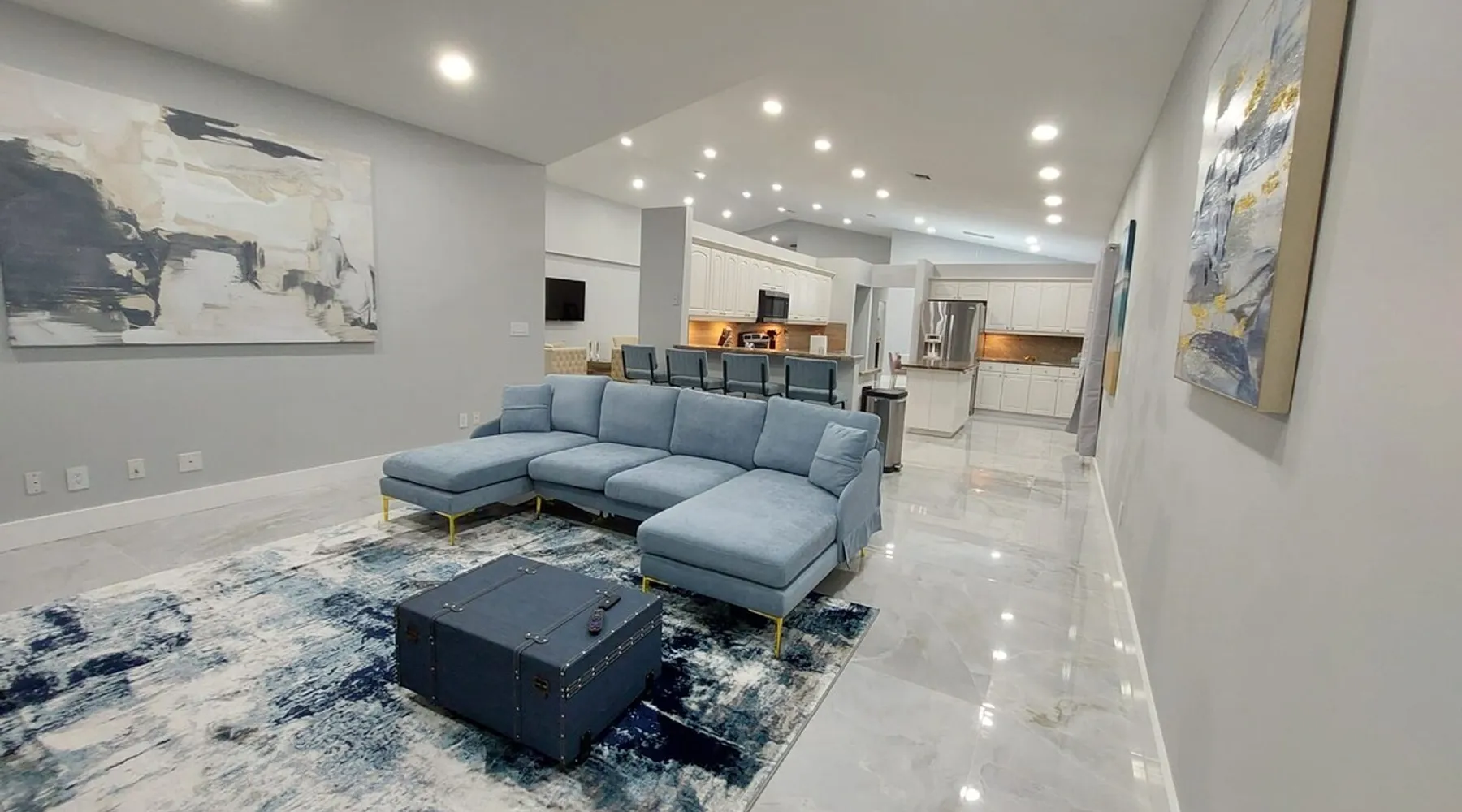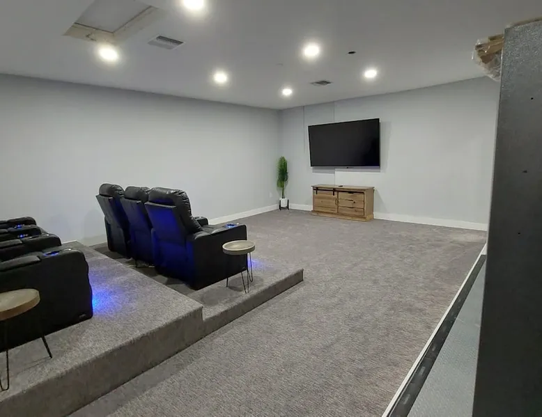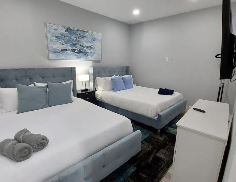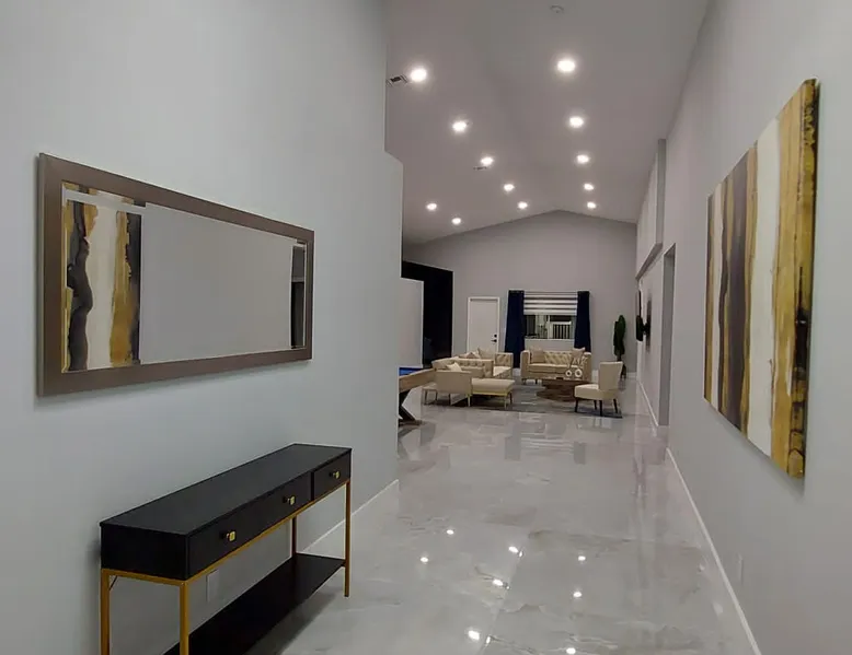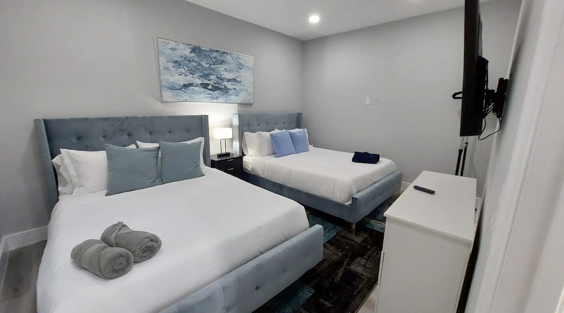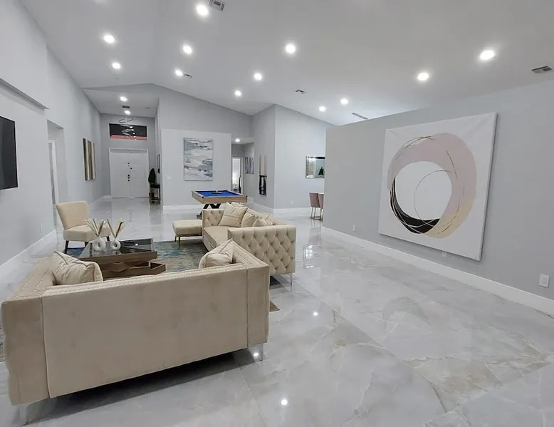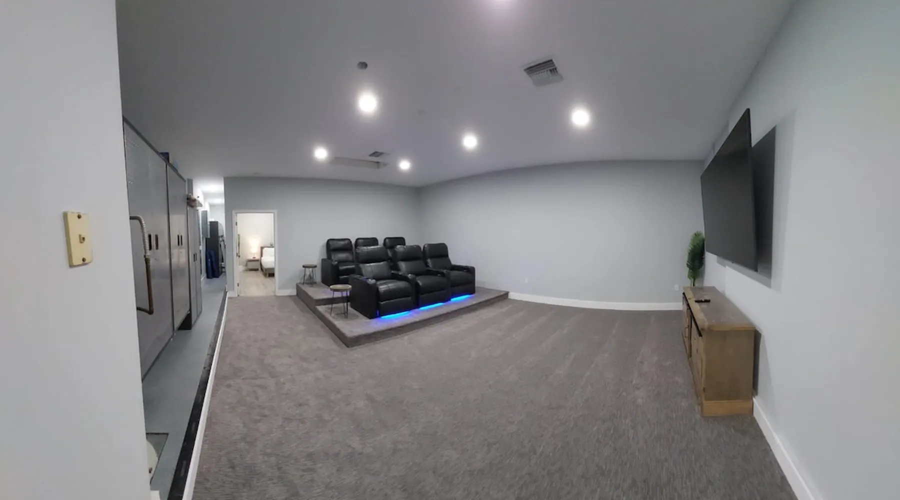 🏡 One-of-a-kind 7000 SQFT villa compound just 1 mile from Boca Raton and 10 minutes to the beach. 🛏️ Features 9 bedrooms, 5 bathrooms, 13 beds, 2 living rooms, and a massive master suite. 🎬 Enjoy a private movie theatre, beach volleyball, and South Florida’s largest 9-hole putting green. 🌴 Lounge in the Tiki Hut with TV, gather by the fire pit, and dive into the brand-new heated pool and Jacuzzi. 🍽️ Includes 2 full kitchens and a separate in-law wing with its own living space. The space Brand New Modern Pool with a Massive Deck and Tanning Ledge, Jacuzzi, Premium Towels, and Linen. Both kitchens are stocked with everything you need, a Full house generator, BBQ Grill, and Outdoor Dining Area. Loungers in the pool and outside the Pool Huge Backyard for enjoying family time together. 5 minute walk to Boca Raton 3 Minute walk to Chabad of Coconut Creek The space HEATED POOL IS INCLUDED IN THE PRICE! The luxurious home is professionally designed by the prominent ShuChai Interior Design Firm to provide a comfortable getaway to all visitors for a perfect stay. Its contemporary setting and outstanding facilities will offer the levels of relaxation and convenience you are looking for in a vacation home. The inviting indoors offers a mix of modern amenities and beautiful furnishing enriched by an abundance of natural light accenting the elegant floors and tastefully picked décor. Every inch of space is well-utilized, which is best visible from the fully equipped kitchen that opens to the entertaining living room and the inviting dining area. Nine highly comfortable bedrooms will provide all the relaxation you need after a long day of South Florida adventures. But wait! The best is yet to come. The fabulous backyard with its large swimming pool, and outdoor dining area under the outdoor canopy and Tiki Hut offers a place where you can soak up the sun, relax, and have hours of fun! ★ LIVING ROOM ★ The living room is perfect for enjoying fun and memorable moments after an eventful day. Find your place on the comfy sofa, grab some snacks and drinks, and enjoy watching your favorite movie. ✔ Comfortable Double Sofa with Pillows ✔ Smart TV with Netflix, and all other smart Apps ✔ Chic Sofa Chairs ✔ Stylish Coffee Tables ✔ Billiard Table It’s not all fun and relaxation in the living room! We have prepared a private workspace where you can set up your laptop and attend an important meeting or a remote learning session. ✔ Office Desk with a Lamp ★ KITCHEN & DINING ★ Want to feel like a MasterChef? Come to the fully equipped kitchen and use its many state-of-the-art cooking appliances, spacious quartz countertops, and ample cabinetry to create tasty homemade meals worthy of the most praised restaurants. ✔ Microwave ✔ Stove ✔ Oven ✔ Refrigerator/Freezer ✔ Ice Maker ✔ Dishwasher ✔ Keurig Coffee Maker ✔ Hot Water Kettle ✔ Blender ✔ Toaster ✔ Glasses ✔ Silverware ✔ Pots & Pans Have a few drinks on the kitchen island while the food is getting ready. Once it's done, serve it on the inviting dining table and enjoy gourmet meals with your friends and family. ✔ Dining Table with Seating for 8 ✔ Kitchen Island with Seating for 5 ★ SLEEPING ARRANGEMENTS - 9 BEDROOMS ★ Retreat to these comfortable bedrooms, designed and furnished to provide you with all the rest needed after a day of adventuring throughout Florida. ♛ Bedroom 1: King-Size Bed ♛ Bedroom 2: King-Size Bed ♛ Bedroom 3: King-Size Bed ♛ Bedroom 4: King-Size Bed ♛ Bedroom 5: King-Size Bed ♛ Bedroom 6: King-Size Bed ♛ Bedroom 7: 2 Queen-Size Bed ♛ Bedroom 8: 2 Queen-Size Bed ♛ Bedroom 9: 1 Bunkbed and pull-out room All bedrooms offer a similar set of amenities: ✔ Premium Pillows, Linens, and Sheets ✔ Smart TVs ✔ Closets with Hangers and Shelves ✔ Dressers with Spacious Drawers ✔ Full-Size Mirrors ✔ Night Stands with Reading Lamps with enabled USB ports for easy charging access ★ BATHROOMS ★ 5 Full bathrooms are stocked with essential toiletries and fresh towels for maximum comfort and convenience. ✔ Spacious Soaking Bathtub ✔ Walk-In Shower ✔ Mirror ✔ Toilet ✔ Towels ✔ Hair Dryer ✔ Essential Toiletries ★ BACKYARD ★ The spacious pool backyard offers a fairy tale outdoor setting. Here you will be able to soak up the sun, catch a breath of fresh air, and unwind in complete privacy under the canopy, surrounded by comfortable amenities for both children and adults. ✔ Swimming Pool with Sun Lounges (Pool Heating included in price) Pool Safety Rules (Strictly Enforced): 👉 The pool safety fence will remain up. 👉 Children under 18 must be supervised by an adult at all times when in or around the pool. 👉 There is no lifeguard on duty – guests use the pool entirely at their own risk. ✔ Jacuzzi ✔ Outdoor Tiki Hut with TV ✔ Lounge Seating Area ✔ Ping Pong Table ✔ Fire Pit ✔ Volleyball ✔ Mini-Golf ✔ Outdoor Dining Area Look no further than our luxurious home for your memorable Pompano Beach, FL visit. We look forward to you experiencing its complete comfort and coziness. 🚗 Important Parking Rule: The property allows a maximum of 4 cars only on-site. Additional vehicles must be parked off-site in designated public parking areas. This rule is strictly enforced, and by booking, you agree to comply. Guest access The home is exclusively yours, without interruption for the duration of your stay, so relax, unwind, and make yourself at home. Other than the already mentioned amenities, our home also comes with: ✔ High-Speed Wi-Fi ✔ Air Conditioning ✔ Heating ✔ Washer/Dryer ✔ Iron/Board ✔ Free Private Parking Other things to note ★ COVID-19 SANITIZATION ★ The Heath, safety, and well-being of our guests are of utmost importance. For this reason, we use a thorough 50-point cleaning process after each check-out. ★ NO SMOKING INSIDE ★ Please refrain from smoking inside the home! It is prohibited. Any smoking e