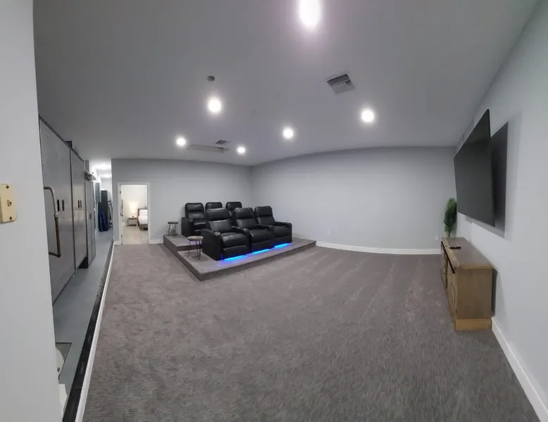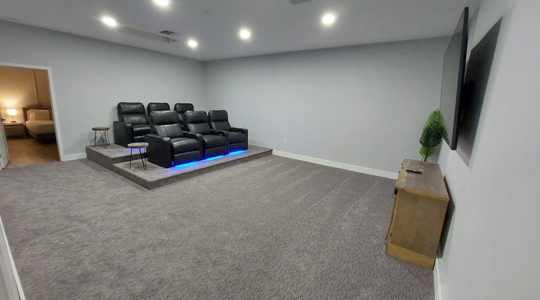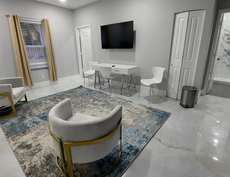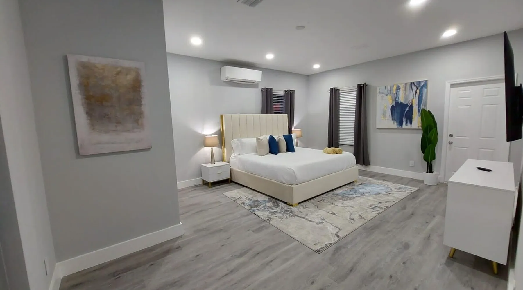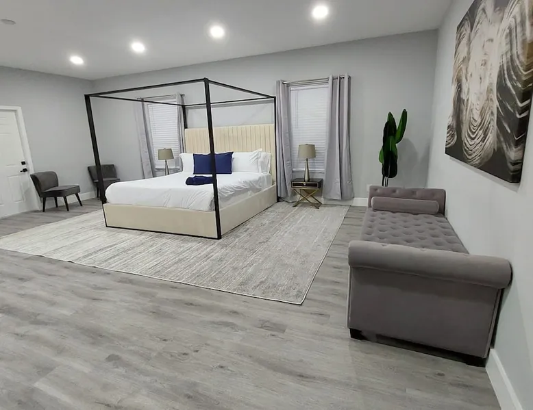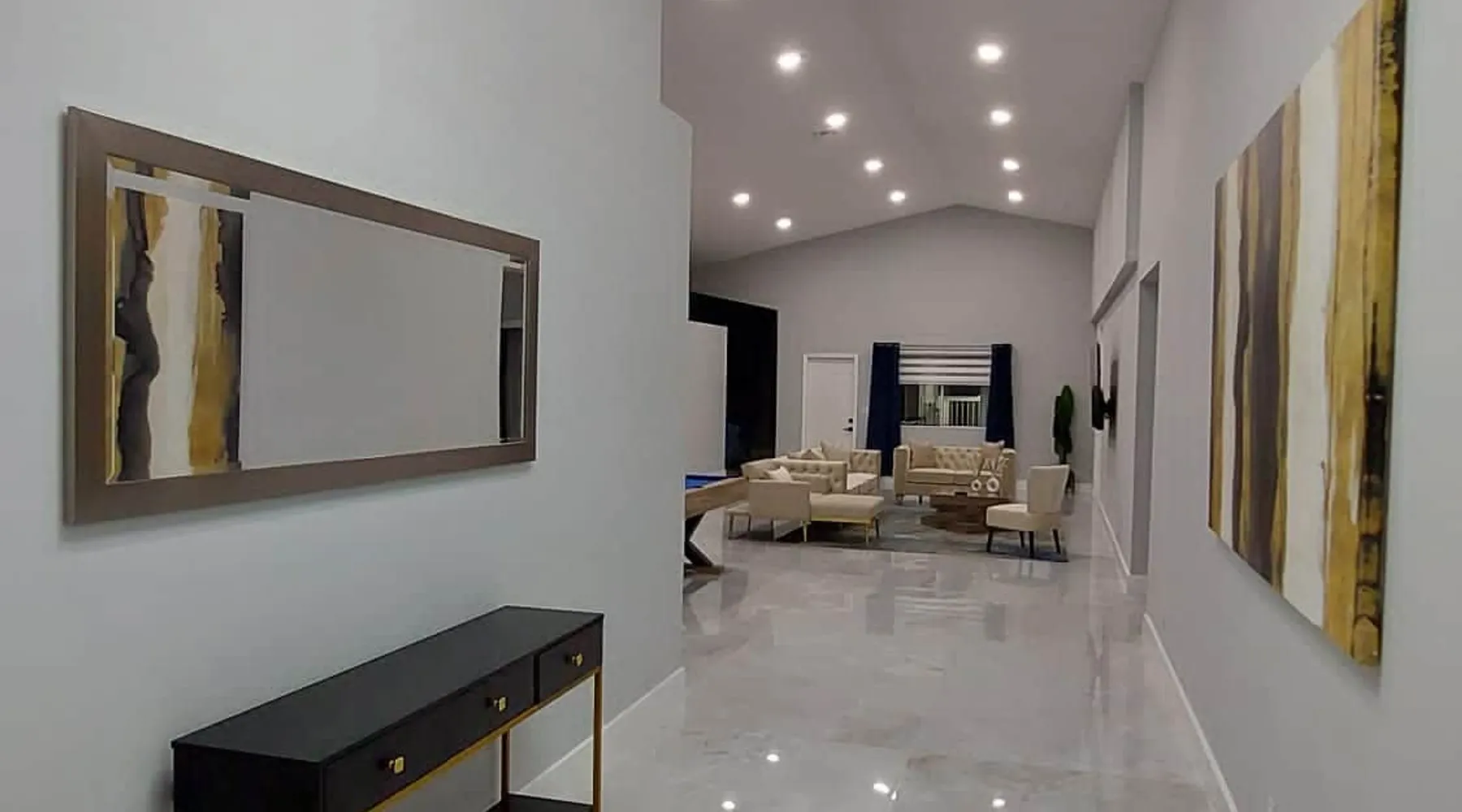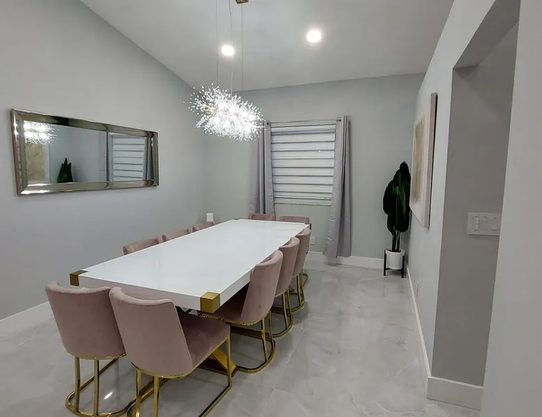 🏡 One-of-a-kind 7000 SQFT villa compound just 1 mile from Boca Raton and 10 minutes to the beach. 🛏️ Features 9 bedrooms, 5 bathrooms, 13 beds, 2 living rooms, and a massive master suite. 🎬 Enjoy a private movie theatre, beach volleyball, and South Florida’s largest 9-hole putting green. 🌴 Lounge in the Tiki Hut with TV, gather by the fire pit, and dive into the brand-new heated pool and Jacuzzi. 🍽️ Includes 2 full kitchens and a separate in-law wing with its own living space. The space Brand New Modern Pool with a Massive Deck and Tanning Ledge, Jacuzzi, Premium Towels, and Linen. Both kitchens are stocked with everything you need, a Full house generator, BBQ Grill, and Outdoor Dining Area. Loungers in the pool and outside the Pool Huge Backyard for enjoying family time together. 5 minute walk to Boca Raton 3 Minute walk to Chabad of Coconut Creek The space HEATED POOL IS INCLUDED IN THE PRICE! The luxurious home is professionally designed by the prominent ShuChai Interior Design Firm to provide a comfortable getaway to all visitors for a perfect stay. Its contemporary setting and outstanding facilities will offer the levels of relaxation and convenience you are looking for in a vacation home. The inviting indoors offers a mix of modern amenities and beautiful furnishing enriched by an abundance of natural light accenting the elegant floors and tastefully picked décor. Every inch of space is well-utilized, which is best visible from the fully equipped kitchen that opens to the entertaining living room and the inviting dining area. Nine highly comfortable bedrooms will provide all the relaxation you need after a long day of South Florida adventures. But wait! The best is yet to come. The fabulous backyard with its large swimming pool, and outdoor dining area under the outdoor canopy and Tiki Hut offers a place where you can soak up the sun, relax, and have hours of fun! ★ LIVING ROOM ★ The living room is perfect for enjoying fun and memorable moments after an eventful day. Find your place on the comfy sofa, grab some snacks and drinks, and enjoy watching your favorite movie. ✔ Comfortable Double Sofa with Pillows ✔ Smart TV with Netflix, and all other smart Apps ✔ Chic Sofa Chairs ✔ Stylish Coffee Tables ✔ Billiard Table It’s not all fun and relaxation in the living room! We have prepared a private workspace where you can set up your laptop and attend an important meeting or a remote learning session. ✔ Office Desk with a Lamp ★ KITCHEN & DINING ★ Want to feel like a MasterChef? Come to the fully equipped kitchen and use its many state-of-the-art cooking appliances, spacious quartz countertops, and ample cabinetry to create tasty homemade meals worthy of the most praised restaurants. ✔ Microwave ✔ Stove ✔ Oven ✔ Refrigerator/Freezer ✔ Ice Maker ✔ Dishwasher ✔ Keurig Coffee Maker ✔ Hot Water Kettle ✔ Blender ✔ Toaster ✔ Glasses ✔ Silverware ✔ Pots & Pans Have a few drinks on the kitchen island while the food is getting ready. Once it's done, serve it on the inviting dining table and enjoy gourmet meals with your friends and family. ✔ Dining Table with Seating for 8 ✔ Kitchen Island with Seating for 5 ★ SLEEPING ARRANGEMENTS - 9 BEDROOMS ★ Retreat to these comfortable bedrooms, designed and furnished to provide you with all the rest needed after a day of adventuring throughout Florida. ♛ Bedroom 1: King-Size Bed ♛ Bedroom 2: King-Size Bed ♛ Bedroom 3: King-Size Bed ♛ Bedroom 4: King-Size Bed ♛ Bedroom 5: King-Size Bed ♛ Bedroom 6: King-Size Bed ♛ Bedroom 7: 2 Queen-Size Bed ♛ Bedroom 8: 2 Queen-Size Bed ♛ Bedroom 9: 1 Bunkbed and pull-out room All bedrooms offer a similar set of amenities: ✔ Premium Pillows, Linens, and Sheets ✔ Smart TVs ✔ Closets with Hangers and Shelves ✔ Dressers with Spacious Drawers ✔ Full-Size Mirrors ✔ Night Stands with Reading Lamps with enabled USB ports for easy charging access ★ BATHROOMS ★ 5 Full bathrooms are stocked with essential toiletries and fresh towels for maximum comfort and convenience. ✔ Spacious Soaking Bathtub ✔ Walk-In Shower ✔ Mirror ✔ Toilet ✔ Towels ✔ Hair Dryer ✔ Essential Toiletries ★ BACKYARD ★ The spacious pool backyard offers a fairy tale outdoor setting. Here you will be able to soak up the sun, catch a breath of fresh air, and unwind in complete privacy under the canopy, surrounded by comfortable amenities for both children and adults. ✔ Swimming Pool with Sun Lounges (Pool Heating included in price) Pool Safety Rules (Strictly Enforced): 👉 The pool safety fence will remain up. 👉 Children under 18 must be supervised by an adult at all times when in or around the pool. 👉 There is no lifeguard on duty – guests use the pool entirely at their own risk. ✔ Jacuzzi ✔ Outdoor Tiki Hut with TV ✔ Lounge Seating Area ✔ Ping Pong Table ✔ Fire Pit ✔ Volleyball ✔ Mini-Golf ✔ Outdoor Dining Area Look no further than our luxurious home for your memorable Pompano Beach, FL visit. We look forward to you experiencing its complete comfort and coziness. 🚗 Important Parking Rule: The property allows a maximum of 4 cars only on-site. Additional vehicles must be parked off-site in designated public parking areas. This rule is strictly enforced, and by booking, you agree to comply. Guest access The home is exclusively yours, without interruption for the duration of your stay, so relax, unwind, and make yourself at home. Other than the already mentioned amenities, our home also comes with: ✔ High-Speed Wi-Fi ✔ Air Conditioning ✔ Heating ✔ Washer/Dryer ✔ Iron/Board ✔ Free Private Parking Other things to note ★ COVID-19 SANITIZATION ★ The Heath, safety, and well-being of our guests are of utmost importance. For this reason, we use a thorough 50-point cleaning process after each check-out. ★ NO SMOKING INSIDE ★ Please refrain from smoking inside the home! It is prohibited. Any smoking e