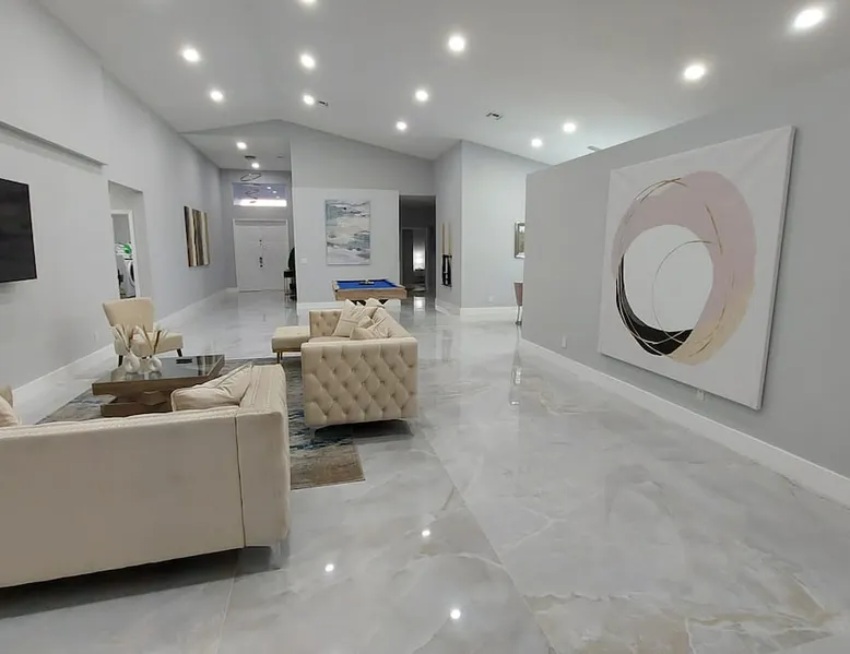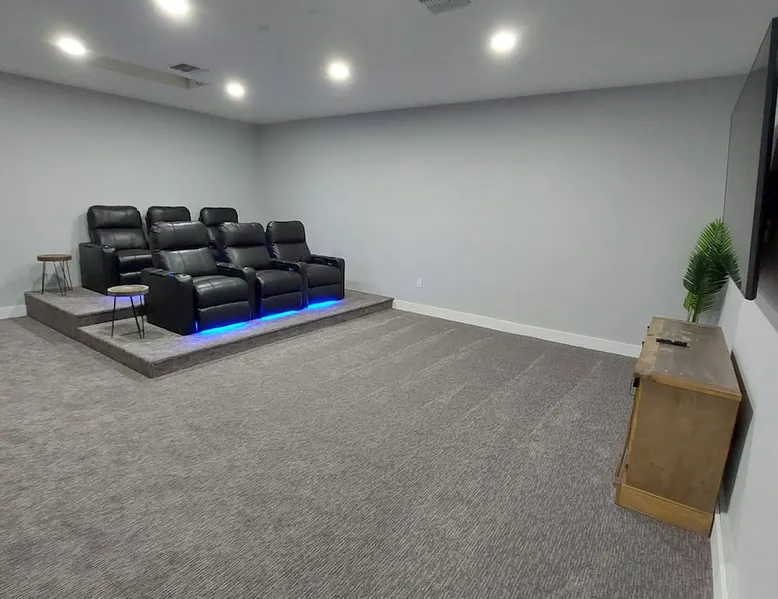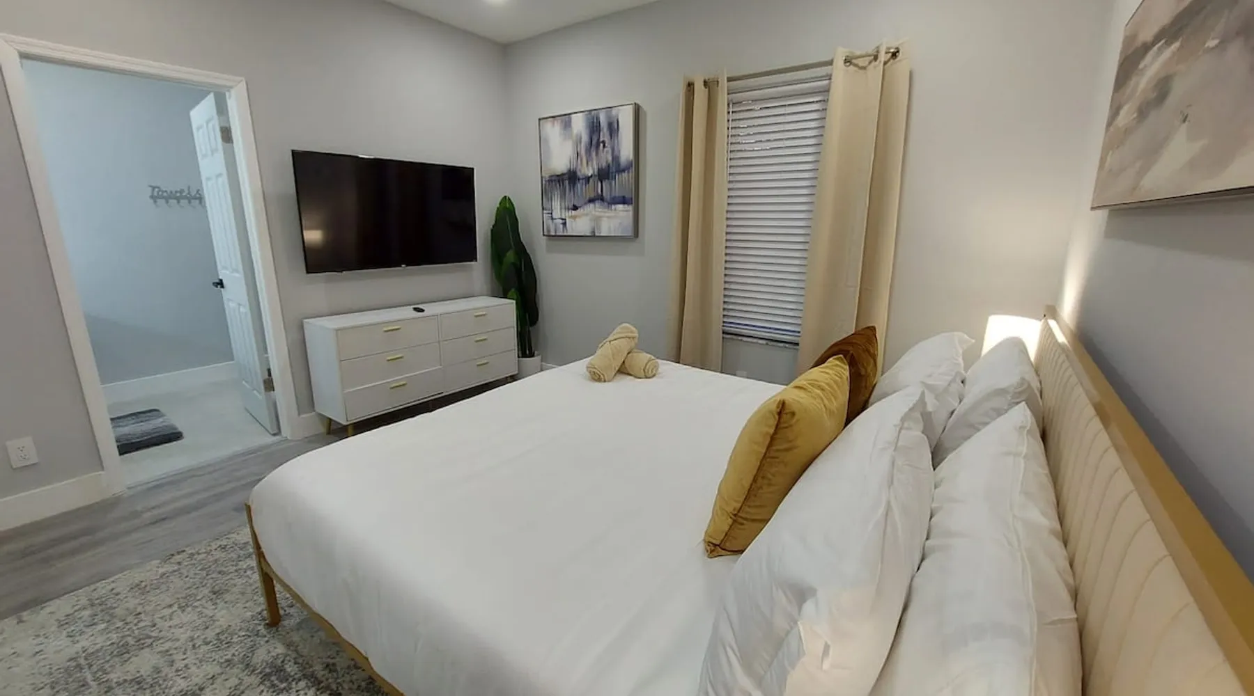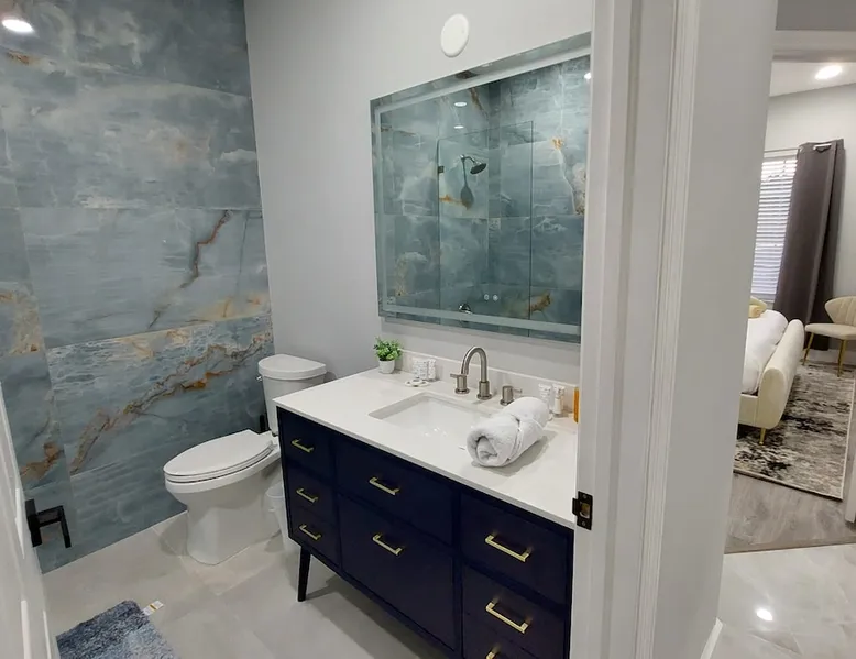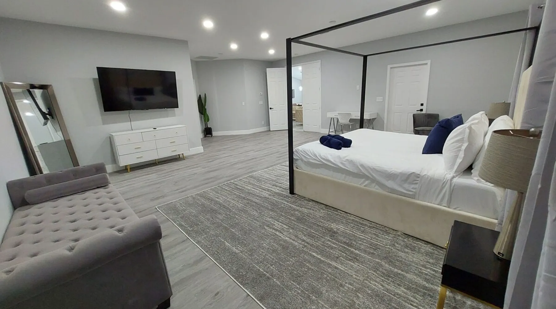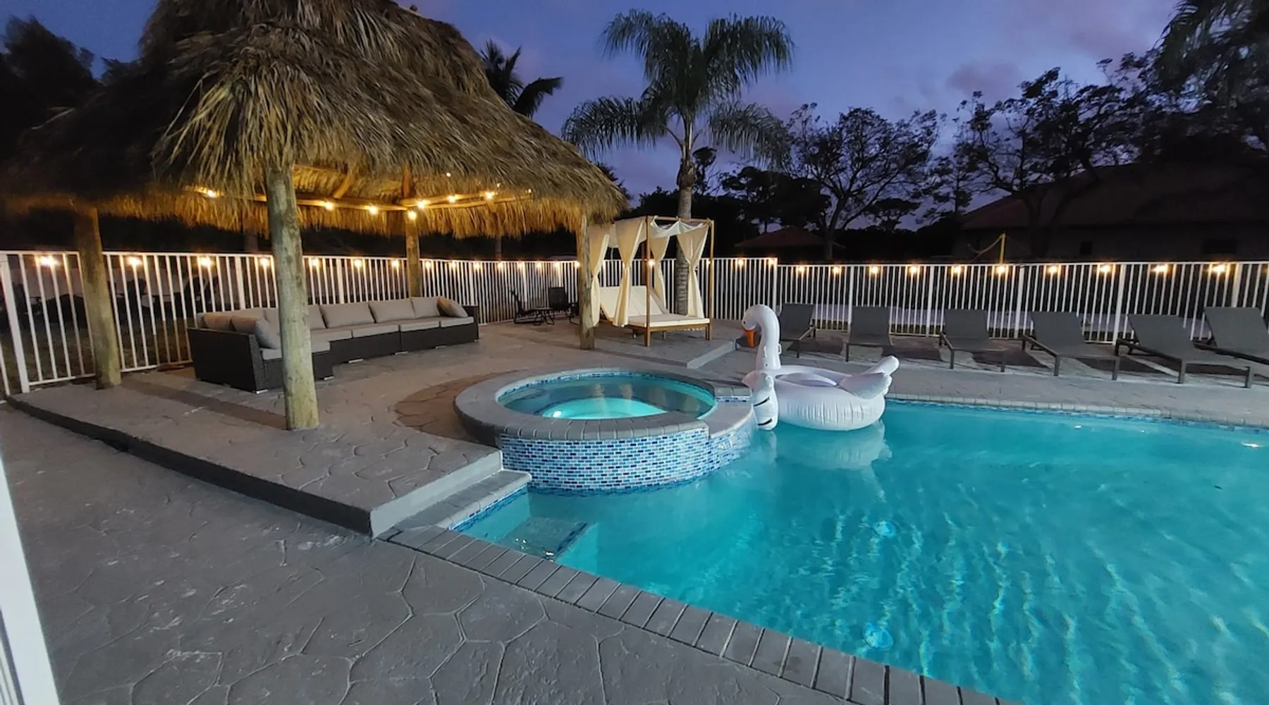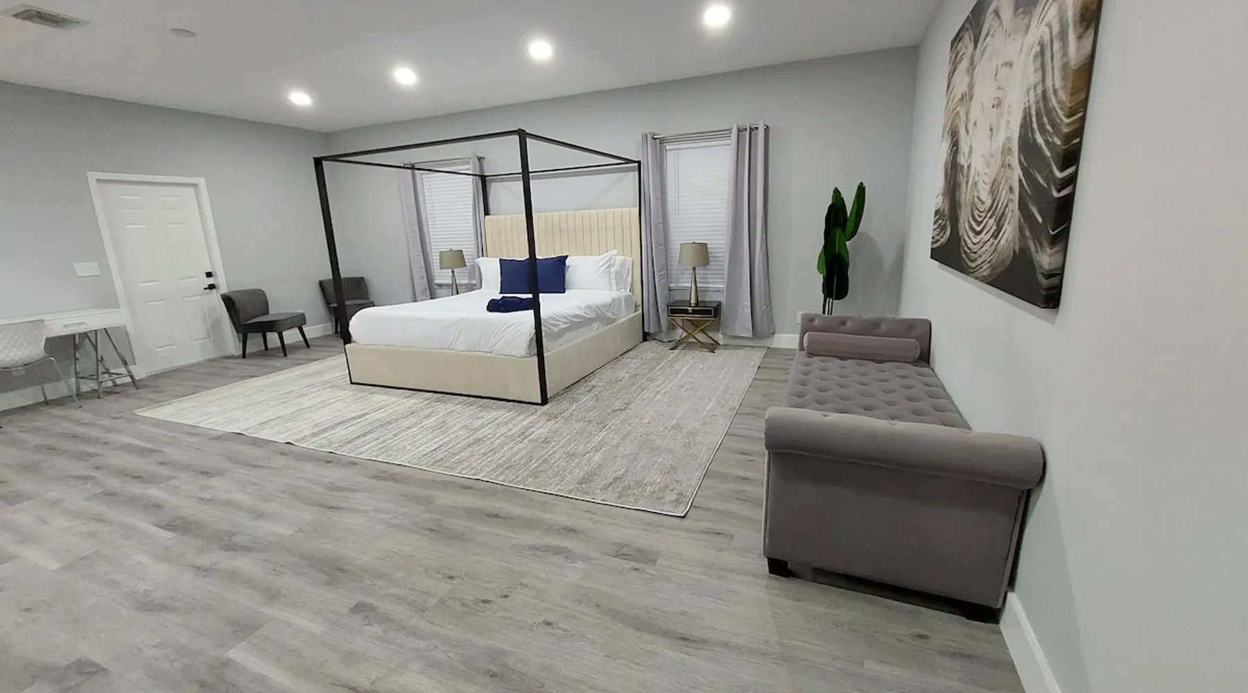 🏡 One-of-a-kind 7000 SQFT villa compound just 1 mile from Boca Raton and 10 minutes to the beach. 🛏️ Features 9 bedrooms, 5 bathrooms, 13 beds, 2 living rooms, and a massive master suite. 🎬 Enjoy a private movie theatre, beach volleyball, and South Florida’s largest 9-hole putting green. 🌴 Lounge in the Tiki Hut with TV, gather by the fire pit, and dive into the brand-new heated pool and Jacuzzi. 🍽️ Includes 2 full kitchens and a separate in-law wing with its own living space. The space Brand New Modern Pool with a Massive Deck and Tanning Ledge, Jacuzzi, Premium Towels, and Linen. Both kitchens are stocked with everything you need, a Full house generator, BBQ Grill, and Outdoor Dining Area. Loungers in the pool and outside the Pool Huge Backyard for enjoying family time together. 5 minute walk to Boca Raton 3 Minute walk to Chabad of Coconut Creek The space HEATED POOL IS INCLUDED IN THE PRICE! The luxurious home is professionally designed by the prominent ShuChai Interior Design Firm to provide a comfortable getaway to all visitors for a perfect stay. Its contemporary setting and outstanding facilities will offer the levels of relaxation and convenience you are looking for in a vacation home. The inviting indoors offers a mix of modern amenities and beautiful furnishing enriched by an abundance of natural light accenting the elegant floors and tastefully picked décor. Every inch of space is well-utilized, which is best visible from the fully equipped kitchen that opens to the entertaining living room and the inviting dining area. Nine highly comfortable bedrooms will provide all the relaxation you need after a long day of South Florida adventures. But wait! The best is yet to come. The fabulous backyard with its large swimming pool, and outdoor dining area under the outdoor canopy and Tiki Hut offers a place where you can soak up the sun, relax, and have hours of fun! ★ LIVING ROOM ★ The living room is perfect for enjoying fun and memorable moments after an eventful day. Find your place on the comfy sofa, grab some snacks and drinks, and enjoy watching your favorite movie. ✔ Comfortable Double Sofa with Pillows ✔ Smart TV with Netflix, and all other smart Apps ✔ Chic Sofa Chairs ✔ Stylish Coffee Tables ✔ Billiard Table It’s not all fun and relaxation in the living room! We have prepared a private workspace where you can set up your laptop and attend an important meeting or a remote learning session. ✔ Office Desk with a Lamp ★ KITCHEN & DINING ★ Want to feel like a MasterChef? Come to the fully equipped kitchen and use its many state-of-the-art cooking appliances, spacious quartz countertops, and ample cabinetry to create tasty homemade meals worthy of the most praised restaurants. ✔ Microwave ✔ Stove ✔ Oven ✔ Refrigerator/Freezer ✔ Ice Maker ✔ Dishwasher ✔ Keurig Coffee Maker ✔ Hot Water Kettle ✔ Blender ✔ Toaster ✔ Glasses ✔ Silverware ✔ Pots & Pans Have a few drinks on the kitchen island while the food is getting ready. Once it's done, serve it on the inviting dining table and enjoy gourmet meals with your friends and family. ✔ Dining Table with Seating for 8 ✔ Kitchen Island with Seating for 5 ★ SLEEPING ARRANGEMENTS - 9 BEDROOMS ★ Retreat to these comfortable bedrooms, designed and furnished to provide you with all the rest needed after a day of adventuring throughout Florida. ♛ Bedroom 1: King-Size Bed ♛ Bedroom 2: King-Size Bed ♛ Bedroom 3: King-Size Bed ♛ Bedroom 4: King-Size Bed ♛ Bedroom 5: King-Size Bed ♛ Bedroom 6: King-Size Bed ♛ Bedroom 7: 2 Queen-Size Bed ♛ Bedroom 8: 2 Queen-Size Bed ♛ Bedroom 9: 1 Bunkbed and pull-out room All bedrooms offer a similar set of amenities: ✔ Premium Pillows, Linens, and Sheets ✔ Smart TVs ✔ Closets with Hangers and Shelves ✔ Dressers with Spacious Drawers ✔ Full-Size Mirrors ✔ Night Stands with Reading Lamps with enabled USB ports for easy charging access ★ BATHROOMS ★ 5 Full bathrooms are stocked with essential toiletries and fresh towels for maximum comfort and convenience. ✔ Spacious Soaking Bathtub ✔ Walk-In Shower ✔ Mirror ✔ Toilet ✔ Towels ✔ Hair Dryer ✔ Essential Toiletries ★ BACKYARD ★ The spacious pool backyard offers a fairy tale outdoor setting. Here you will be able to soak up the sun, catch a breath of fresh air, and unwind in complete privacy under the canopy, surrounded by comfortable amenities for both children and adults. ✔ Swimming Pool with Sun Lounges (Pool Heating included in price) Pool Safety Rules (Strictly Enforced): 👉 The pool safety fence will remain up. 👉 Children under 18 must be supervised by an adult at all times when in or around the pool. 👉 There is no lifeguard on duty – guests use the pool entirely at their own risk. ✔ Jacuzzi ✔ Outdoor Tiki Hut with TV ✔ Lounge Seating Area ✔ Ping Pong Table ✔ Fire Pit ✔ Volleyball ✔ Mini-Golf ✔ Outdoor Dining Area Look no further than our luxurious home for your memorable Pompano Beach, FL visit. We look forward to you experiencing its complete comfort and coziness. 🚗 Important Parking Rule: The property allows a maximum of 4 cars only on-site. Additional vehicles must be parked off-site in designated public parking areas. This rule is strictly enforced, and by booking, you agree to comply. Guest access The home is exclusively yours, without interruption for the duration of your stay, so relax, unwind, and make yourself at home. Other than the already mentioned amenities, our home also comes with: ✔ High-Speed Wi-Fi ✔ Air Conditioning ✔ Heating ✔ Washer/Dryer ✔ Iron/Board ✔ Free Private Parking Other things to note ★ COVID-19 SANITIZATION ★ The Heath, safety, and well-being of our guests are of utmost importance. For this reason, we use a thorough 50-point cleaning process after each check-out. ★ NO SMOKING INSIDE ★ Please refrain from smoking inside the home! It is prohibited. Any smoking e