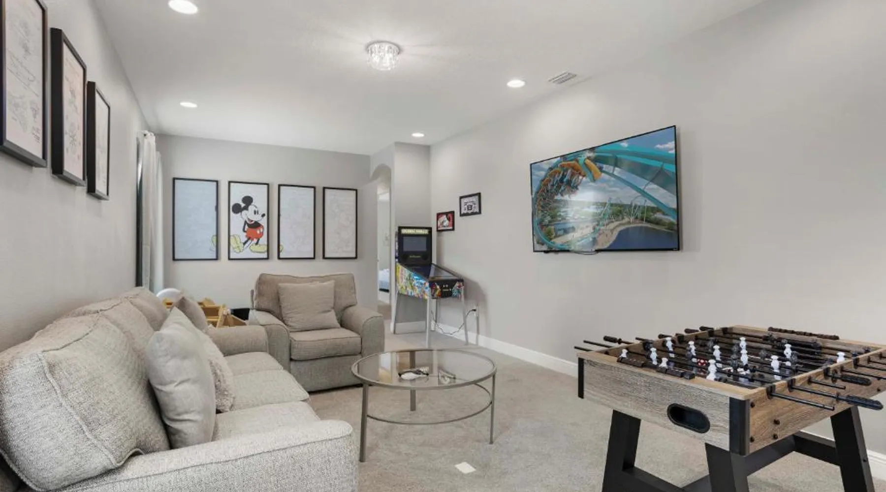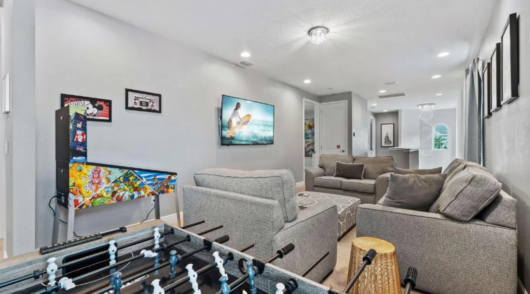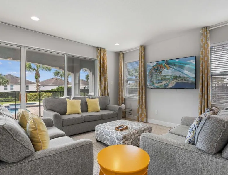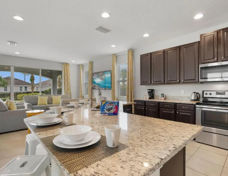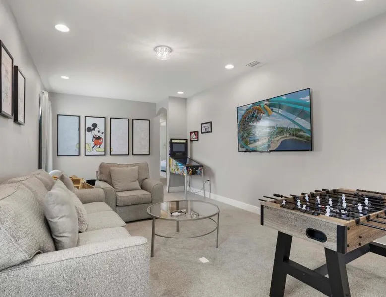 Spacious Accommodations: 7410 Marker Avenue in Four Corners offers a spacious holiday home with six bedrooms and five bathrooms. The property includes a private pool and outdoor swimming pool, providing ample space for relaxation. Modern Amenities: Guests enjoy free WiFi, air-conditioning, and a fully equipped kitchen with a dishwasher, microwave, and oven. Additional amenities include a washing machine, balcony, patio, and barbecue area. Convenient Location: Located 25 mi from Orlando International Airport, the property is close to attractions such as Disney's Animal Kingdom (6.8 mi) and Disney's Magic Kingdom (9.9 mi). Free on-site parking is available. Highly rated by guests. This holiday home features a private pool. Boasting a private entrance, this spacious holiday home also features 6 separate bedrooms and 5 bathrooms with a bath and a shower. Guests will find a stovetop, a refrigerator, a dishwasher and kitchenware in the well-fitted kitchen. The holiday home also comes with a barbecue. Featuring a patio, this holiday home also features air conditioning, a washing machine and a TV with cable channels. The unit has 8 beds.
