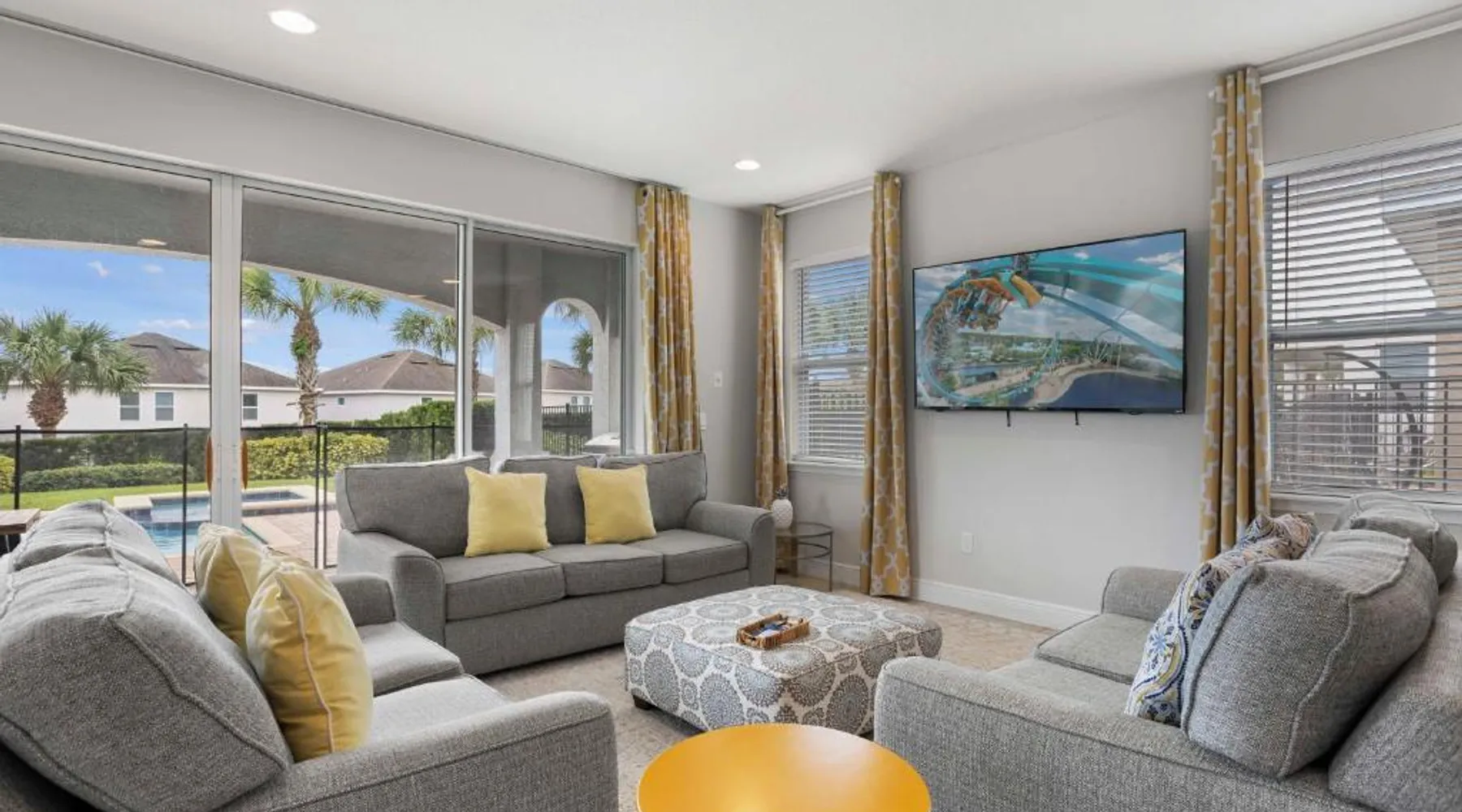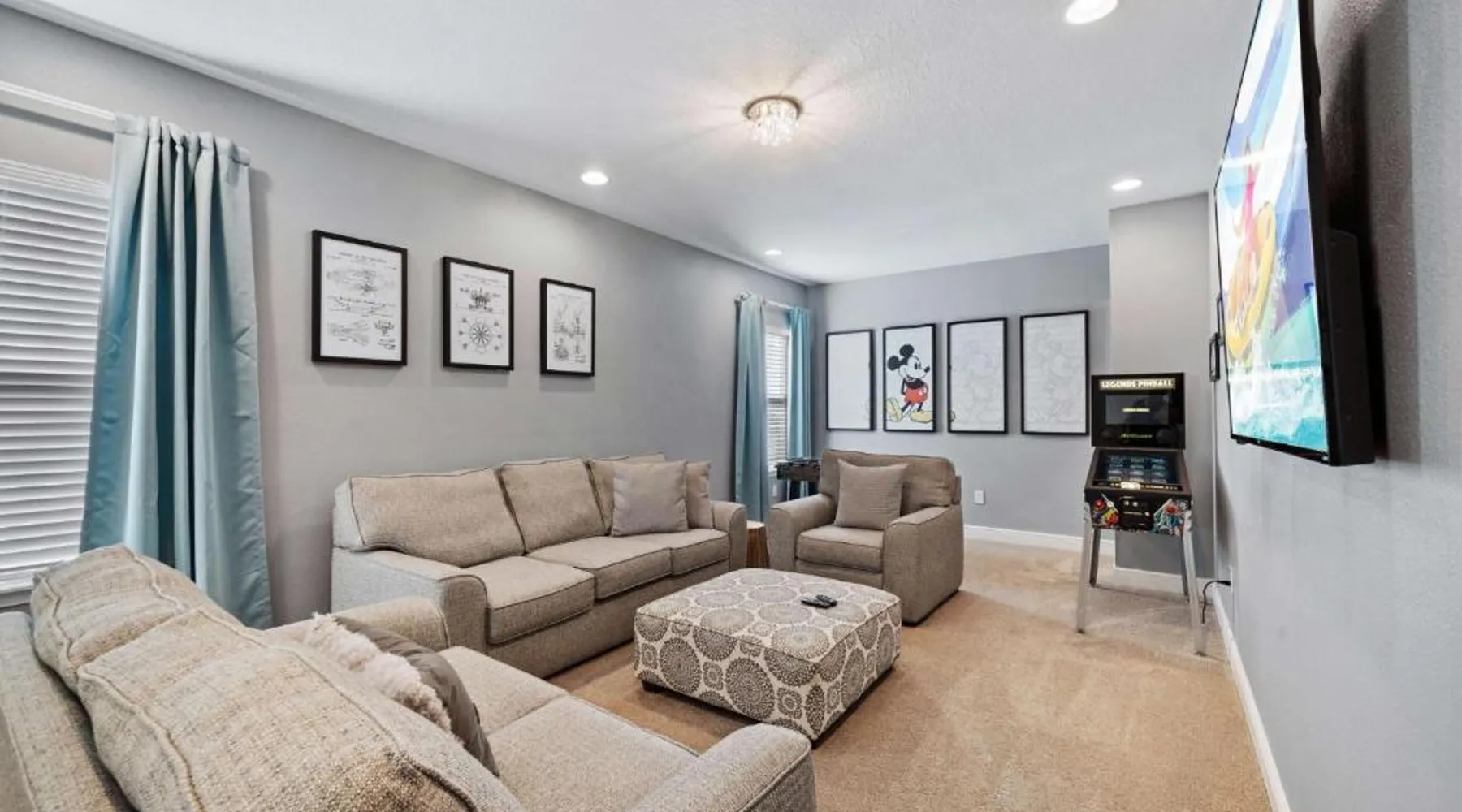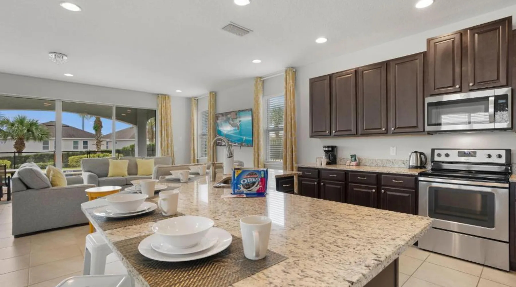 Spacious Accommodations: 7410 Marker Avenue in Four Corners offers a spacious holiday home with six bedrooms and five bathrooms. The property includes a private pool and outdoor swimming pool, providing ample space for relaxation. Modern Amenities: Guests enjoy free WiFi, air-conditioning, and a fully equipped kitchen with a dishwasher, microwave, and oven. Additional amenities include a washing machine, balcony, patio, and barbecue area. Convenient Location: Located 25 mi from Orlando International Airport, the property is close to attractions such as Disney's Animal Kingdom (6.8 mi) and Disney's Magic Kingdom (9.9 mi). Free on-site parking is available. Highly rated by guests. This holiday home features a private pool. Boasting a private entrance, this spacious holiday home also features 6 separate bedrooms and 5 bathrooms with a bath and a shower. Guests will find a stovetop, a refrigerator, a dishwasher and kitchenware in the well-fitted kitchen. The holiday home also comes with a barbecue. Featuring a patio, this holiday home also features air conditioning, a washing machine and a TV with cable channels. The unit has 8 beds.