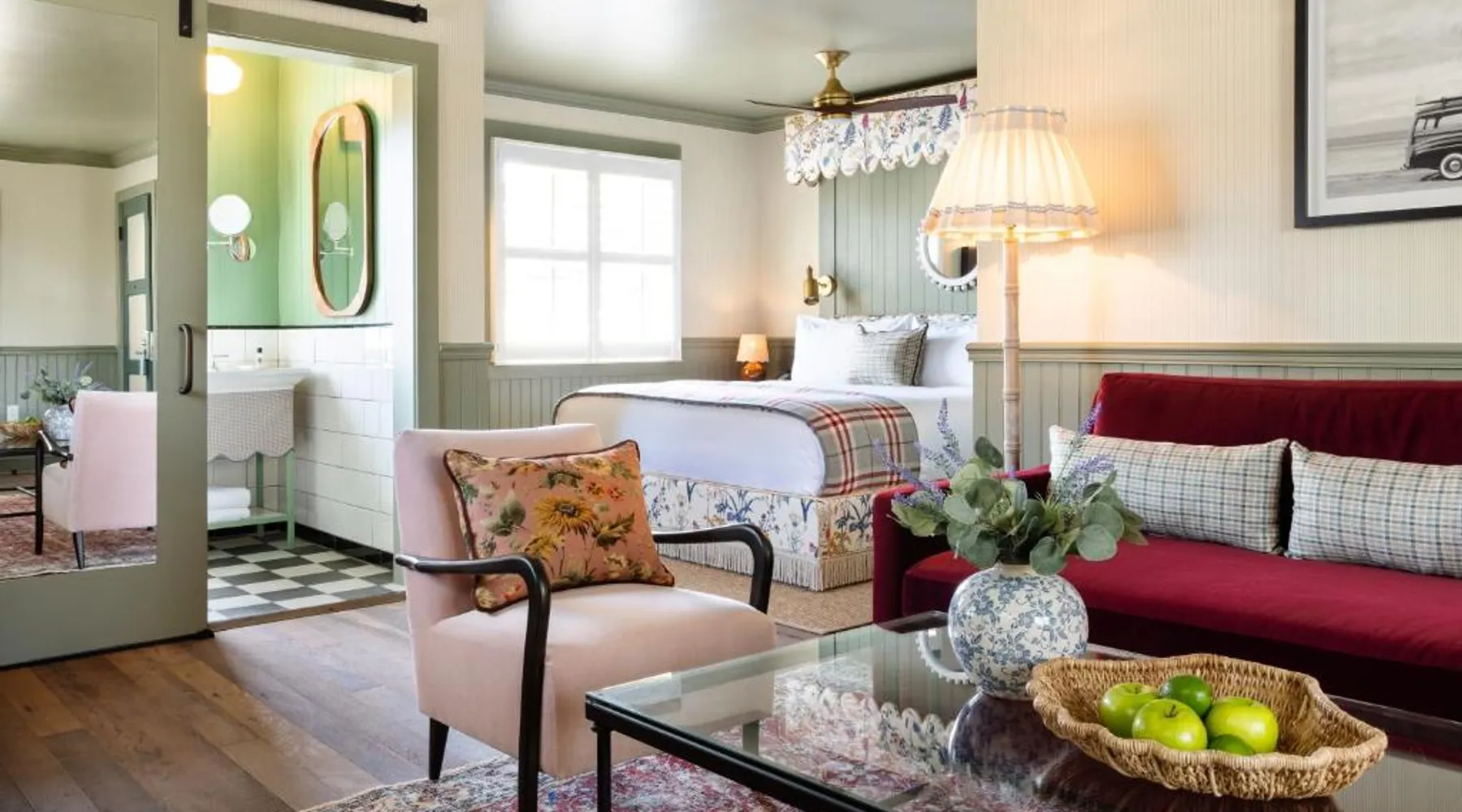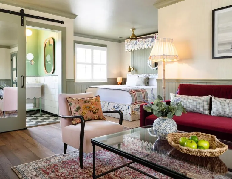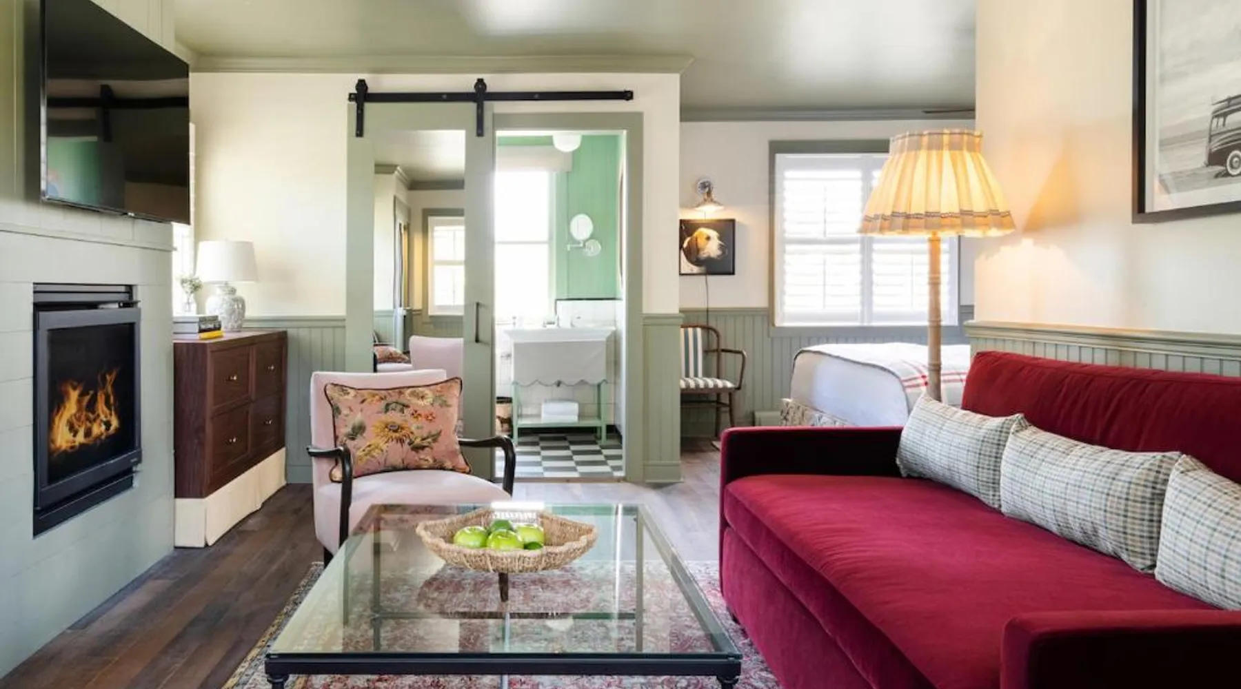 Comfortable Accommodations: Le Petit Pali at 8th Ave in Carmel offers 4-star comfort with free WiFi, a garden, terrace, and complimentary bicycles. Each room includes a private bathroom, bathrobes, and a mini-bar. Exceptional Facilities: Guests enjoy a 24-hour front desk, concierge service, outdoor seating area, and breakfast in the room. Additional amenities include a fireplace, sofa bed, and free toiletries. Prime Location: Located 6.2 mi from Monterey Regional Airport, the hotel is a short walk from Carmel Beach and near attractions such as Carmel Mission and Point Lobos State Reserve. Highly rated for its attentive staff and excellent breakfast. Guests will have a special experience as this suite features a fireplace. This suite is consisted of of 1 living room, 1 separate bedroom and 1 bathroom with a shower and free toiletries. The suite offers a mini-bar, a tea and coffee maker, a seating area along with a safe deposit box. The unit offers 1 bed.