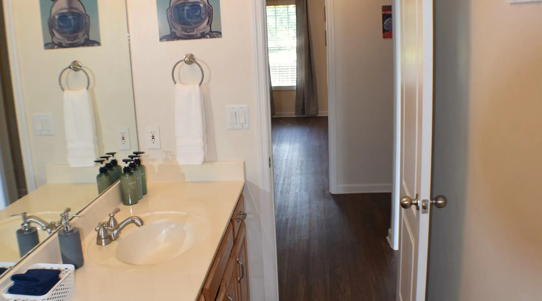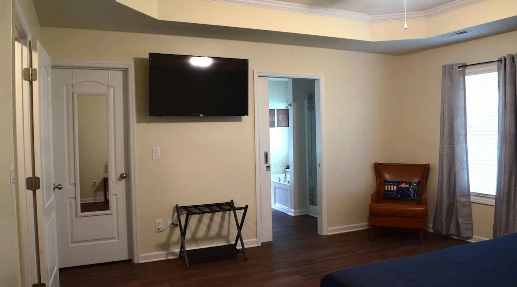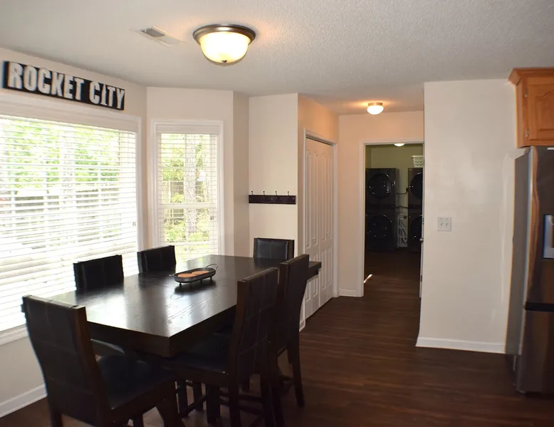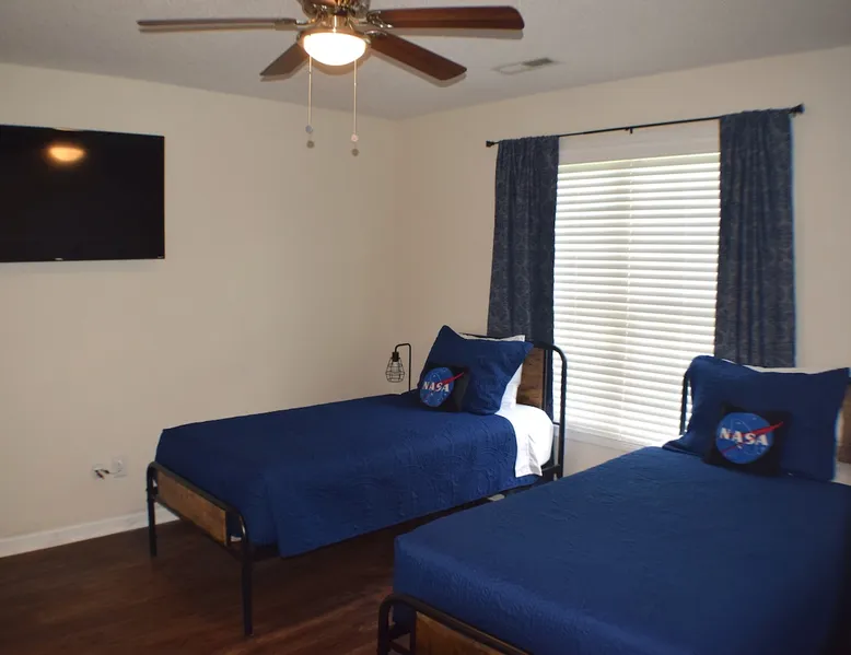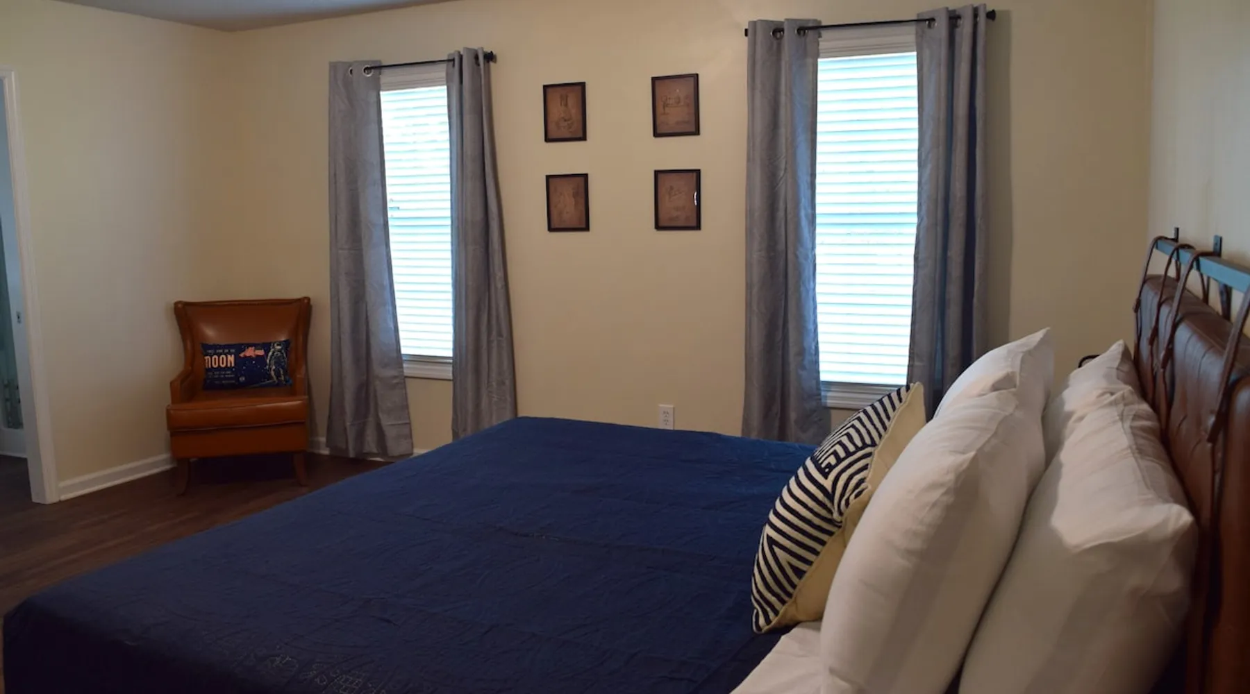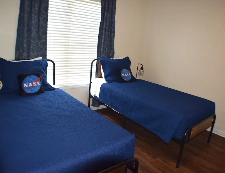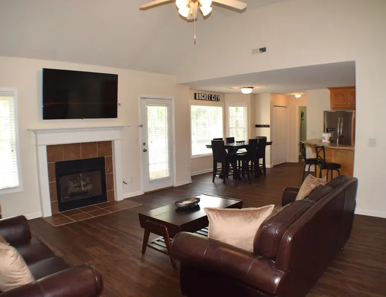 Title: Space Oddity - Charming Oasis in the Heart of Huntsville and Madison cities ---in the center of the combined city. Welcome to our space oddity just minutes from everything in Huntsville and with a fun but tasteful Space theme! Our location is perfect and brings the best of the city of Huntsville and Madison within a 10 minute radius while still providing a nice, safe neighborhood. The property has a tankless water heater for bigger groups and TVs in every bedroom. The space Location: Conveniently situated just minutes from Huntsville's Research Park, our property offers the best of both worlds—proximity to the city's pulse and a peaceful escape when you need it. The house could not be more accessible, the neighborhood is located just off direct access from Research Park Blvd going south or from Hwy 53 exit or Plumber Rd exit going north on Research Park Blvd. Accommodation: Step into a meticulously designed space that seamlessly combines modern comfort with classic charm with a fun Rocket City theme. The 4 bedrooms and 2 bathrooms ensure ample space for relaxation and rejuvenation. The living area is a stylish haven, perfect for unwinding after a day of exploration. Amenities: Our property is thoughtfully equipped with everything you need for a delightful stay. From a fully stocked kitchen for culinary adventures to high-speed Wi-Fi for seamless connectivity, we've taken care of the details. Indulge in a restful night's sleep on premium mattresses, and wake up to the aroma of freshly brewed coffee. And then take an endless hot shower powered by our tankless water heater. Entertainment: For your entertainment pleasure, our living room has a 65-inch smart TV, perfect for movie nights or catching up on your favorite shows. The master bedroom and each remaining bedroom feature a 50-inch TV for your viewing enjoyment. High-Speed Fiber Internet: Stay connected effortlessly with our high-speed fiber internet. Whether you're streaming movies, attending virtual meetings, or simply browsing the web, our fiber internet ensures a seamless and reliable connection throughout your stay. Endless hot water: The property has a gas tankless water heater that allows for endless hot water. There will be no worries about how long each shower has to be. Laundry Convenience: We understand the importance of convenience, especially when it comes to laundry. That's why our property boasts not one, but two sets of washer/dryers, ensuring that you can get your laundry done in a hurry and make the most of your time exploring Huntsville. Local Recommendations: Our guidebook includes insider tips on the best local eateries, attractions, and hidden gems. Nearby Attractions: 3.0 miles: Oakwood University 3.5 miles: Providence (dining, bars) 3.7 miles: Indian Creek Greenway North (walking trail) 4.2 miles: The Mid-City District (Top Golf, Starbucks, High Point Climbing, The Camp - live music, Salt Factory Pub, and other shops and restaurants) 4.5 miles: The Orion Amphitheater 4.7 miles: Cummings Research Park 5.0 miles: The University of Alabama - Huntsville (UAH) 6.4 miles: Bridge Street Town Centre (shopping, cinema, restaurants) 6.7 miles: Redstone Arsenal Gate 9 Visitors Center 7.1 miles: Alabama A&M 7.1 miles: Stovehouse (restaurants & entertainment) 7.4 miles: Downtown Huntsville 7.4 miles: Von Braun Center 8.2 miles: Madison Hospital 8.7 miles: Huntsville Hospital 9.5 miles: Trash Pandas Baseball @ Toyota Field 9.7 miles: Town Madison (dining) 13.1 miles: Huntsville International Airport (still within 10 minutes if you drive super fast) Groceries: 2.8 miles: Publix Super Market 3.5 miles: Walmart Supercenter Guest access Upon arrival at our Space Oddity, guests enjoy the utmost convenience and privacy. With a seamless self-check-in process, access to the entire house is granted through a secure door code, providing you the freedom to settle in at your own pace. No need to coordinate key exchanges or worry about how late past check-in times; our straightforward system ensures a hassle-free start to your stay. Once inside, you'll find that every corner of the house is yours to explore and make your own. Whether you're relaxing in the cozy living area, preparing a meal in the fully equipped kitchen, or unwinding in the comfort of your bedroom, the entire space is designed for you to feel at home from the moment you arrive. Other things to note We have installed a Level 2 EV Charger. It is a J1772 connector and also has a Tesla (NACS) adapter and charges up to 50A.