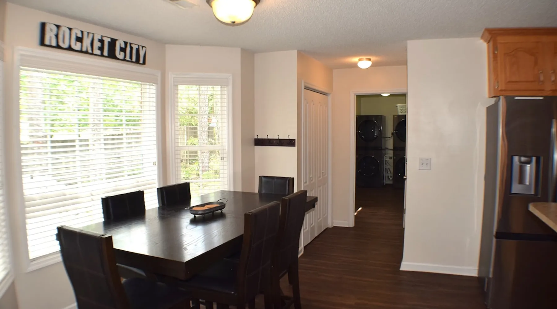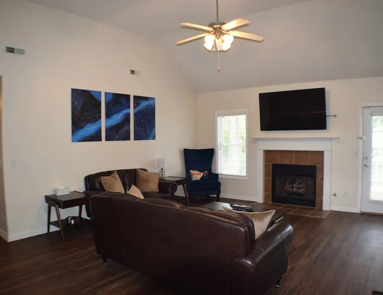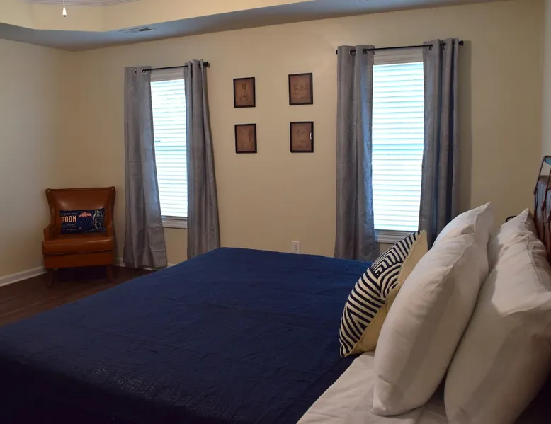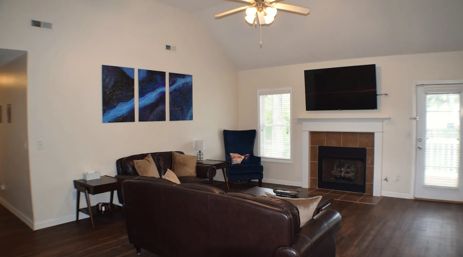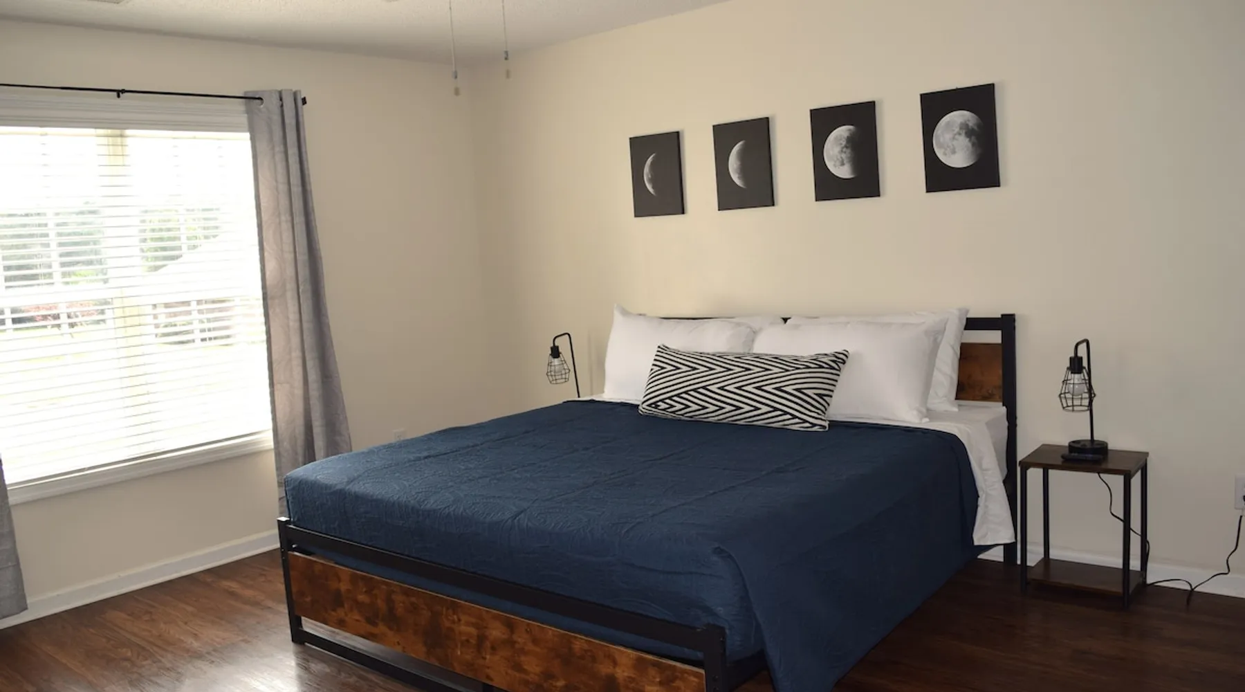 Title: Space Oddity - Charming Oasis in the Heart of Huntsville and Madison cities ---in the center of the combined city. Welcome to our space oddity just minutes from everything in Huntsville and with a fun but tasteful Space theme! Our location is perfect and brings the best of the city of Huntsville and Madison within a 10 minute radius while still providing a nice, safe neighborhood. The property has a tankless water heater for bigger groups and TVs in every bedroom. The space Location: Conveniently situated just minutes from Huntsville's Research Park, our property offers the best of both worlds—proximity to the city's pulse and a peaceful escape when you need it. The house could not be more accessible, the neighborhood is located just off direct access from Research Park Blvd going south or from Hwy 53 exit or Plumber Rd exit going north on Research Park Blvd. Accommodation: Step into a meticulously designed space that seamlessly combines modern comfort with classic charm with a fun Rocket City theme. The 4 bedrooms and 2 bathrooms ensure ample space for relaxation and rejuvenation. The living area is a stylish haven, perfect for unwinding after a day of exploration. Amenities: Our property is thoughtfully equipped with everything you need for a delightful stay. From a fully stocked kitchen for culinary adventures to high-speed Wi-Fi for seamless connectivity, we've taken care of the details. Indulge in a restful night's sleep on premium mattresses, and wake up to the aroma of freshly brewed coffee. And then take an endless hot shower powered by our tankless water heater. Entertainment: For your entertainment pleasure, our living room has a 65-inch smart TV, perfect for movie nights or catching up on your favorite shows. The master bedroom and each remaining bedroom feature a 50-inch TV for your viewing enjoyment. High-Speed Fiber Internet: Stay connected effortlessly with our high-speed fiber internet. Whether you're streaming movies, attending virtual meetings, or simply browsing the web, our fiber internet ensures a seamless and reliable connection throughout your stay. Endless hot water: The property has a gas tankless water heater that allows for endless hot water. There will be no worries about how long each shower has to be. Laundry Convenience: We understand the importance of convenience, especially when it comes to laundry. That's why our property boasts not one, but two sets of washer/dryers, ensuring that you can get your laundry done in a hurry and make the most of your time exploring Huntsville. Local Recommendations: Our guidebook includes insider tips on the best local eateries, attractions, and hidden gems. Nearby Attractions: 3.0 miles: Oakwood University 3.5 miles: Providence (dining, bars) 3.7 miles: Indian Creek Greenway North (walking trail) 4.2 miles: The Mid-City District (Top Golf, Starbucks, High Point Climbing, The Camp - live music, Salt Factory Pub, and other shops and restaurants) 4.5 miles: The Orion Amphitheater 4.7 miles: Cummings Research Park 5.0 miles: The University of Alabama - Huntsville (UAH) 6.4 miles: Bridge Street Town Centre (shopping, cinema, restaurants) 6.7 miles: Redstone Arsenal Gate 9 Visitors Center 7.1 miles: Alabama A&M 7.1 miles: Stovehouse (restaurants & entertainment) 7.4 miles: Downtown Huntsville 7.4 miles: Von Braun Center 8.2 miles: Madison Hospital 8.7 miles: Huntsville Hospital 9.5 miles: Trash Pandas Baseball @ Toyota Field 9.7 miles: Town Madison (dining) 13.1 miles: Huntsville International Airport (still within 10 minutes if you drive super fast) Groceries: 2.8 miles: Publix Super Market 3.5 miles: Walmart Supercenter Guest access Upon arrival at our Space Oddity, guests enjoy the utmost convenience and privacy. With a seamless self-check-in process, access to the entire house is granted through a secure door code, providing you the freedom to settle in at your own pace. No need to coordinate key exchanges or worry about how late past check-in times; our straightforward system ensures a hassle-free start to your stay. Once inside, you'll find that every corner of the house is yours to explore and make your own. Whether you're relaxing in the cozy living area, preparing a meal in the fully equipped kitchen, or unwinding in the comfort of your bedroom, the entire space is designed for you to feel at home from the moment you arrive. Other things to note We have installed a Level 2 EV Charger. It is a J1772 connector and also has a Tesla (NACS) adapter and charges up to 50A.