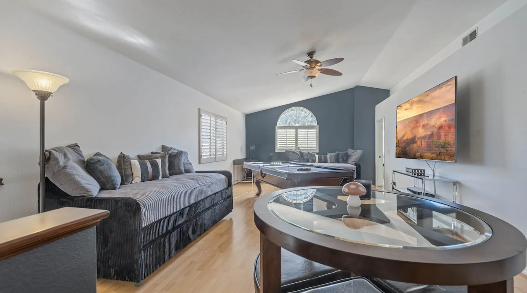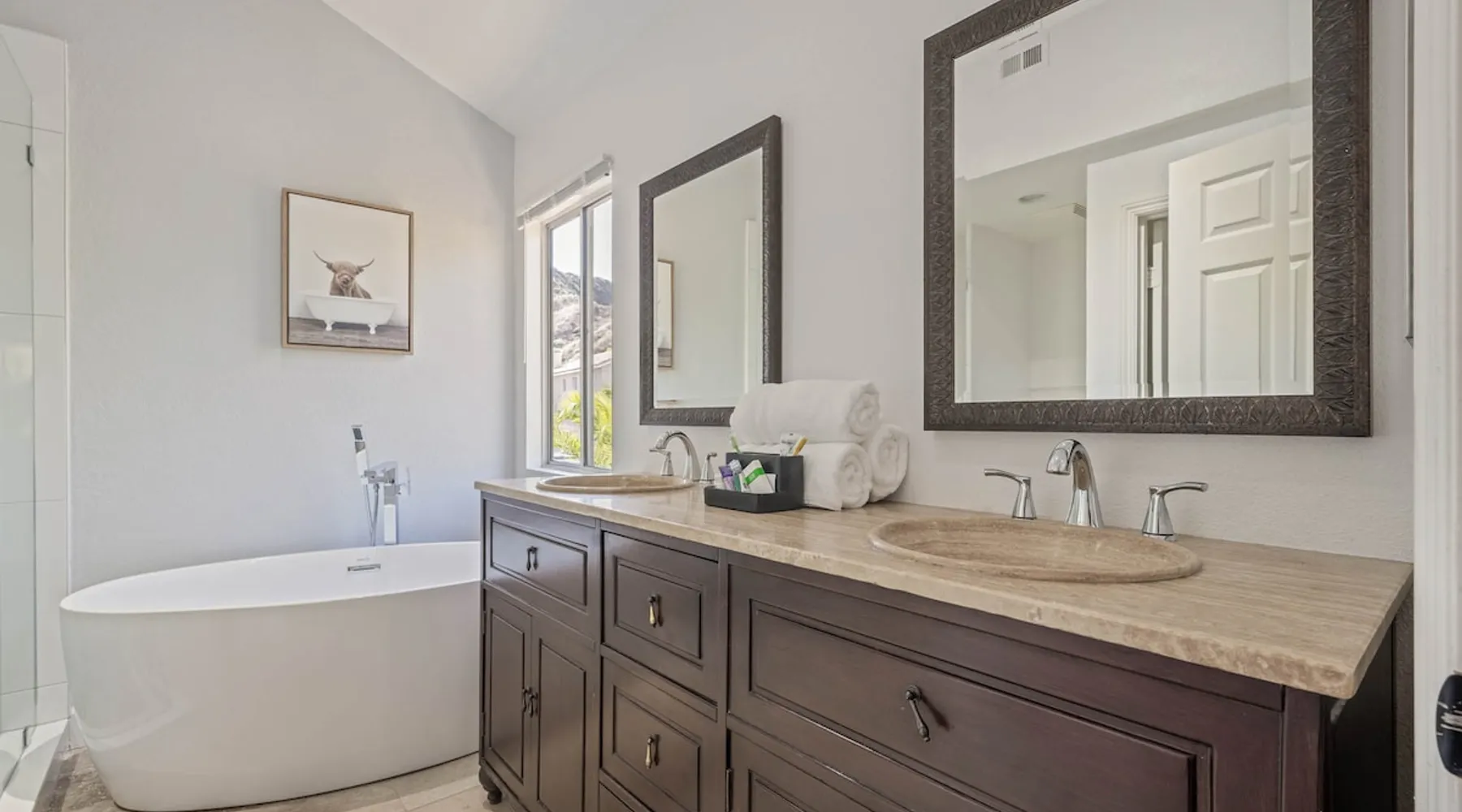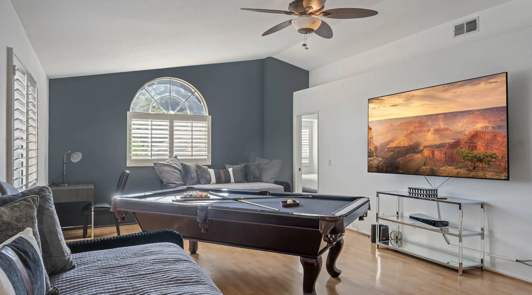 Bring the whole family to this great place with lots of room for fun. A wonder home away from home. The space Whether you’re planning a family reunion, a fun-filled getaway with friends, or simply looking to escape the hustle and bustle of everyday life, this property has everything you need for an enjoyable stay. A Home Away from Home As you step inside, you’ll be greeted by a warm and inviting atmosphere. The open-concept living area features plush seating and a large flat-screen TV—perfect for movie nights after a day of exploration. The fully equipped kitchen boasts modern appliances and ample counter space, making it easy to whip up delicious meals together. Enjoy your culinary creations at the dining table that seats everyone comfortably or take your feast outside to the patio for al fresco dining under the stars. Relaxation Awaits: Pool & Spa Step outside into your own private oasis! The backyard is designed for ultimate relaxation and fun. Dive into the sparkling pool on hot summer days or unwind in the bubbling spa as you soak away your cares. The pool area is surrounded by comfortable lounge chairs where you can bask in the sun or enjoy a good book while keeping an eye on the kids splashing around. For those who love outdoor cooking, there’s also a BBQ grill ready for sizzling up some burgers or veggies! Explore Castaic: Adventure Awaits! While this home offers everything you need for a fantastic stay, don’t forget to explore all that Castaic has to offer! Here are just a few activities nearby: Castaic Lake State Recreation Area: Just minutes away, this expansive lake offers opportunities for fishing, boating, hiking, and picnicking. Rent kayaks or paddleboards for an exciting day on the water! Six Flags Magic Mountain: Thrill-seekers will love being only a short drive from one of California’s premier amusement parks. Experience world-class roller coasters and attractions that cater to all ages. Local Parks: Enjoy family-friendly outings at nearby parks such as Castaic Sports Complex or Valencia Heritage Park where you can find playgrounds, sports fields, and walking trails. Shopping & Dining: Explore local shops and restaurants in nearby Santa Clarita. From casual eateries to fine dining options, there’s something to satisfy every palate. Wine Tasting: If you’re looking for something more relaxing, consider taking a short drive out to the Santa Ynez Valley for wine tasting tours at some of California’s finest vineyards. Book Your Stay Today! Don’t miss out on creating cherished family memories in this delightful Castaic vacation rental home! With its perfect blend of comfort and excitement along with nearby attractions that cater to all interests—this is truly an ideal destination for your next family getaway. Other things to note Short term bookings: Spa heating is $59 per session (1-4 hours) and pool heating (spa heating is automatically included if the pool heating is purchased) is $129 per day each day you booked; 3-day minimum (as it takes one day to heat). Please let us know what days and times you want the spa/pool heated so we can schedule it for your stay. For rentals of 28 days or longer, a flat, non-refundable utilities fee is required. This fee is calculated based on the size of the property and seasonal usage, and must be paid upfront. This home is pet friendly and there is a $250 pet cleaning fee. This fee is per pet. Important Note for Late or Last-Minute Bookings: Thank you for your reservation! Please note that for bookings made after 4 PM or for same-day arrivals, we may not always have time to fully refresh the property before your check-in, depending on the timing of your reservation. If you notice anything that needs attention upon arrival, please don’t hesitate to message us — we’re happy to send someone out the next day to take care of it. Your comfort is our priority, and we’ll do our best to ensure you have a great stay.