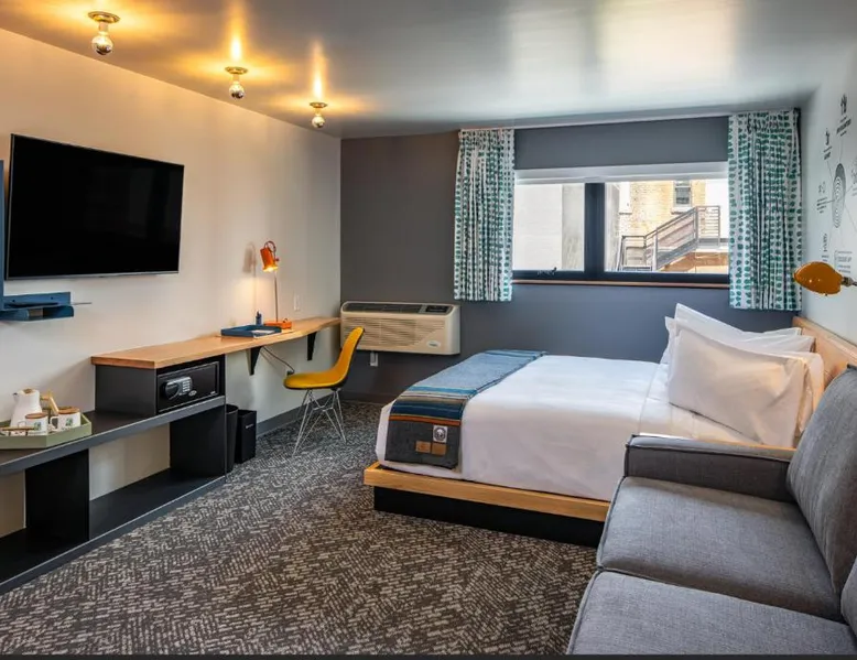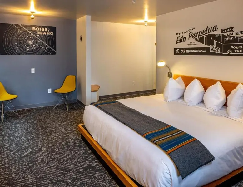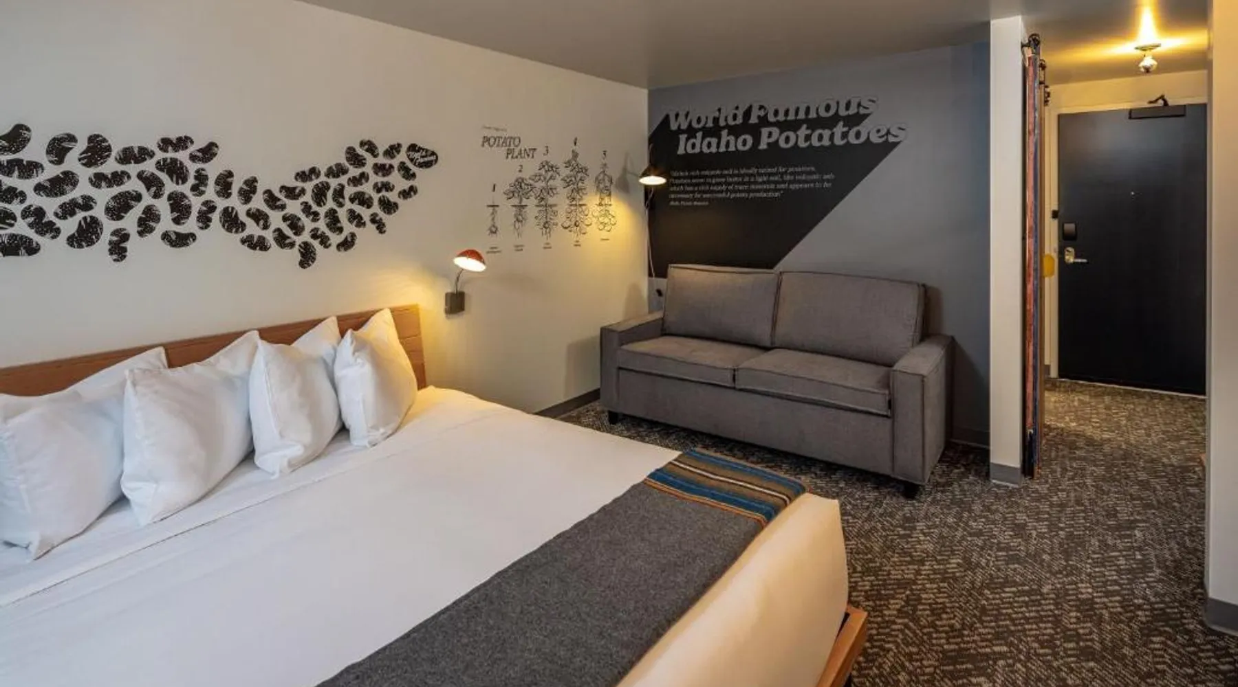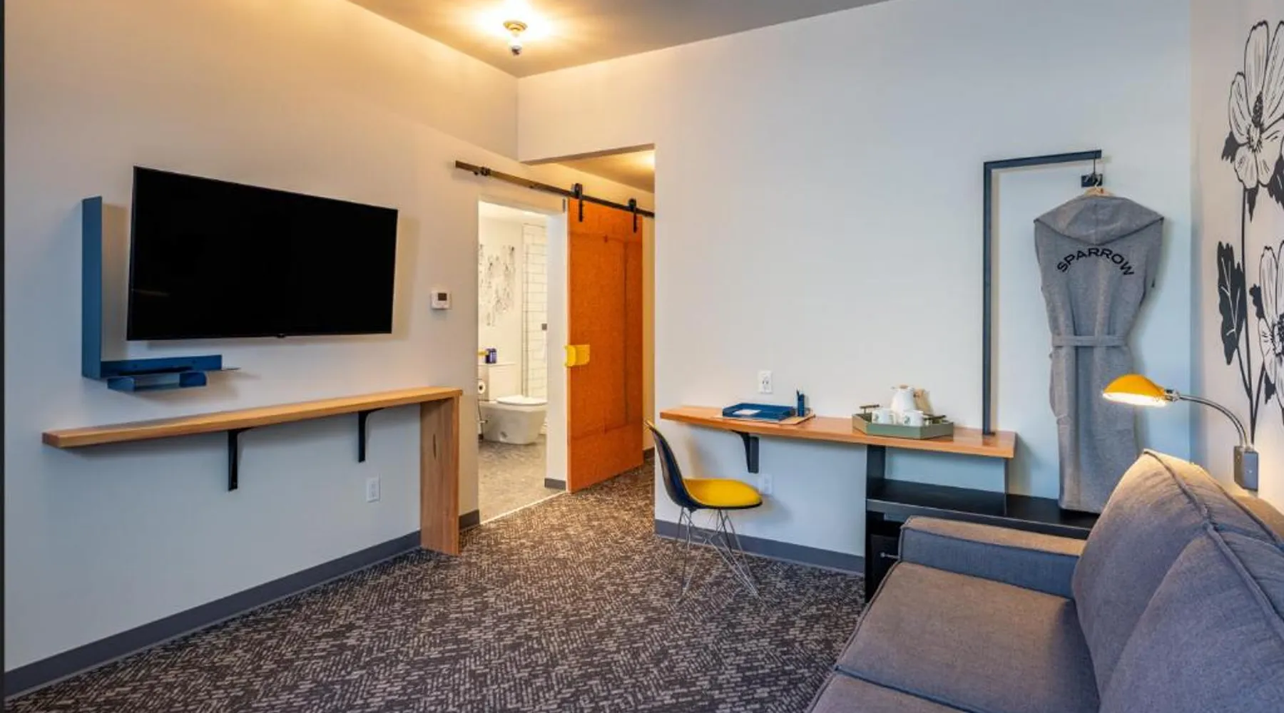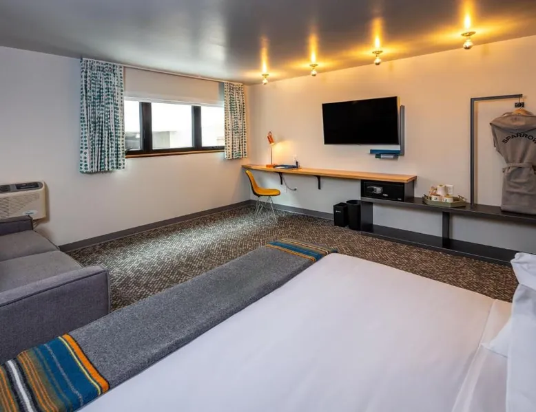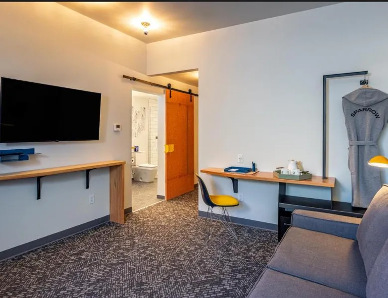 Comfortable Accommodations: The SPARROW in Boise offers family rooms with modern amenities including bathrobes, hairdryers, refrigerators, work desks, and free toiletries. Each room features a seating area and a TV, ensuring a pleasant stay. Dining Experience: The family-friendly restaurant serves local and international cuisines with vegetarian, gluten-free, and dairy-free options. Guests can enjoy lunch and dinner in a modern ambiance, complemented by free WiFi throughout the property. Facilities and Services: The hotel offers a fitness center, terrace, lounge, outdoor fireplace, and coffee shop. Additional amenities include a 24-hour front desk, electric vehicle charging station, and paid on-site private parking. Prime Location: Located 3.7 mi from Boise Airport, The SPARROW is a short walk from Boise Center and close to attractions such as Boise Art Museum and Zoo Boise. Guests appreciate the convenient location and nearby shops. The double room is furnished with a desk and a seating area. The unit offers 1 bed.
