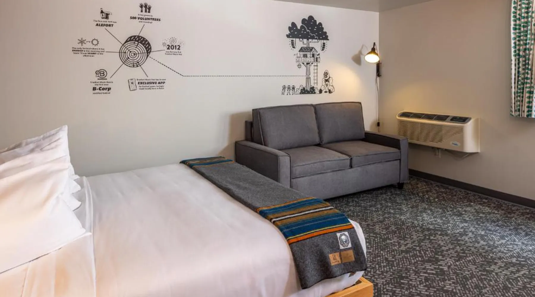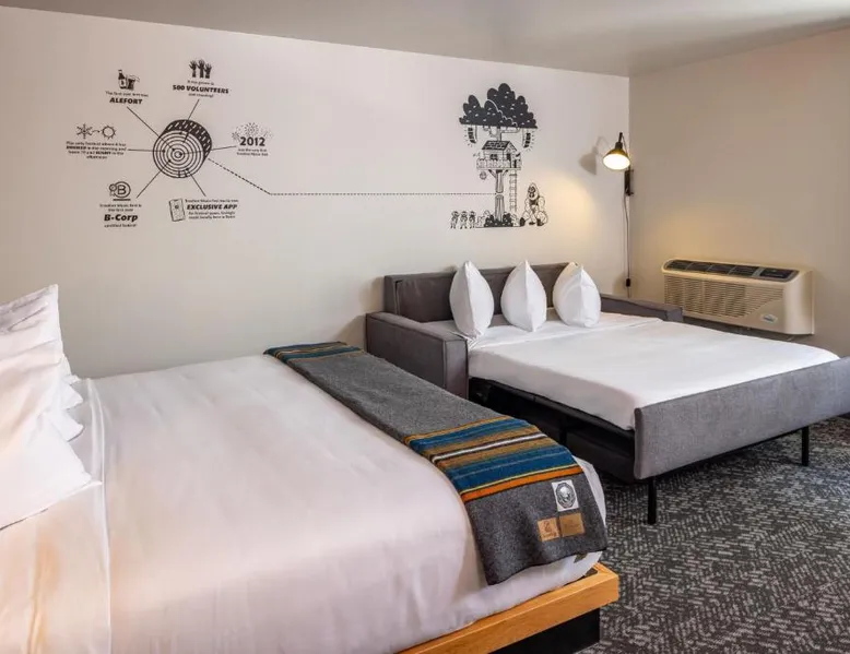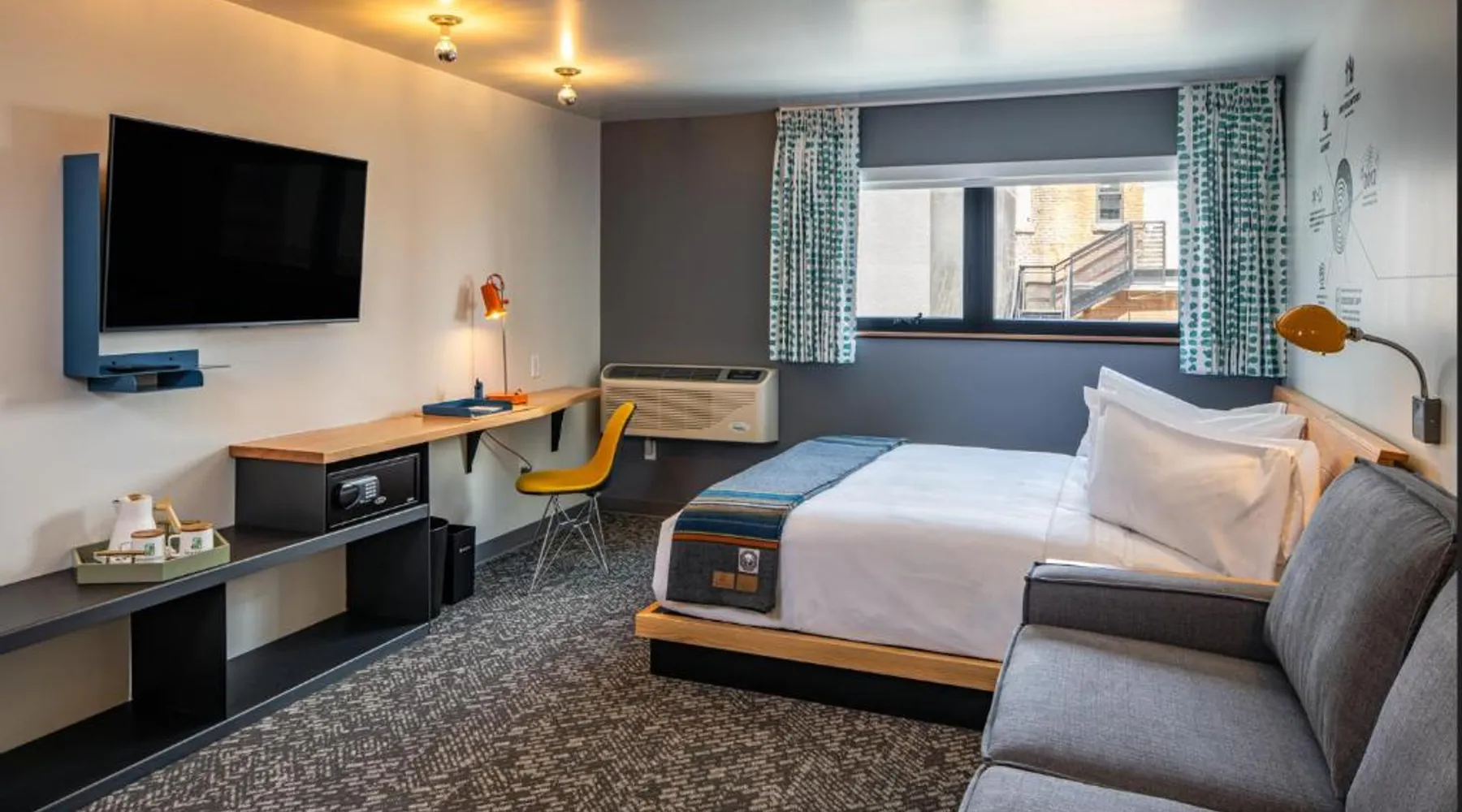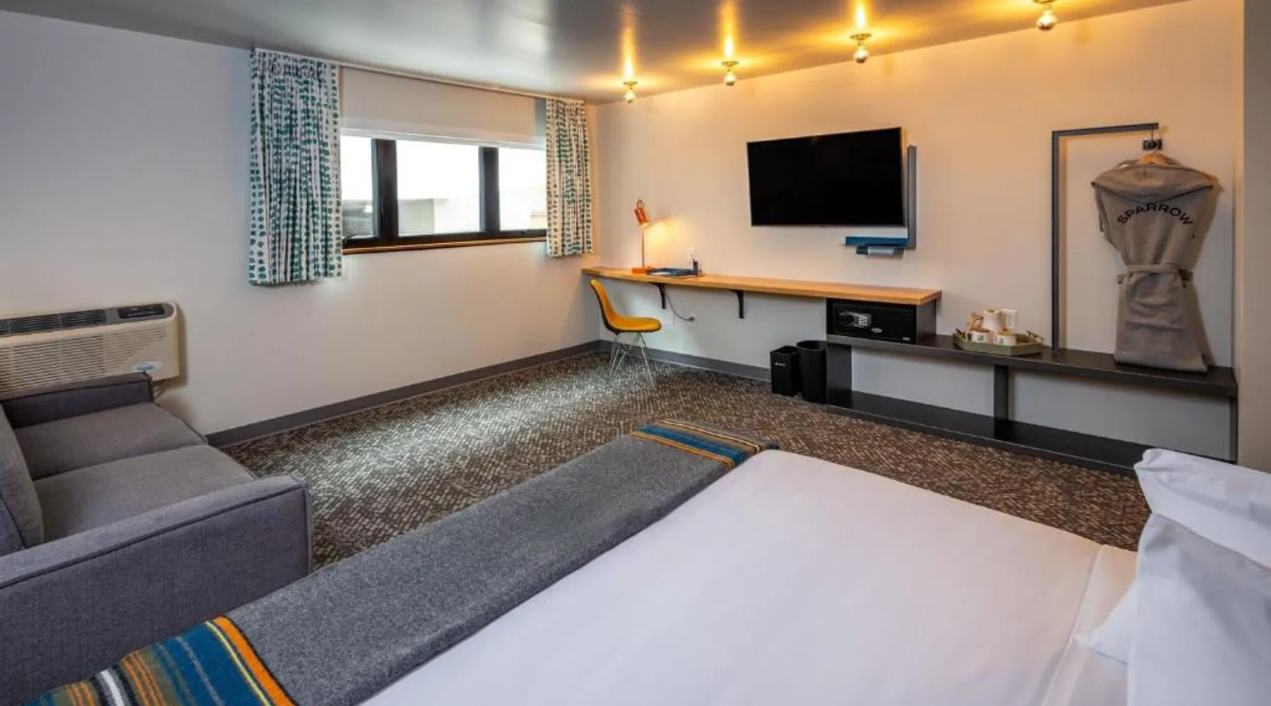 Comfortable Accommodations: The SPARROW in Boise offers family rooms with modern amenities including bathrobes, hairdryers, refrigerators, work desks, and free toiletries. Each room features a seating area and a TV, ensuring a pleasant stay. Dining Experience: The family-friendly restaurant serves local and international cuisines with vegetarian, gluten-free, and dairy-free options. Guests can enjoy lunch and dinner in a modern ambiance, complemented by free WiFi throughout the property. Facilities and Services: The hotel offers a fitness center, terrace, lounge, outdoor fireplace, and coffee shop. Additional amenities include a 24-hour front desk, electric vehicle charging station, and paid on-site private parking. Prime Location: Located 3.7 mi from Boise Airport, The SPARROW is a short walk from Boise Center and close to attractions such as Boise Art Museum and Zoo Boise. Guests appreciate the convenient location and nearby shops. The double room is furnished with a desk and a seating area. The unit offers 1 bed.