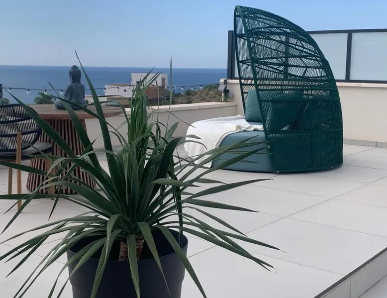 Elegant Accommodations: Rooftop with beautiful sea view in Isla Plana offers a one-bedroom apartment with a terrace and free WiFi. The property features a balcony, air-conditioning, and a fully equipped kitchen. Comfortable Living: Guests enjoy sea and garden views, a living room, and a dining table. The apartment includes a refrigerator, microwave, and free toiletries. Convenient Facilities: The apartment provides free on-site private parking, full-day security, and a terrace with a dining area. Additional amenities include a tea and coffee maker, coffee machine, and a hairdryer. Prime Location: Located 21 mi from Region de Murcia International Airport, the property is a 13-minute walk from El Cabezo del Mojón Beach and 27 mi from Mar Menor Golf Resort. Guests appreciate the scenic views and the terrace. This apartment consists of 1 living room, 1 separate bedroom and 1 bathroom with a shower and free toiletries. The well-equipped kitchen has a refrigerator, kitchenware and a microwave. This apartment is air-conditioned and features a tea and coffee maker, heating as well as a terrace with sea views. The unit offers 1 bed.