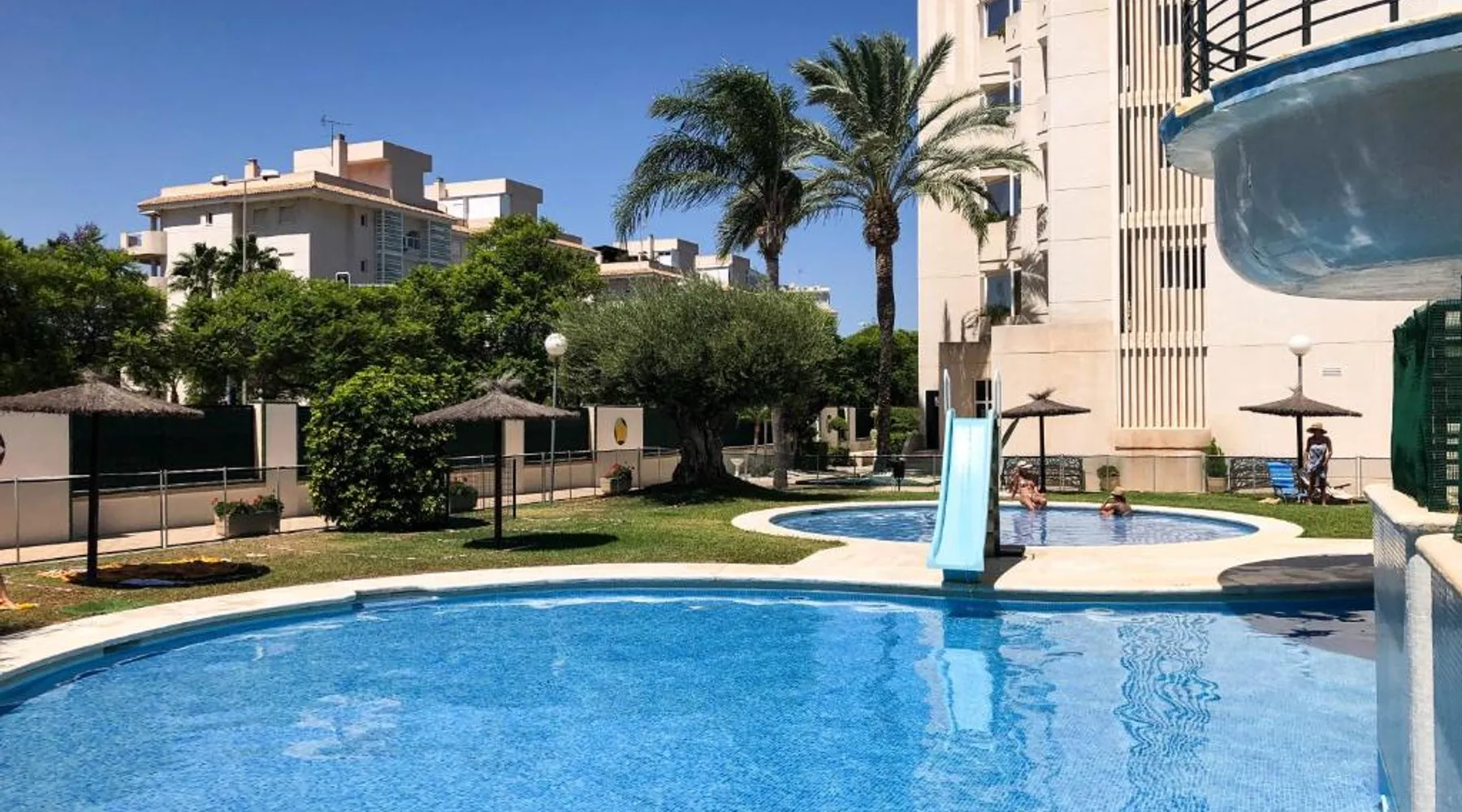 Spacious Accommodations: Espectacular Apartamento en San Juan Alicante in Alicante offers a spacious apartment with two bedrooms and two bathrooms. The living room features a sofa bed and a dining area, ensuring comfort for all guests. Exceptional Facilities: Guests can enjoy a private beach area, infinity swimming pool, fitness center, sun terrace, and a garden. Additional amenities include an open-air bath, tennis court, and free WiFi throughout the property. Convenient Location: Located 16 mi from Alicante–Elche Miguel Hernández Airport, the apartment is near Almadraba Beach (1.2 mi) and Alicante Golf (less than 0.6 mi). Nearby attractions include the Provincial Archaeology Museum (3.7 mi) and Explanada de España (4.3 mi). Highly Rated by Guests: Espectacular Apartamento en San Juan Alicante is highly rated by guests for its spaciousness and excellent facilities. Guests will have a special experience as this apartment features a private pool and a hot tub. This spacious apartment consists of 1 living room, 2 separate bedrooms and 2 bathrooms with a bath and free toiletries. The well-equipped kitchen features a stovetop, a refrigerator, a dishwasher and kitchenware. The air-conditioned apartment provides a flat-screen TV, a washing machine, a tea and coffee maker, a seating area as well as garden views. The unit offers 3 beds.
