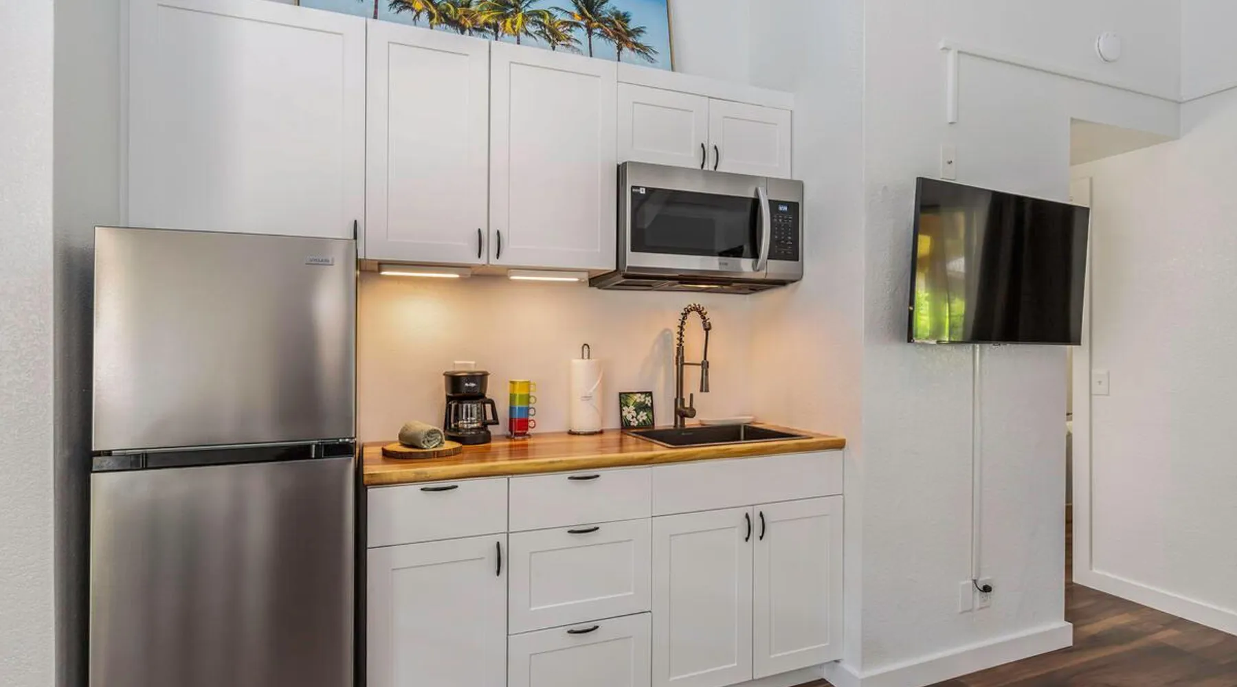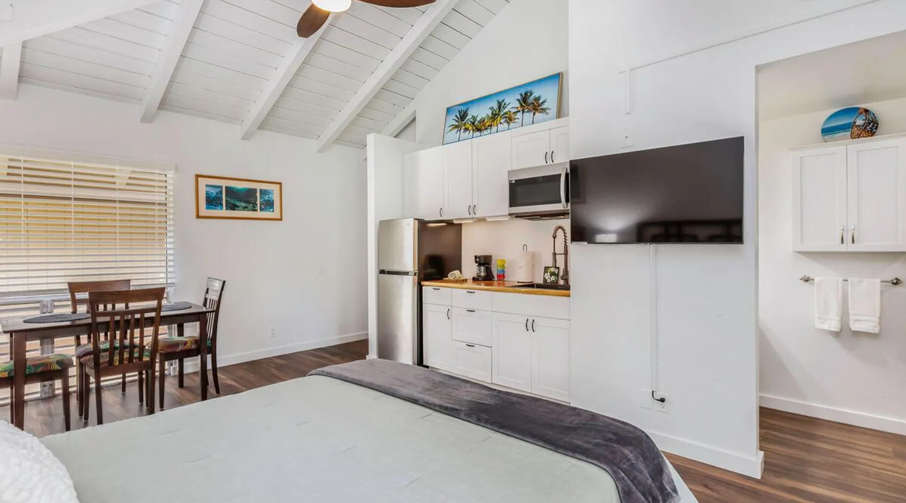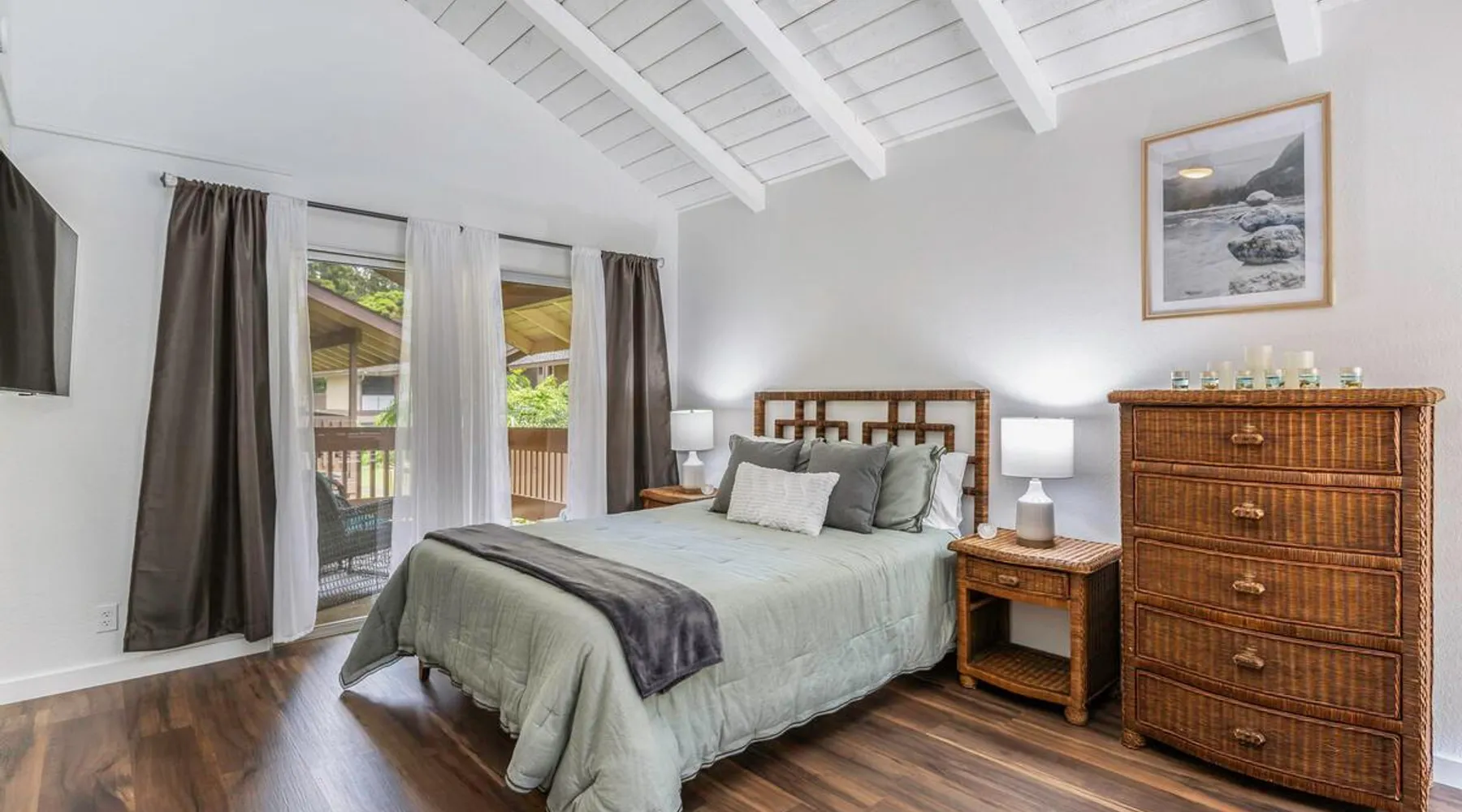 Hawaii Life Presents Sandpiper 216 B The space Located in the heart of Princeville on Kauai’s stunning North Shore, Sandpiper Village offers visitors a truly unforgettable experience! This excellent location provides magnificent panoramic views, beautiful beaches, and a variety of activities all within walking distance. With lush landscaping and meticulously manicured grounds, here you will find the tropical oasis you have been dreaming of. Guests also have access to a community pool and hot tub, barbecue, and located just across the street is the famous Makai Golf Course. The perfect combination of adventure and relaxation, we welcome you to the lovely Sandpiper Village! Sandpiper 216 B is a beautiful studio space offering guests everything they need to feel right at home! With tall ceilings and bright natural light & air conditioning, this cozy unit offers the perfect combination of comfort and function. Featuring a dining area and food prep area equipped with microwave, George Foreman grill, mini fridge and mini freezer. While there is no stove or oven, guests can enjoy BBQ grills just a few steps away near the pool area, perfect for grilling fresh island ingredients. Enjoy your morning coffee on your covered lanai, taking in the sites and sounds of the beautiful garden island! Accommodations: Queen Sized Bed Full Bathroom One assigned parking spot is included Features: Covered Lanai Dining Area Wifi Air Conditioning (portable unit) Nearby: Dining and Shopping Beaches Golf Course Grocery Store Post Office Bank **Please note there is no washer and dryer so please plan and pack accordingly. Hawaii Life Rentals is a locally owned, licensed real estate company with rentals on Kauai, Maui, Oahu, and Hawaii. We offer on-island personal assistance and Concierge services. Rates do not include taxes, cleaning and applicable fees. Hawaii Life/VRBO bookings: Guests must sign a rental contract within 48 hours of booking to confirm the reservation. TA-120-922-2656-01 Registration Details 540150210053, TA-120-922-2656-01