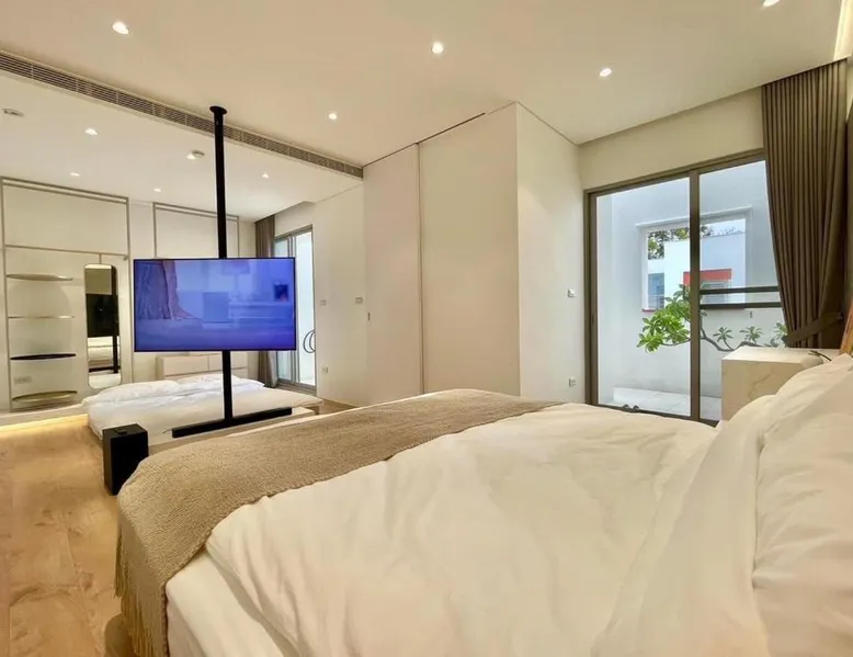 Elegant Accommodations: 里白民宿嘉義包棟 in Ho-mu offers a villa with three bedrooms and two bathrooms. The property features a sun terrace, garden, and free WiFi, ensuring a comfortable stay. Modern Amenities: Guests can enjoy air-conditioning, a terrace, kitchenette, balcony, and free on-site private parking. Additional facilities include an outdoor seating area, family rooms, and streaming services. Convenient Location: Located 8.7 mi from Chiayi Airport, the villa is a 15-minute walk from Wufeng Park. Nearby attractions include Chiayi Tower (5 mi) and Chiayi Park (5.6 mi). Hiking trails are available in the surroundings. This villa consists of 1 living room, 3 separate bedrooms and 2 bathrooms with a bath and free toiletries. Meals can be prepared in the well-fitted kitchen, which is equipped with a stovetop, a refrigerator, kitchenware and a microwave. The air-conditioned villa provides a flat-screen TV with streaming services, a washing machine, a mini-bar, a tea and coffee maker as well as garden views. The unit offers 4 beds and 1 futon.