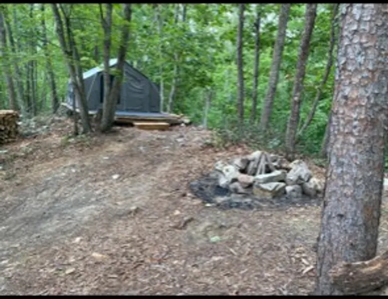 Get away from it all when you stay under the stars. We've done all the work for you in setting up a great tent with enough room for your family and friends. This tent will easily accommodate 4-8 people. 2 cots and 2 camp chairs are supplied, guests will need to bring extra sleeping gear for more then 2 people. Solid platform to set additional chairs outside. Come unplug and relax up in the tree canopy and breath in some fresh mountain air! 4 wheel drive accessible, if not, we'll get you there! The space Tent camping, fire pit, port-o-john Guest access Access to entire mountain property
