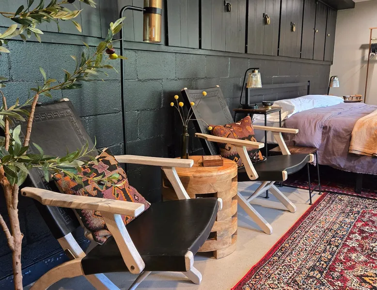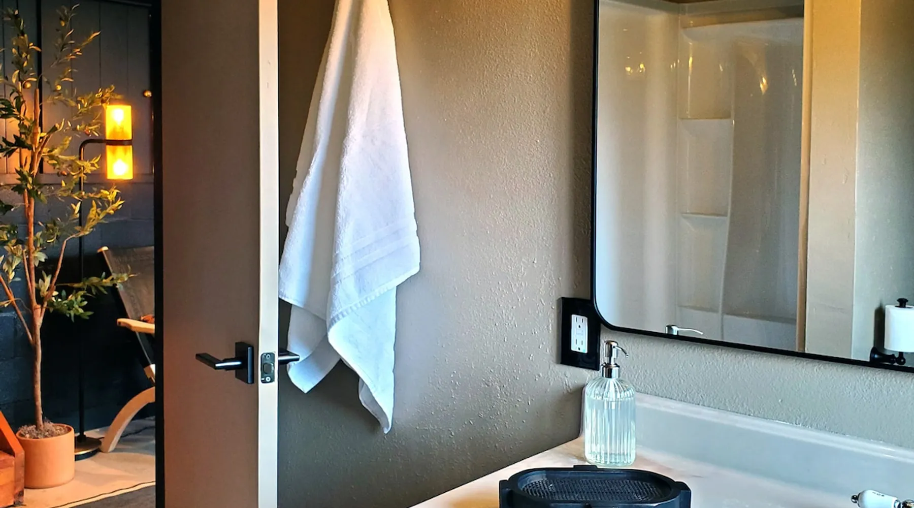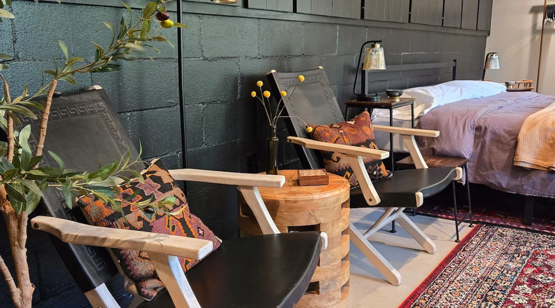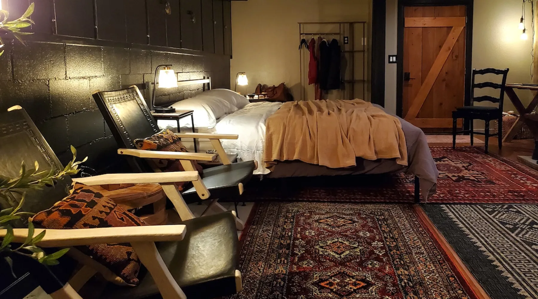Nestled just under the Guest Favorite, the Dark Sky Den cabin. It's a vibe. Sitting among a forest of trees, is a cozy little studio, intimate and dimly lit for ultimate style & relaxation. * 5 Min. from Main St. on Paved Roads * Laid Back w/ Ultimate Ambiance Interior Design * King Bed * 500 Square Foot Studio * Forest Views + Volcan Mountain * Private Covered Deck * Fully Equipped Kitchen * Full Bath w/ Shower * Island / Dining Seating for 2 * Picture Windows Views of Trees The space Send me a message for customized recommendations that fit your travel style and local interests. : ) Located in the International Dark Sky Community of Julian, just 5 min. from Main St., yet feels miles away. Slow down, unwind & settle into the laid-back life. The Downstairs Den is the dark and moody alternative to its sister space just above, the 5-Star rated, Guest Favorite Dark Sky Den, and featured in LOCALE Magazine. Relax your senses in this contemporary, nomadic-style studio. The Interior Design is peppered with thoughtfully appointed details, custom and vintage accents, and natural materials and textures, along with dim, low-lit lighting that creates an ambience that feels exceptionally cozy. Nestled among the trees, the studio sits on a peaceful half-acre filled with black oaks and a full view of Volcan Mountain. With large, picture windows and a private deck, you'll have a ground's eye view of trees, wandering deer, wild turkey and other birds and wildlife. Experience the joys of Four Season Living! A Beautiful Blooming Spring, Warm Summer Months, Cozy and Colorful Fall and Snowy Winters. STUDIO SPACE: - 1962 Custom Cabin - 450 Square Feet - 1/2 Acre filled with Oak & Pine Trees, Woodpeckers, and occasionally Deer and Wild Turkey - Expansive View of Volcan Mountain from all Windows - King Bed - Sleeps 2 max - Fully Equipped Kitchen - Full Bath with Shower & Multi-Spray Showerhead - Large Picture Windows Facing the Hillside filled with Trees - Wifi - Interior Design Style is Laid-Back, Contemporary Nomad with Natural & Collected Elements. Comfortable, cozy, moody and romantic. - Healthy Home Philosophy with attention to detail in Lighting, Cleaning Products, Furnishings and Simple Living Lifestyle. - Dark Sky Lighting to support Circadian Rhythm and dimmable, warm bulbs to relax your senses (optional Overhead Lights, as needed) - Fireplace is for DECORATION ONLY. Thank you for respecting our fire sensitive community. - Wall Mounted Heater - Extra Linens and Blankets - Desk / Table for those creative working nomads - Private Deck with a Set of Rocking Chairs facing an incredible and peaceful view - On Site Parking (1 car only) on Gravel Driveway - Safe and Walkable Neighborhood - Paved Roads lead to Cabin - 5 Minutes to Historic Main St. - 5 Minutes to Wineries & Breweries, Hiking Trails - 15 Minutes to Wynola & Lake Cuyamaca (Guests must be 25 years or older to book) BEDROOM - King Bed with Nest Mattress - Wardrobe Rack + Hangers - Vintage Gold Heart Locks and Cabinetry Knob Accents - Cabinet Storage for Luggage - (2) Luggage Racks SEATING AREA - Custom Design Seating for 2 KITCHEN - Fully Stocked for Cooking with Pots, Pans & Utensils - Olive Oil, Salt & Pepper Provided - Glassware, Dinnerware & Utensils - Full Refrigerator + Freezer - Electric Stovetop - Oven - Toaster Oven - Blender -Tea Kettle - French Press - Single Serve Coffee Maker (Filter Free) - Coffee & Sugar Provided DINING - Island Seating for 2 - Rotate Table as Island or Facing Window for Expansive View of Hillside Trees and Volcan Mountain BATHROOM - Single Vanity - Shower Stall with Multi-Spray Showerhead - Organic Shampoo, Conditioner & Body Wash Included - Bath Linens - Hairdryer - Views of Hillside filled with Trees & Mountain View DESK - Desk / Table with Chair facing expansive Hillside View - USB Outlets THE DARK SKY Julian is one of two accredited Dark Sky Communities in California, and one in thirty overall. The intention of being a Dark Sky Community is to protect the natural night sky by reducing light pollution. This means that outdoor lighting is carefully designed and controlled to minimize glare and unnecessary brightness. By doing this, we can fully appreciate the awe-inspiring wonders of the night sky, including the stars, constellations, and even the Milky Way! Other than incredible stargazing, having a natural dark sky benefits astronomical research, wildlife preservation and our circadian rhythm. If you're interested, please check out Julian Dark Sky Network. LIGHTING The Den incorporates dark sky lighting inside the cabin too, which creates a cozy and inviting atmosphere while supporting your circadian rhythm. The soft illumination creates a sense of intimacy and relaxation, while also allowing your eyes to adjust to the natural darkness outside. It's the perfect setting for unwinding after a long day or spending quality time with loved ones. With the use of dimmers, warm light bulbs and minimal overhead lighting, you control how bright or dim you want the space to be. One of the best benefits of dark sky lighting at home is how it affects our circadian rhythm, which is our internal body clock that helps regulate our sleep-wake cycle. Now, here's the thing: exposure to bright or blue-rich light in the evening can mess with our circadian rhythm and make it harder to fall asleep. Bright lights, especially at night, triggers our brain into thinking we should be awake as if it's the middle of the day. Whereas dimly lit, downward facing amber or red lights (similar to a campfire), promote melatonin production which tells our body that it's time to relax and prepare for sleep. Wake up in the morning naturally with the morning sun and feel refreshed! I would encourage you to bring the idea of Dark Sky Lighting back with you into your own homes and see how you feel. THINGS TO NOTE: - FIREPLACE FOR DECORATION ONLY, and is non-operational. There are (2) wall mounted heaters that pump out heat on those chilly nights, and a