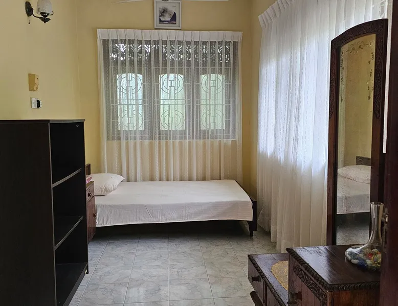 Spacious two-story home with private entrance, offering four bedrooms, two bathrooms, large living and dining areas, a fully equipped kitchen, balconies, and washing machines on both floors. Surrounded by a green garden filled with birds and private parking for 2–3 vehicles, it’s the perfect retreat for families or groups The space Welcome to our spacious two-story home, designed for comfort and relaxation. The ground floor features a large living area with a sofa, chairs, and a table for working or relaxing, a spacious dining area, a kitchen with all the basics for preparing meals, and a bathroom with hot water shower, WC, sink, and a washing machine. Here you’ll also find a bedroom with two single beds and air conditioning, as well as a second bedroom with a single bed and ceiling fan. Upstairs, the first floor offers a second large living area that doubles as a TV room and workspace, another bathroom with hot water shower, WC, sink, and a washing machine, along with a comfortable bedroom with a double bed and air conditioning. The first floor includes a balcony with chairs for enjoying the fresh breeze and views of the greenery. Outside, the property provides parking for 2–3 vehicles and a peaceful garden filled with birdsong, creating a relaxing and welcoming atmosphere throughout your stay. Guest access Guests have easy access to a variety of activities and amenities: Surfing: Just a 10-minute walk to Weligama Surfing Beach. Whale & Dolphin Watching: 7 km to Mirissa Beach. Sightseeing: Explore Galle Dutch Fort and Unawatuna Beach within a 40-minute drive. Other Activities: Spa, diving, and fishing nearby. Convenience: Restaurants, banks, ATMs, and supermarkets are all within a 5-minute walk. During your stay The owners live on the property, ensuring a welcoming atmosphere and offering assistance throughout your stay. Other things to note No guides or beach attendants are permitted on the premises. Electricity and water bills are not included in the booking fee and will be calculated based on your usage at the end of the month