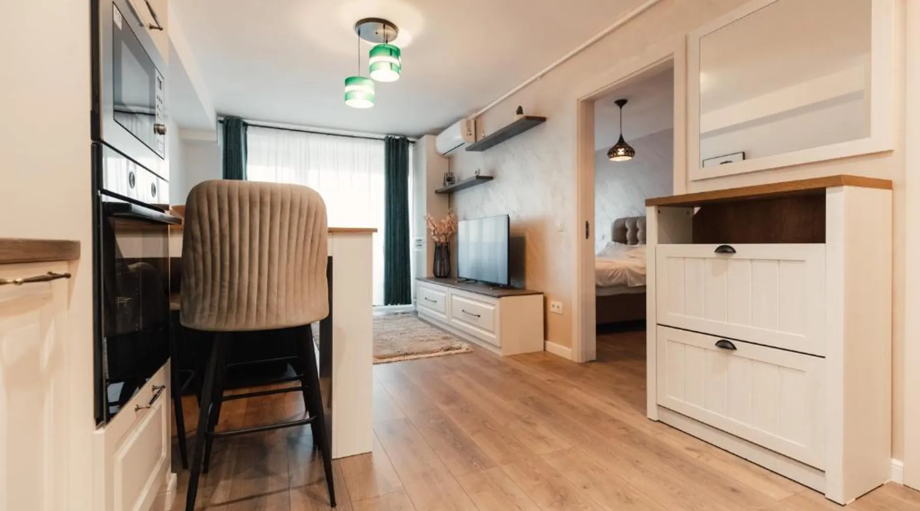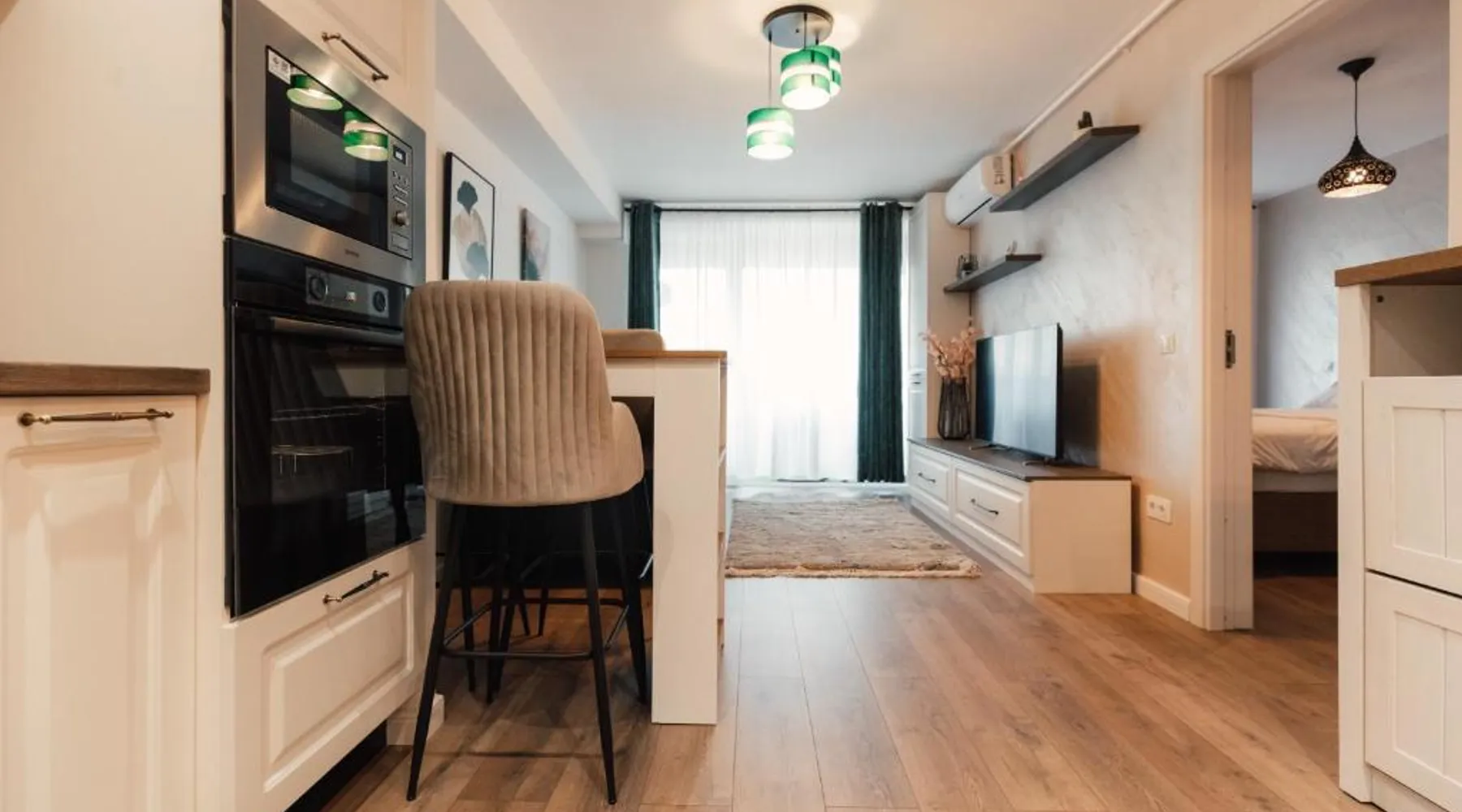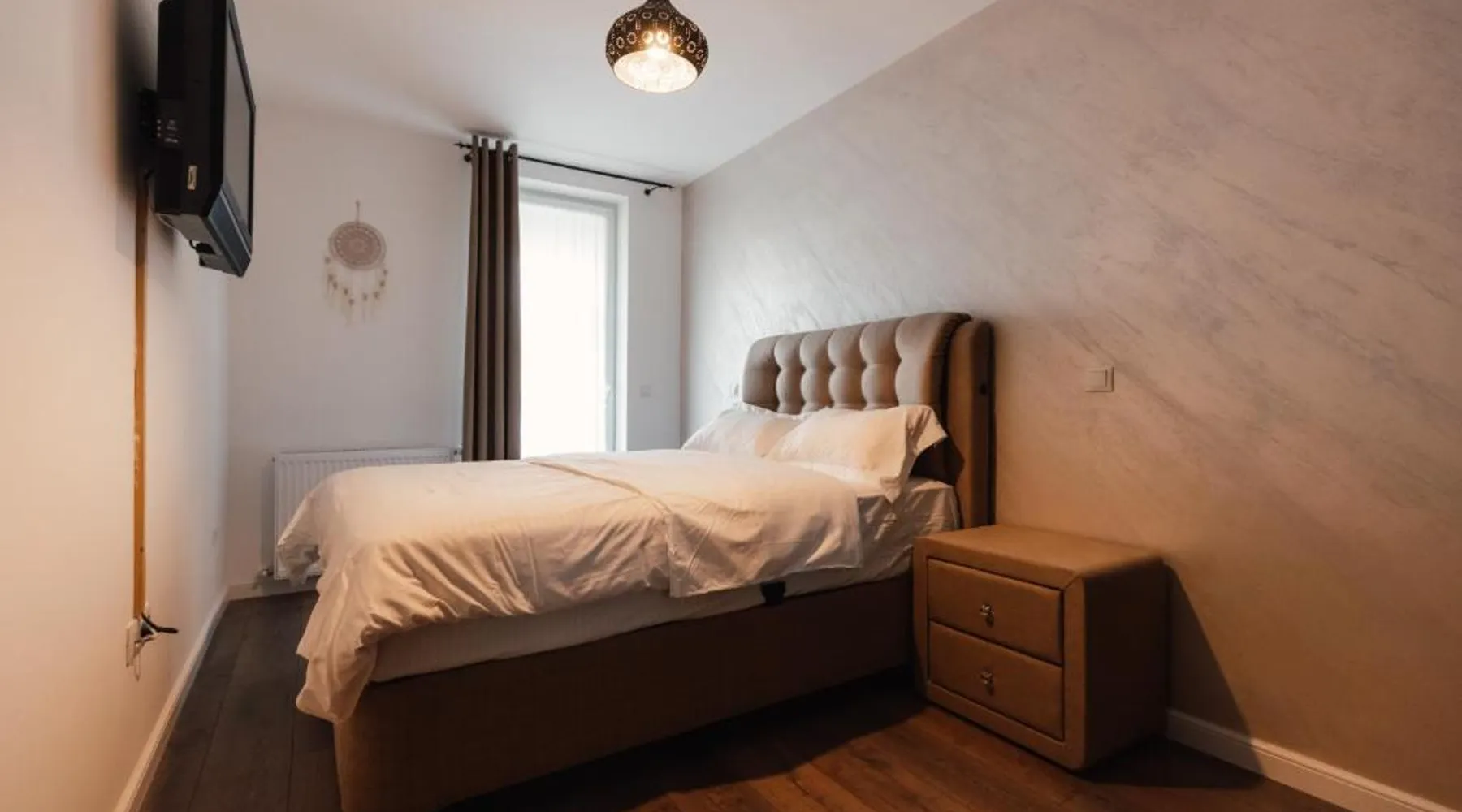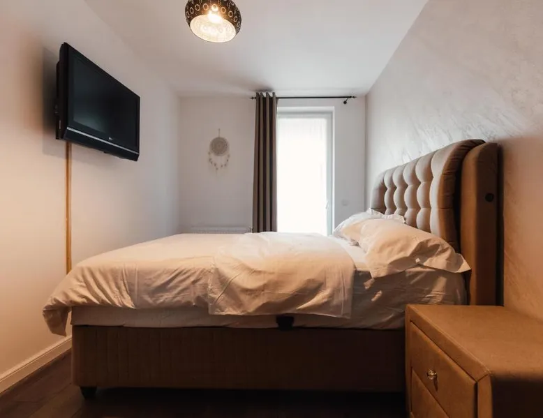 Comfortable Living Space: VIVO Residence by Short-Stay in Baia Mare offers a one-bedroom apartment with a living room and a bathroom. The property includes a work desk, refrigerator, microwave, and oven. Convenient Amenities: Guests benefit from free on-site private parking, a hairdryer, and a television. The reception staff speak English and Romanian, ensuring smooth communication. Local Attractions: Located 3.7 mi from Maramureș International Airport, the apartment is near The Wooden Church of Şurdeşti (14 mi), The Wooden Church of Plopiş (16 mi), and other churches within 30 mi. Highly Rated by Guests: VIVO Residence by Short-Stay receives high ratings from guests for its comfortable accommodations and excellent service. The apartment features heating. The unit has 2 beds.