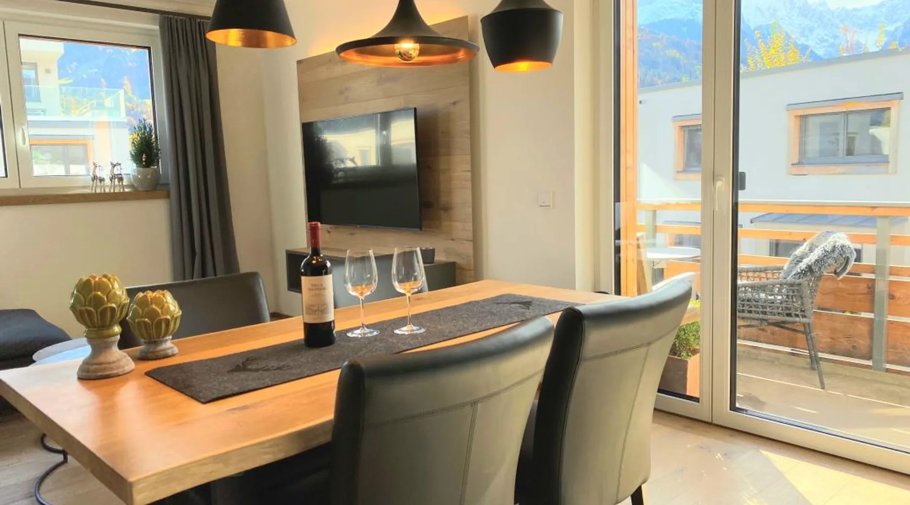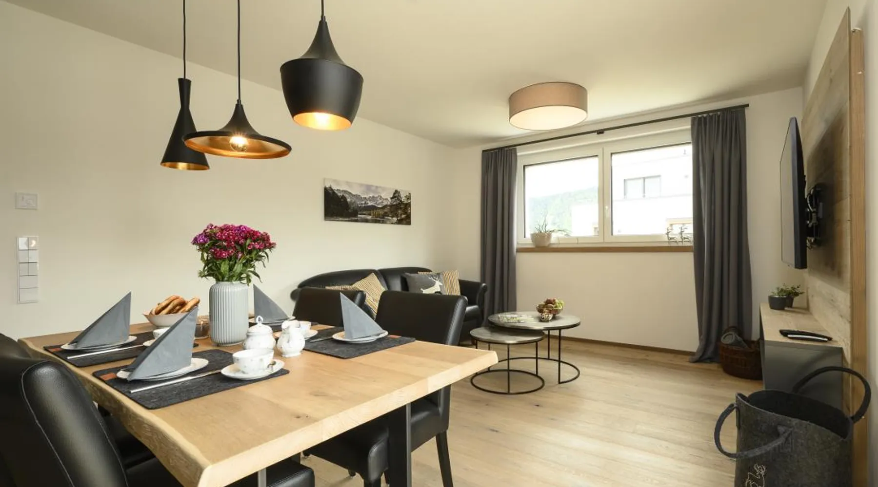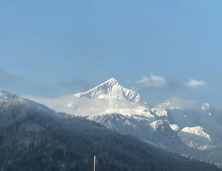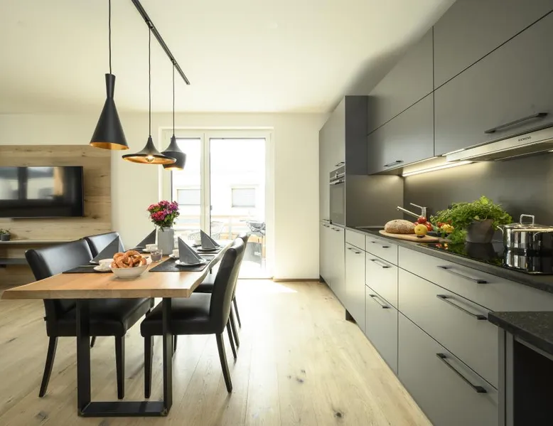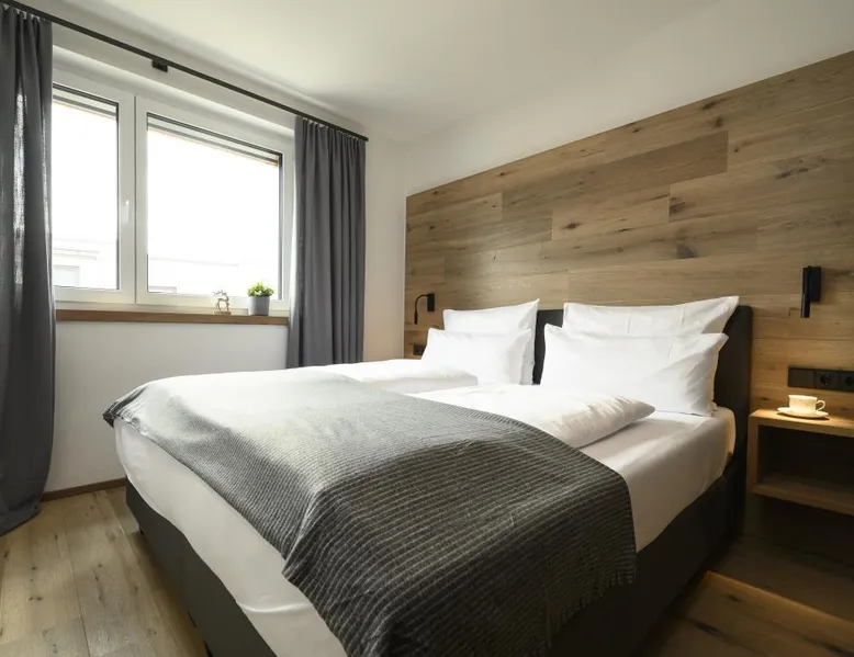 The "Berglounge" holiday apartment on the 3rd floor is centrally located just a few meters walk from Garmisch-Partenkirchen train station, the Zugspitze train station and the bus station in a traffic-calmed residential complex and is therefore a real recommendation for all guests who do not travel by car. The approximately 66 m2 apartment offers you all the amenities you need for a successful vacation. The heart of your vacation apartment, the living and dining area with balcony, is bright The space and friendly. Here you will find a cozy sofa and a Smart tv as well as a dining area with table and chairs. The open, modern kitchen is equipped with high-quality appliances such as an oven, induction hob, dishwasher, coffee filter machine, toaster and kettle. The first bedroom has a large, comfortable double bed with open foot end, closet, smart tv and desk. The second bedroom has a large, comfortable double bed (can be separated into two single beds) with an open foot end and closet. The bathroom is equipped with a large walk-in shower with seat, wc, washbasin, washing machine and tumble dryer. The balcony with awning and Weber electric barbecue is a wonderful place to enjoy and relax. In the underground garage (access to the apartment by elevator) you will not only find a parking space for your car belonging to the apartment, but also a storage room for bicycles and skis. a baby crib and high chair are also available. There is also a playground in the apartment complex. Thanks to the apartment's absolutely central location, you can reach the Garmisch district with various shopping facilities, pedestrian zone, tourist information, spa gardens, casino, theater, etc. on foot in just a few minutes. The center of Partenkirchen with the historic Ludwigstraße is also only a few minutes' walk away. The apartment is also the perfect starting point for a variety of activities at any time of year: long walks, hikes and mountain bike tours in the warm season and unlimited skiing and snowboarding fun in winter. From here you can easily reach the cross-country ski trails and the "Garmisch Classic" and "Zugspitze" ski areas by bus and train, offering a variety of slopes and unique impressions. Welcome - we look forward to your visit!