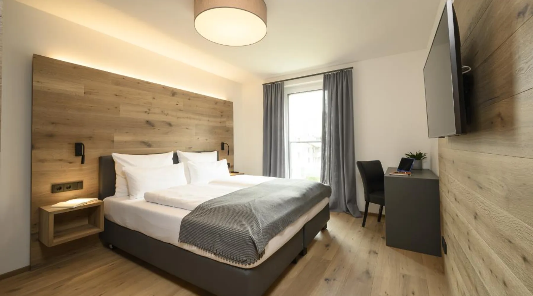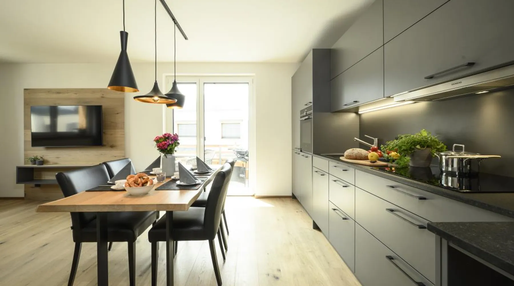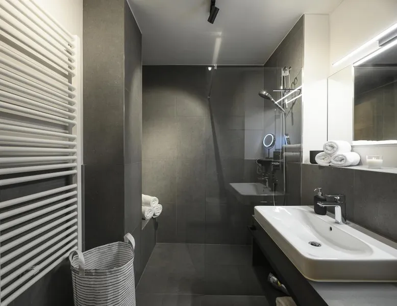 The "Berglounge" holiday apartment on the 3rd floor is centrally located just a few meters walk from Garmisch-Partenkirchen train station, the Zugspitze train station and the bus station in a traffic-calmed residential complex and is therefore a real recommendation for all guests who do not travel by car. The approximately 66 m2 apartment offers you all the amenities you need for a successful vacation. The heart of your vacation apartment, the living and dining area with balcony, is bright The space and friendly. Here you will find a cozy sofa and a Smart tv as well as a dining area with table and chairs. The open, modern kitchen is equipped with high-quality appliances such as an oven, induction hob, dishwasher, coffee filter machine, toaster and kettle. The first bedroom has a large, comfortable double bed with open foot end, closet, smart tv and desk. The second bedroom has a large, comfortable double bed (can be separated into two single beds) with an open foot end and closet. The bathroom is equipped with a large walk-in shower with seat, wc, washbasin, washing machine and tumble dryer. The balcony with awning and Weber electric barbecue is a wonderful place to enjoy and relax. In the underground garage (access to the apartment by elevator) you will not only find a parking space for your car belonging to the apartment, but also a storage room for bicycles and skis. a baby crib and high chair are also available. There is also a playground in the apartment complex. Thanks to the apartment's absolutely central location, you can reach the Garmisch district with various shopping facilities, pedestrian zone, tourist information, spa gardens, casino, theater, etc. on foot in just a few minutes. The center of Partenkirchen with the historic Ludwigstraße is also only a few minutes' walk away. The apartment is also the perfect starting point for a variety of activities at any time of year: long walks, hikes and mountain bike tours in the warm season and unlimited skiing and snowboarding fun in winter. From here you can easily reach the cross-country ski trails and the "Garmisch Classic" and "Zugspitze" ski areas by bus and train, offering a variety of slopes and unique impressions. Welcome - we look forward to your visit!